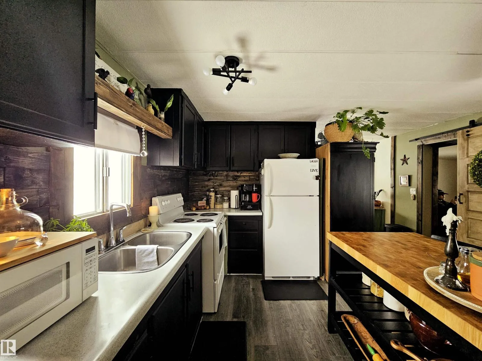 Thereâs a quiet sense of comfort here, where warm tones, soft light, and simple, thoughtful finishes come together to create a space that feels calm, grounded, and lived in. This 2-bedroom, 1-bathroom home has been carefully maintained over the years, with a newer peaked roof, vinyl siding, laminate flooring, furnace, hot water tank, and modern kitchen appliances, offering peace of mind without sacrificing character. Step through the covered entry and into a layout that just makes sense. Bright, functional, and easy to settle into. Mornings begin slowly here, coffee in hand, light filtering through, while evenings wind down in a space that feels private and still. Out back, the deck extends your living outdoors, with room to relax, host, or simply take in the quiet, while the 14â x 20â shed and additional 8â x 8â shed keep everything tucked neatly in its place. Set in the welcoming community of Breton, close to the golf course, schools & amenities. (id:27476)