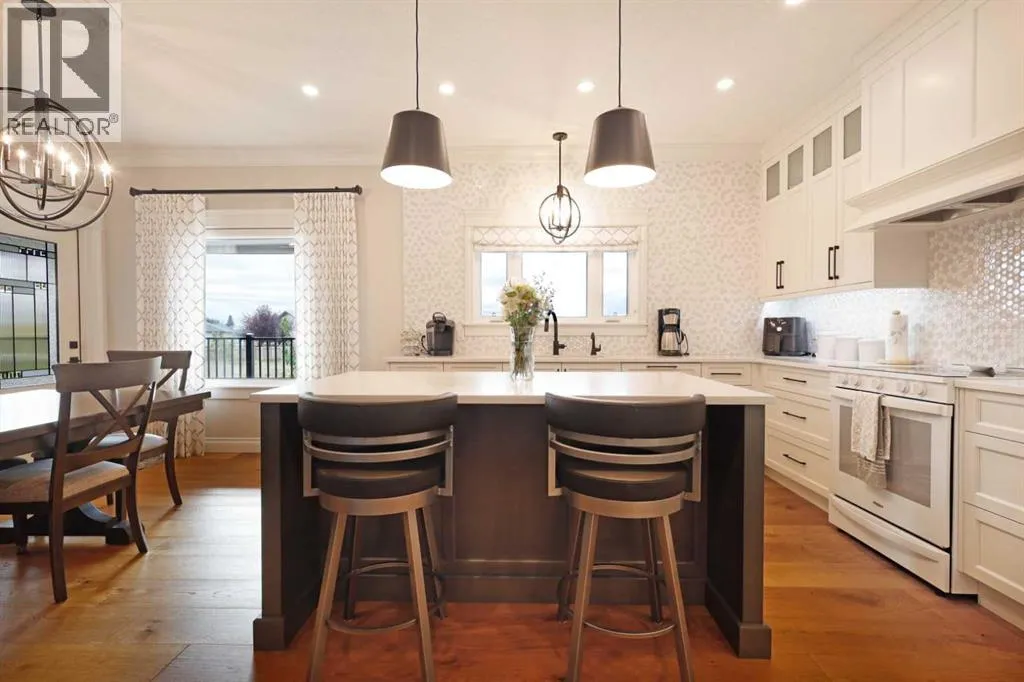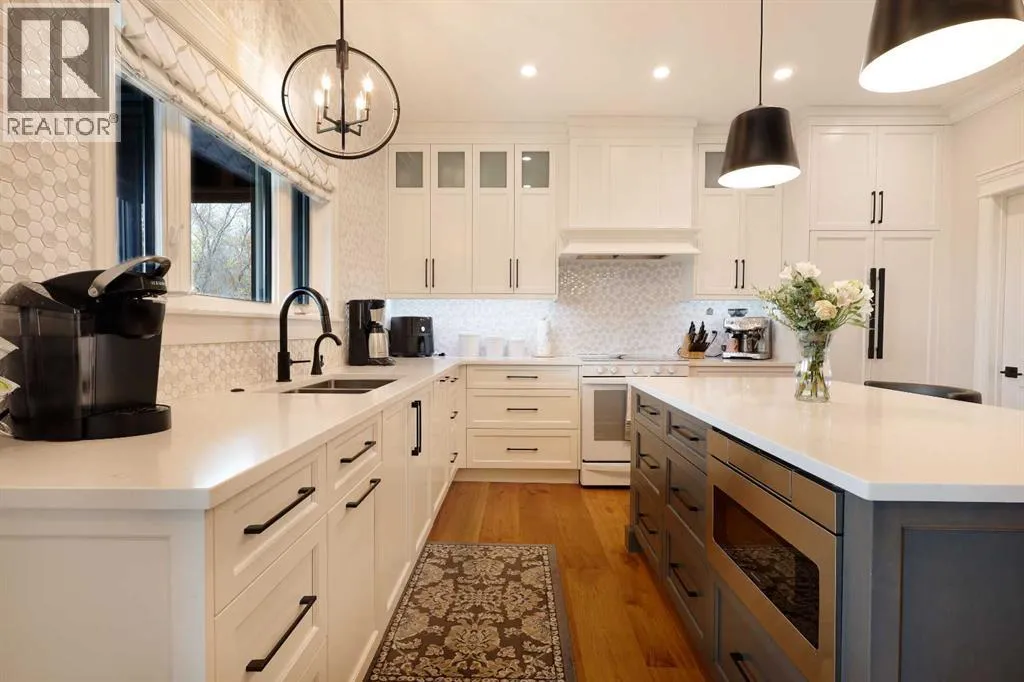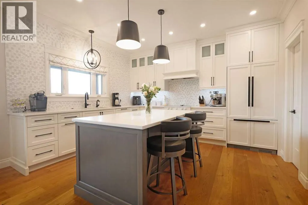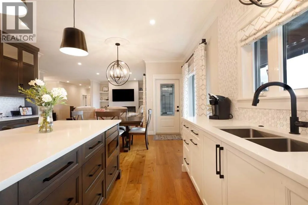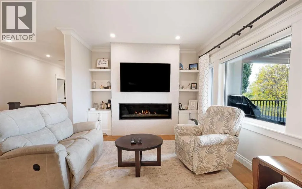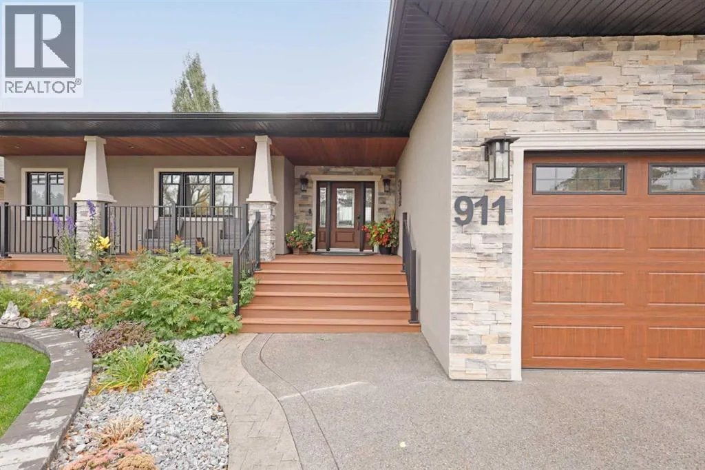 Welcome to 911-2 Avenue Wâ¦a truly special walkout bungalow where every detail has been carefully curated for comfort, beauty and everyday enjoyment. From the moment you arrive, the homeâs undeniable curb appeal draws you in with its striking stucco and stone exterior, charming shake accents and a meticulously landscaped yard to enjoy from a cozy covered front porch, perfect for morning coffee.Step inside and be greeted by a spacious, light filled entry that sets the tone for the open concept design. Gleaming engineered hardwood floors flow into a bright and airy living room, where custom built-ins and a welcoming fireplace create a perfect space to relax. South facing picture windows bathe the space in natural light, making it feel warm and inviting year round.The heart of the home is the stunning chef inspired kitchen thatâs crafted with both style and function in mind. Soft white high profile cabinets are beautifully contrasted with a rich wood toned island and built-in hutch. Quartz countertops, a tasteful tiled backsplash and hand picked lighting and hardware elevate the space. A generous pantry and ample cabinetry ensure youâll never be short on storage, while the large island invites family and friends to gather around.Just off the kitchen, youâll find a practical main floor laundry room with access to the heated garage and a dedicated home office tucked near the front entry, perfect for working from home or managing busy family life.The primary suite is a peaceful retreat, spacious enough for a king size bed and all your favourite furnishings. A walk-in closet offers built-in organization and the spa like ensuite features dual sinks, quartz countertops, a soaker tub, separate shower and cozy in-floor heat. An additional main floor bedroom is ideal for guests or family, paired with a stylish bathroom with a relaxing soaker tub and separate shower.Downstairs, the walkout basement offers even more living space, with a large open family and recreation a rea filled with natural light. A second fireplace adds a cozy touch, while the layout allows plenty of room for lounging, entertaining or exercise. Two generously sized bedrooms, another full bathroom and a large storage room round out the lower level.Step outside into your private backyard oasis. From the expansive deck with a premium louvered roof, to the beautifully designed landscaping with underground sprinklers, raised garden beds and detailed concrete work, all enclosed by low maintenance vinyl fencing, this yard is built for outdoor living and entertaining.With thoughtful renovations from top to bottom, including updated furnace and air conditioning, this home is the definition of move-in ready. A heated double garage adds even more value and convenience offering parking for 2 vehicles along with additional storage and work space.If youâve been dreaming of a one of a kind home that balances elegance, comfort, and functionality, this is the one. Contact your real estate agent today. (id:27476)
