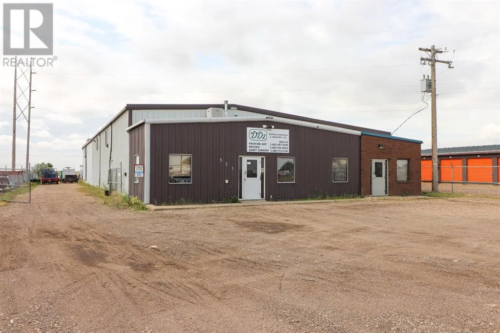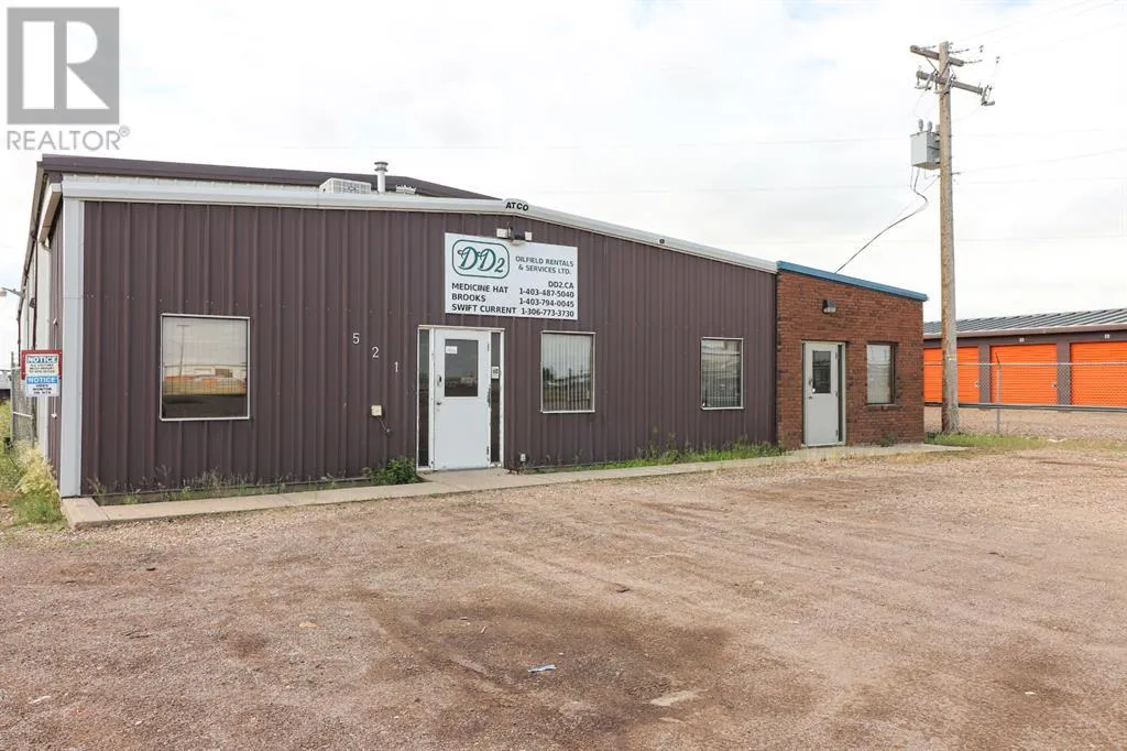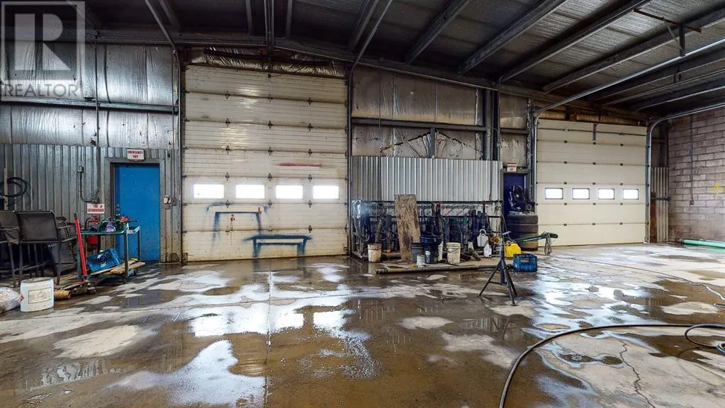 For sale good, solid industrial building measuring 8772 sq. ft., with front office. Office area has 3 offices, and reception area, 2 bathrooms, and coffee room. There is a mezzanine storage area above the office area. Shop area is 126x61', with two overhead doors at the back of the building. Large back yard for storage, and trucks. Yard is chain link fenced. excellent exposure on main thoroughfare. (id:27476)