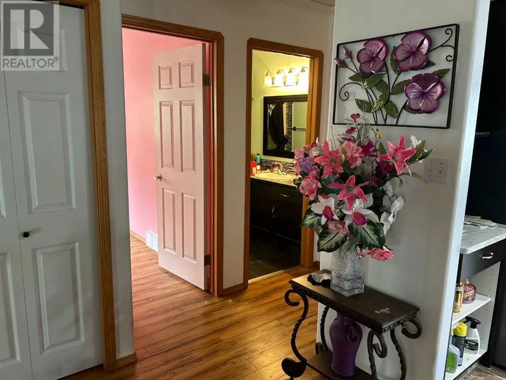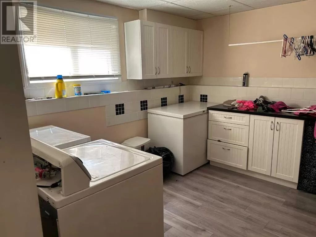 WELL MAINTAINED HOME 1111 LARGE CORNER LOT. Great Tile Floor Entrance leading to great living room and impressive open Kitchen/Dining area, Peninsula Cabinets with Quartz counter top Mosaic Glass Tile backsplash. Pantry. Large Maintenance free Deck and Railing with below deck storage ,Large Master Bedroom with room for King Sized Bed with sliding Mirror Doors .Large Family room in Basement with wet bar area and another large bedroom ,also 3 piece bathroom and Laundry room big enough for another fridge or deep freeze .NOTE THE 10X13 Laundry Room Area would be Quite Easy to use as a a4th Bedroom !!! There is infloor heat in Basement and double attached garage .Check Out the Fancy Metal Roof ,good for Many Many years. Seller will supply Title Insurance in LIEU of RPR at closing . (id:27476)