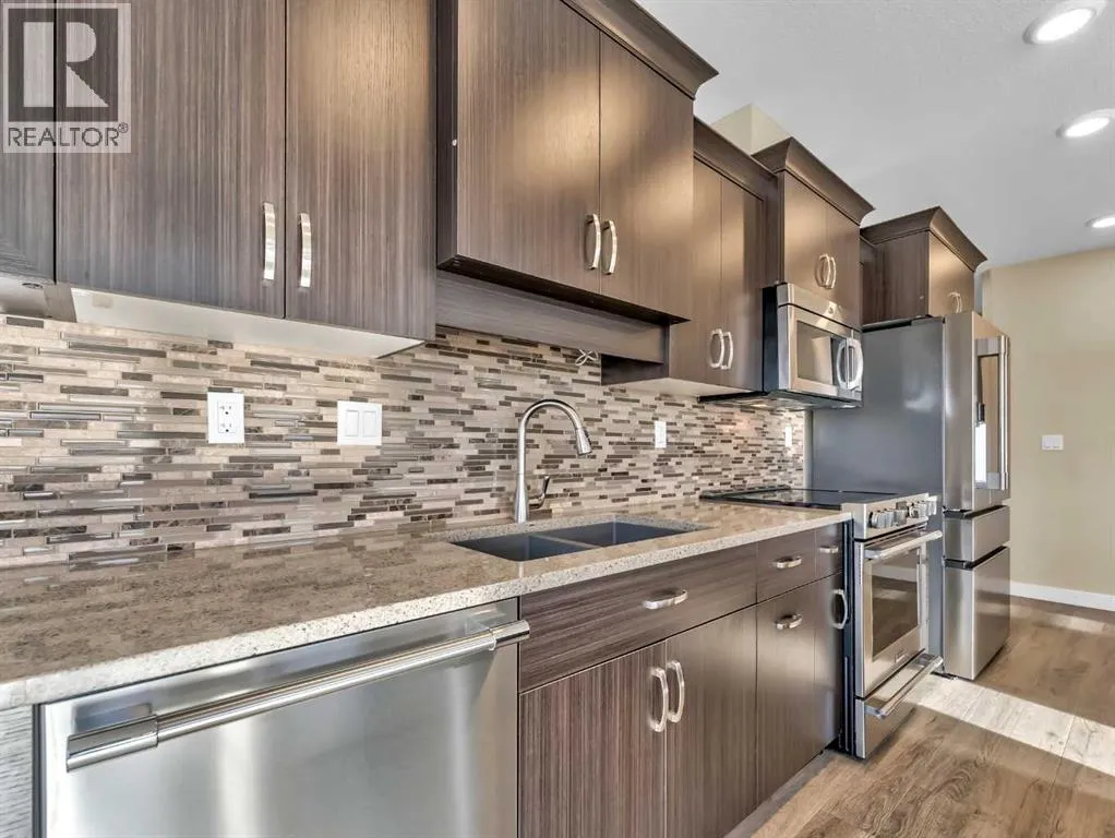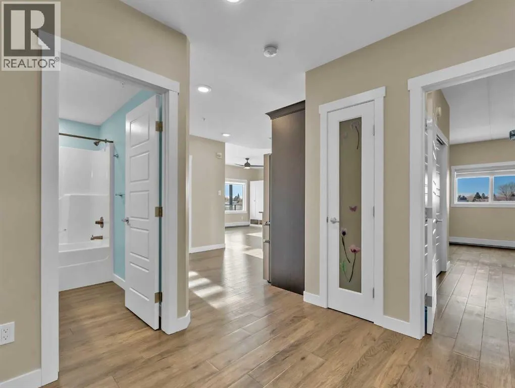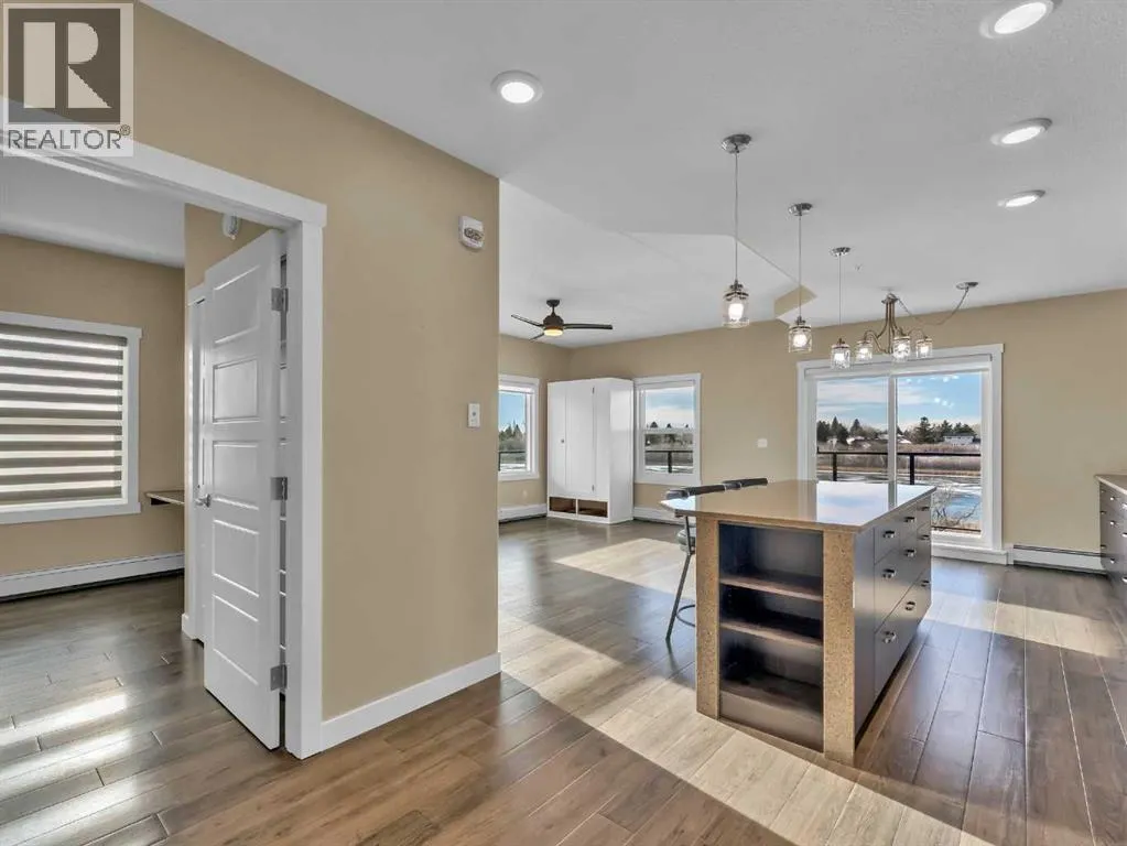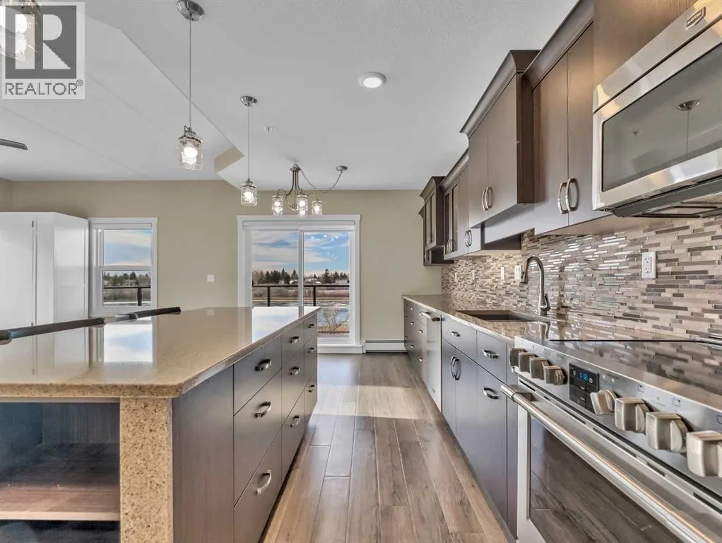 Enjoy refined condo living in this 3rd-floor corner unit located in a quiet adult-oriented building, offering incredible lake views and abundant natural light from multiple exposures. This well-designed home features a spacious Primary Suite with ensuite, a 2nd bedroom with a built in Murphy Bed and an additional full bathroom, ideal for comfort and privacy. The beautiful kitchen is a standout, showcasing granite countertops, custom upgraded cabinetry, and ample workspace, perfect for both everyday living and entertaining. The thoughtful layout flows seamlessly into the living and dining areas, where large windows and glass doors frame the stunning lake scenery. Step outside to the wraparound deck, where youâll find two exterior storage units, providing ultimate convenience and extra space for seasonal, outdoor or workshop items. Additional highlights include in-suite laundry, one secure indoor parking stall, and an additional outdoor parking spot, a valuable combination! Building amenities enhance the lifestyle, featuring an inviting entry-level common area ideal for visits and enjoying a coffee, along with an elevator for easy access to and from the units. All of this is complimented by the peaceful atmosphere of adult living, making this bright corner unit an exceptional opportunity in a sought-after condo community. (id:27476)