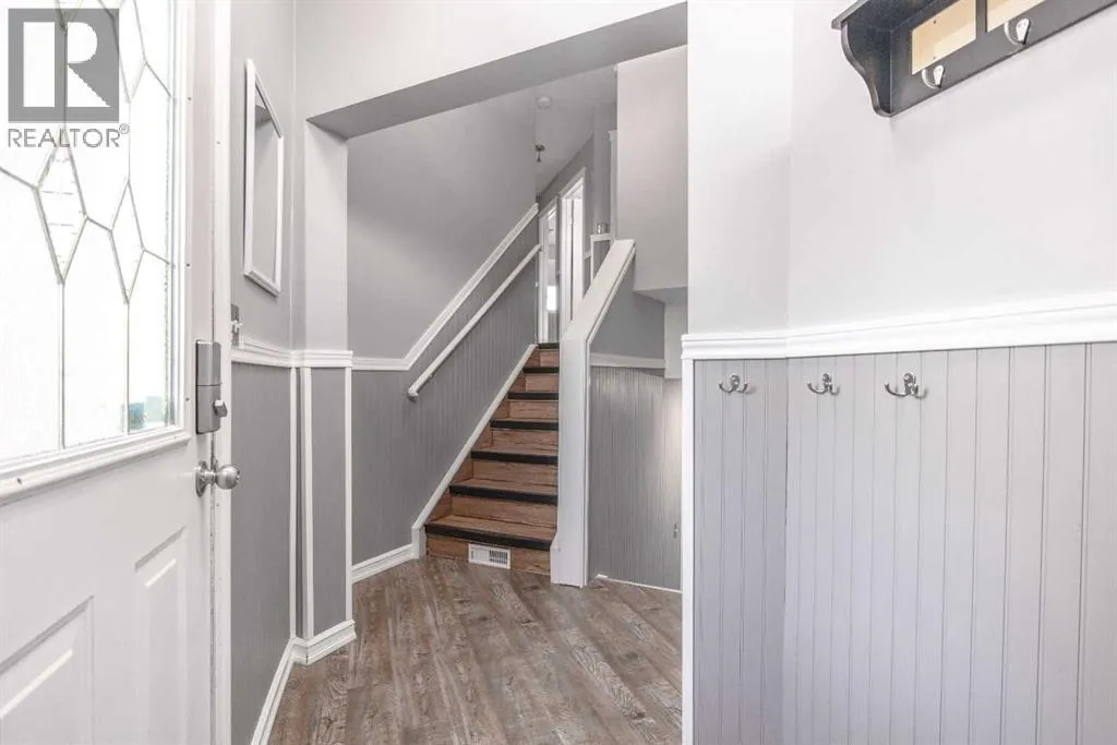 This house hosts. It welcomes you in, takes your coat, and gives you space to settle before anything else happens. The entry is bright and open, the kind that handles arrivals easily and keeps things moving without pressure. It seats people comfortably in the large, light-filled living room upstairs, letting conversations start and warm up naturally. No one is rushed. No one feels crowded. The house gives everyone room to arrive before it shifts the night forward. It keeps the kitchen involved at all times. Dark modern cabinetry sets the mood, with newer, well-chosen appliances ready for everyday use. The island fills on its own, drawing people in and holding them there. Bar stools are claimed quickly, and conversation builds. The dining space stays close so no one ever feels removed from whatâs happening. It splits the evening when it needs to. A big rec room takes on game days, movie nights, and louder energy. Just off to the side, the bar-shaped bonus room lowers the lights and changes the tone. This is where voices drop, stories stretch, and time stops being tracked. The house runs both scenes at once and never loses control of the night. When people need a break, it gives them one. The bedrooms are calm and bright, offering a quiet place to retreat when the noise fades. It moves the gathering outside without fuss. The deck handles overflow. The concrete pad waits for future plans. Brand new vinyl fencing and underground sprinklers do their job quietly, the way a good host always does. Throughout it all, the house manages the energy. Grey and brown vinyl plank flooring, soft grey walls, and wainscoting details keep things grounded while laughter and noise come and go. When the night ends, it resets without complaint. In the end, everything about this house points to the same thing. It knows how to handle people, and it does it well. (id:27476)