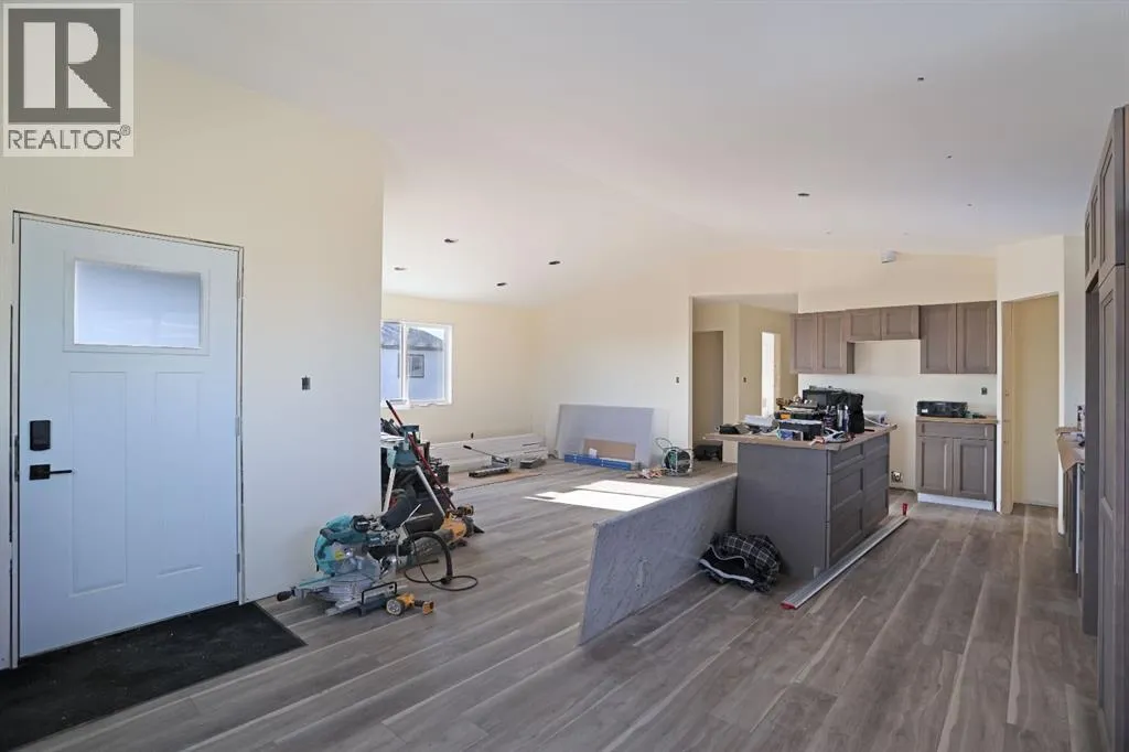 Own a beautifully finished NEW HOME that is bright, spacious, and thoughtfully designed! This stunning property features an open layout, and warm, classy finishes that will make it feel inviting the moment you step inside. The main living space offers a bright open concept design with vaulted ceilings, three spacious bedrooms, and two full bathrooms, including a comfortable primary bedroom complete with a walk in closet and a four piece ensuite. The kitchen will be a standout, featuring rich chestnut wood cabinetry, large island, and a layout that is both functional and welcoming. Vinyl plank flooring will run throughout the main living areas, with carpeted bedrooms for added comfort. Gold and black lighting and finishes will be carried throughout the home, adding an elevated and timeless feel. Large vinyl windows bring in plenty of natural light, enhancing the bright and airy atmosphere. Once complete, appliances will include a fridge, stove, dishwasher, washer, and dryer, making this home truly move in ready. A side entrance leads to a convenient closet and utility and laundry room with additional storage space. Outside, enjoy the covered front porch, perfect for morning coffee or evening sunsets. The lot will be fully completed with a parking pad and sod, offering a finished outdoor space from day one. This home is ideal for first time buyers, small families, investors, or retirees looking for quality, comfort, and low maintenance living. This home is currently under construction and is estimated to be completed within approximately 2 to 4 weeks. Owning a brand new home is absolutely possible and this is your chance to make it happen. Letâs get you moving and into this beautiful new space! (id:27476)