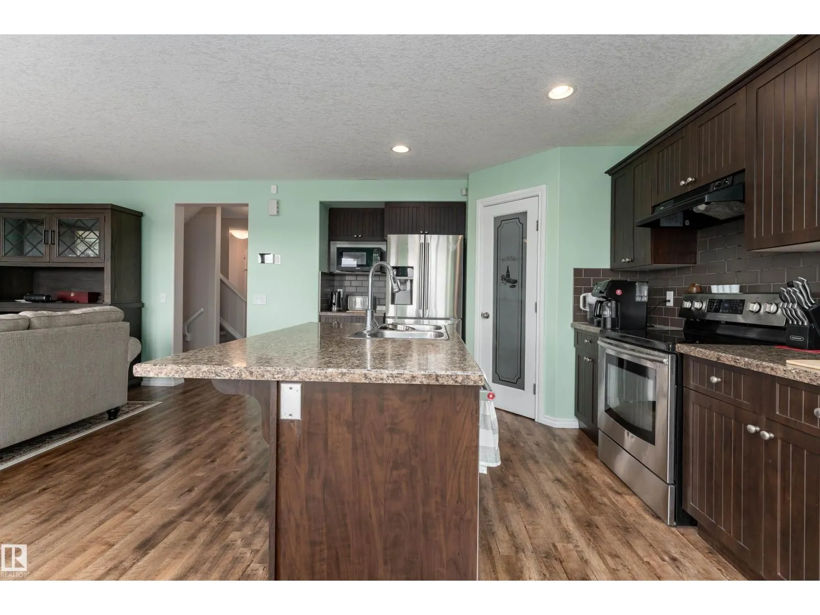 Welcome home to this well maintained 1830 sq ft 2-story home that offers plenty of space for the whole family. The main floor boasts an open concept design featuring a spacious center island kitchen with ample cabinet and counter space, convenient walk through pantry and a seamless flow into the dining and living areas. 2 pc powder room and main floor laundry with access to your double attached garage. Upstairs you will find NEW vinyl plank flooring throughout, a large bonus room filled with natural light, 4 pc main bath and 3 spacious bedrooms with the primary featuring a walk-in closet and a 4 pc en-suite with soaker tub and separate shower. The finished basement adds even more living space with a 4th bedroom, rec room, office space and plenty of storage. Potential for a full bath with the rough in plumbing. Furnace and HWT (2023), New C4 shingles (2024) with transferable warranty. Enjoy the cozy deck space with a fenced backyard and brand new storage shed! Close to school, park and easy highway access. (id:27476)