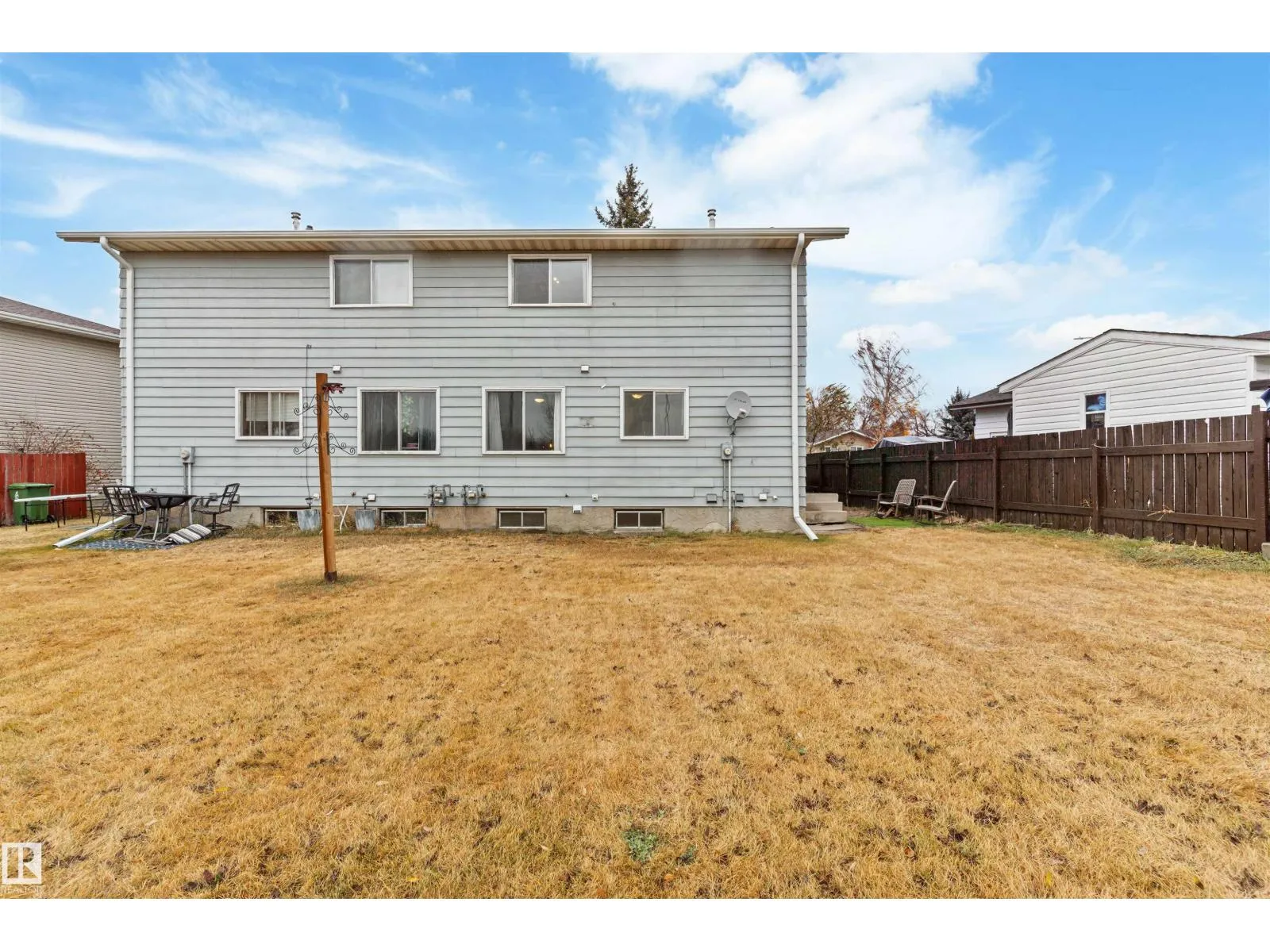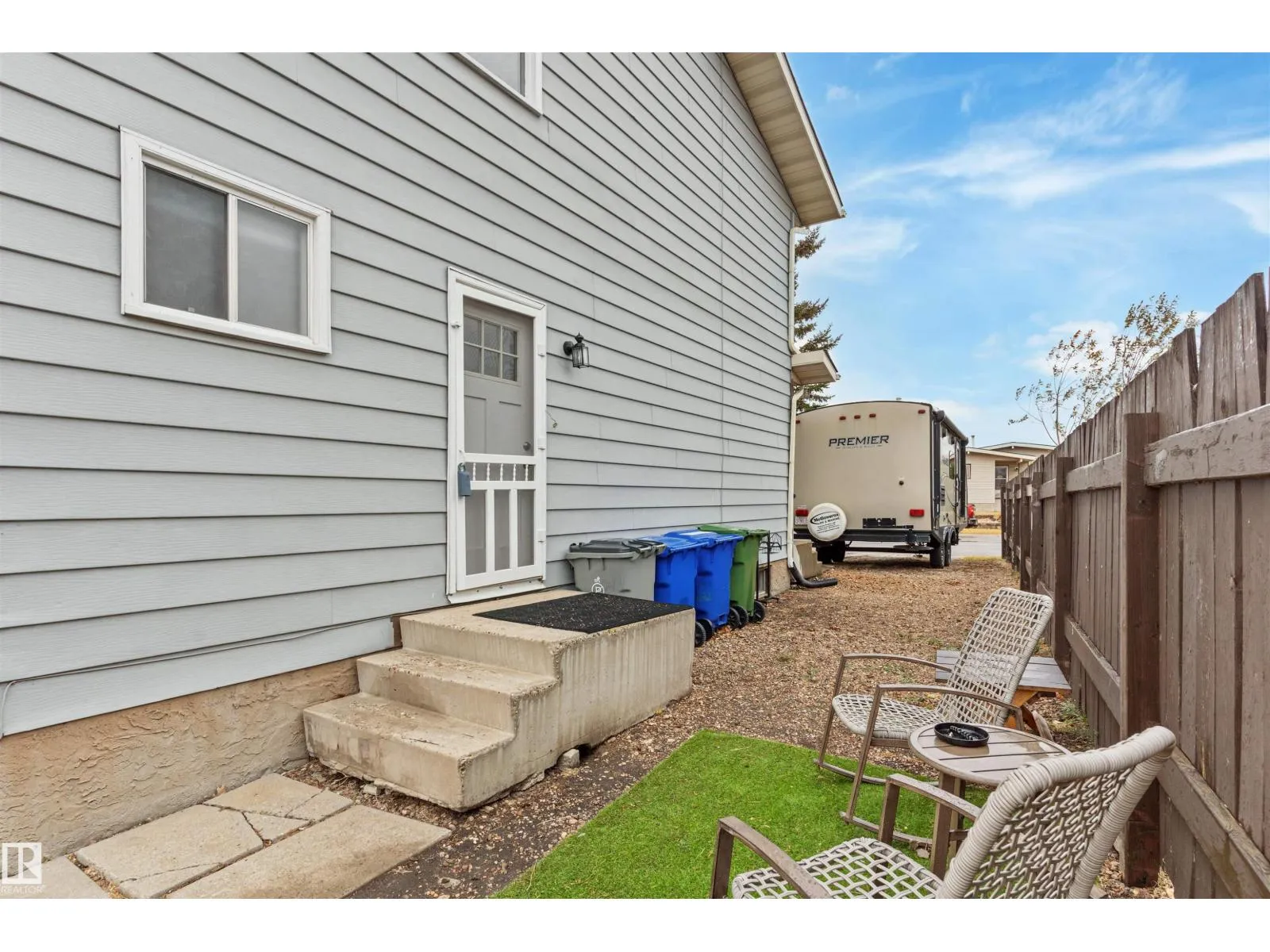 Drive a little, save a lot! Low property taxes and cost of ownership for this spacious Bruderheim duplex, nestled in well-kept community, within walking distance to schools, parks, and more. Large backyard with storage shed, extended driveway for RV or vehicle storage, new eavestroughs, and more. With side entry and unfinished basement, the potential is endless! The mainfloor boasts a country-inspired newly-renovated living space, complete with bay windows and new paint! The 2nd floor has 3 bedrooms, ideal for that home office or family visit. New hot water tank and furnace are also included in this maintained property. It's country living, a short commute from the city. (id:27476)
