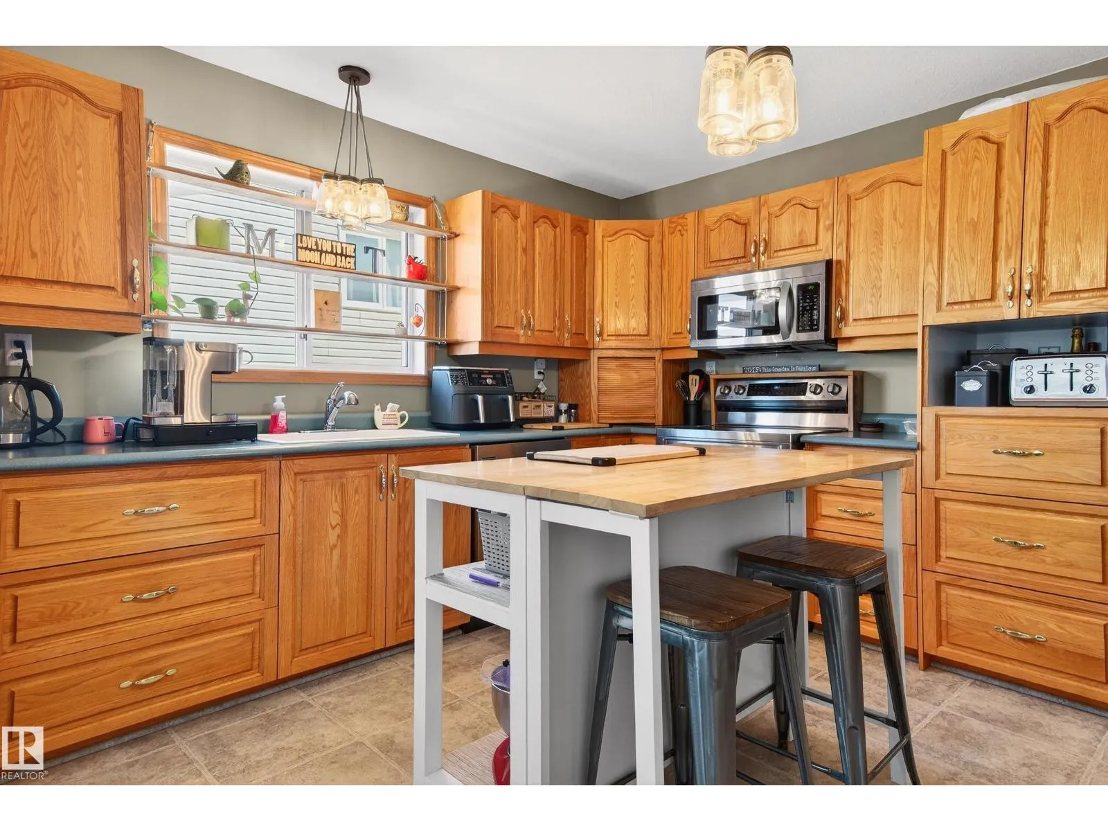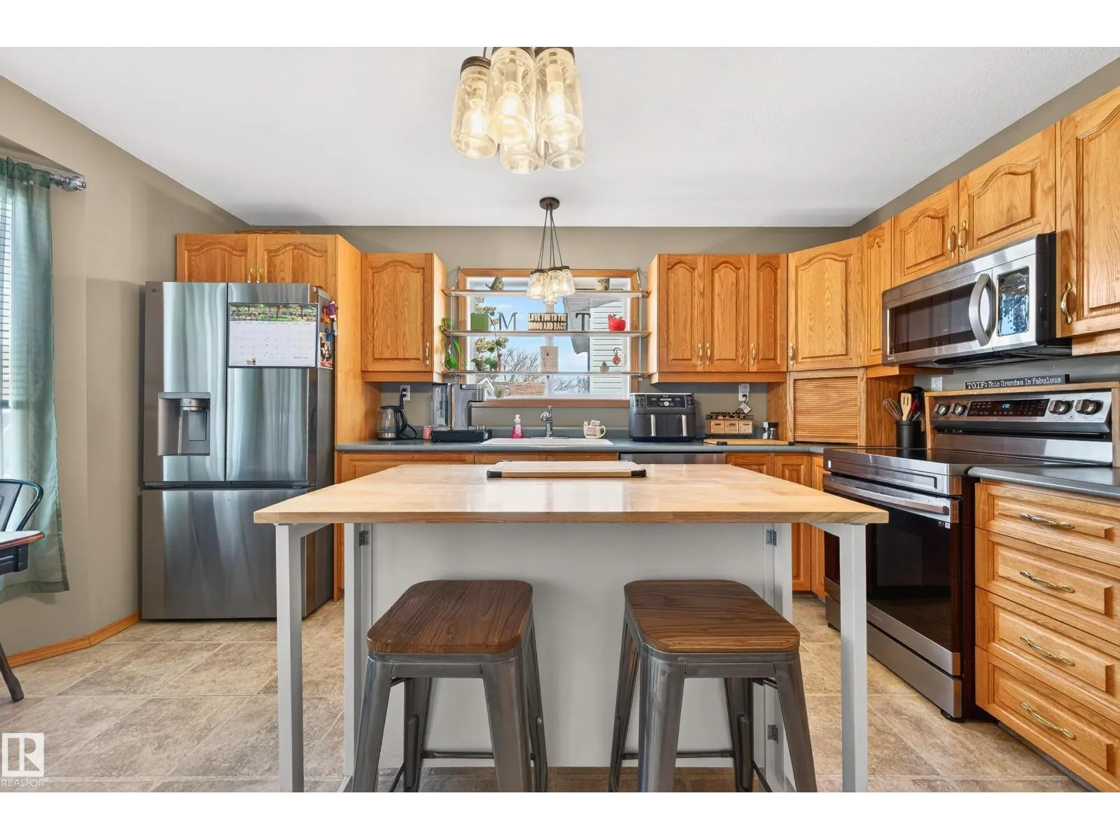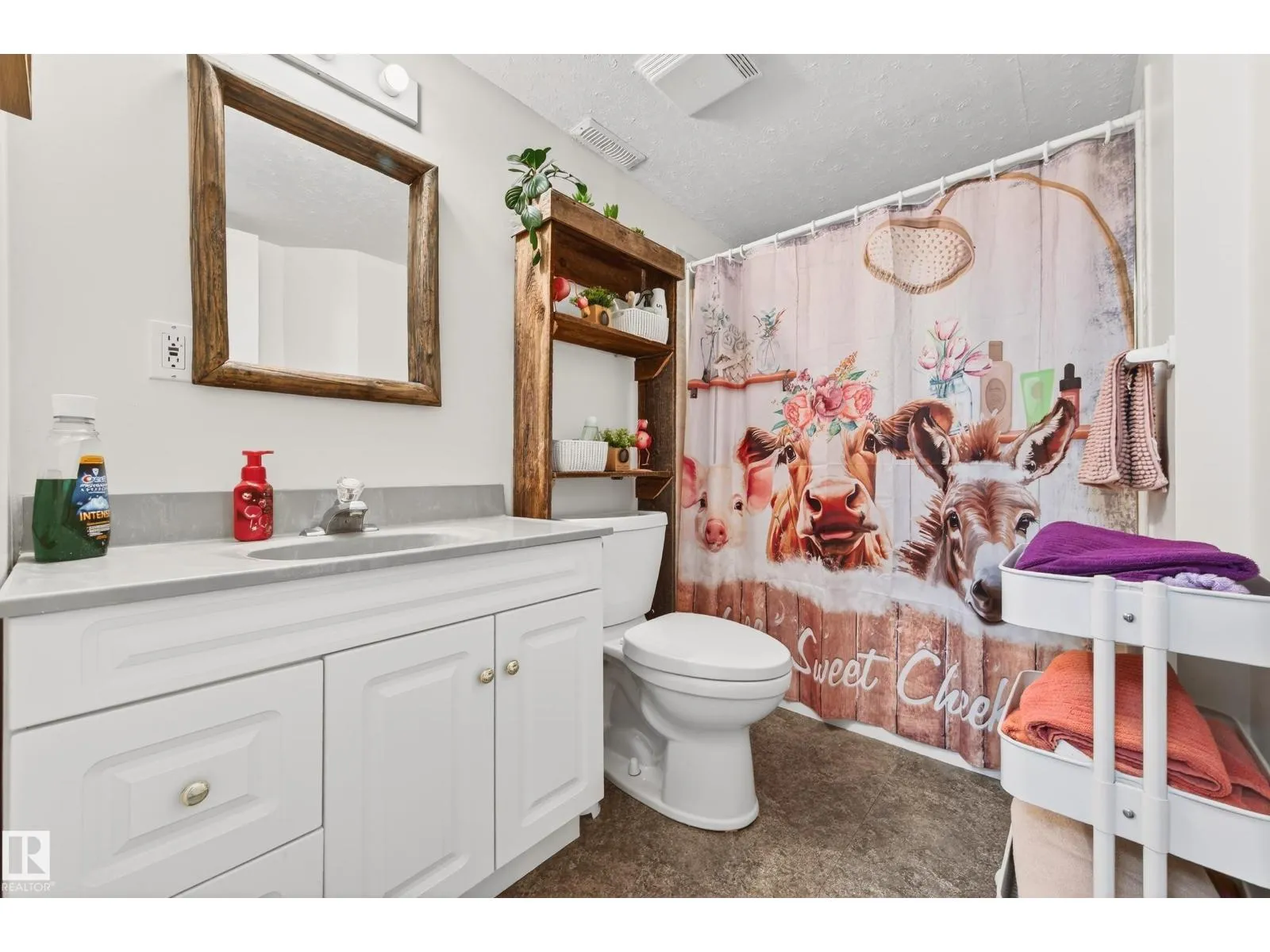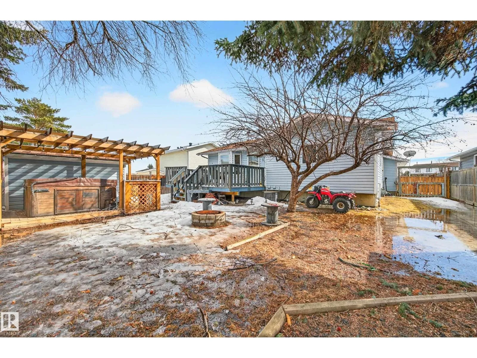 Drive a little, save a lot! Welcome to this well-maintained 1,165 sq ft bungalow built in 1994, offering the perfect blend of comfort and value. Featuring 3+2 bedrooms and 3 full bathrooms, this home is ideal for families or those needing extra space.The main level boasts a cozy living room with a charming wood-burning fireplace, perfect for relaxing evenings. Enjoy the convenience of updated stainless steel appliances, central A/C, and a functional layout designed for everyday living.The fully finished basement provides additional living space, bedrooms, and flexibility for guests, a home office, or recreation. Step outside to a beautifully set-up backyard complete with a pergolaâperfect for a future hot tub or fire table setup.Additional highlights include a double heated attached garage and pride of ownership throughout.Located in the friendly community of Bruderheim, AB, this property offers a quick commute to Albertaâs Industrial Heartland and easy access to larger urban centres. (id:27476)