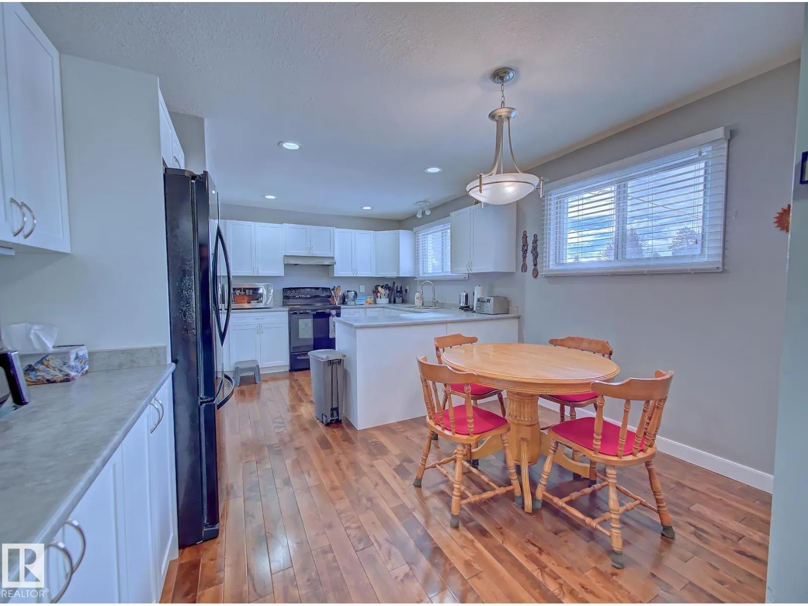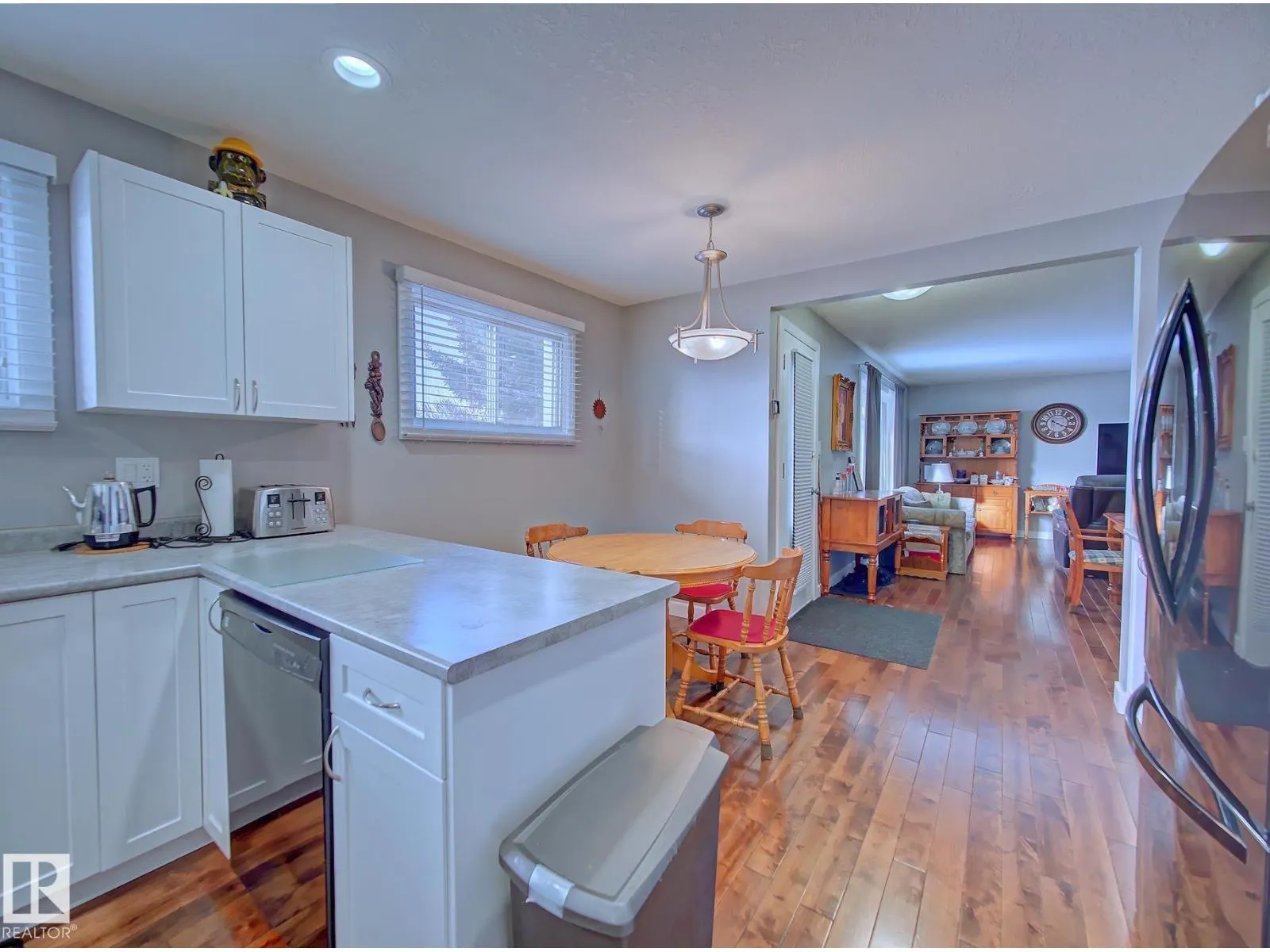 Looking for space, value, and a family-friendly location? This fully developed 3+1 bedroom bungalow on an oversized lot in Bruderheim checks all the boxes. Within walking distance to shopping, schools, and recreation facilities, this home offers a bright open-concept main floor with an upgraded kitchen featuring ample cabinetry and counter space, all overlooking the dining area and huge living room. Three generous bedrooms are found on the main level, including the primary with two closets, one being a walk-in. A 5-piece bathroom with a jetted tub and hardwood flooring throughout complete the main floor. The fully finished basement adds even more living space with a fourth bedroom, 3-piece bathroom, large recreation room with plenty of natural light, plus laundry and utility areas. Outside, the fully fenced backyard includes two storage sheds and plenty of room to enjoy. (id:27476)