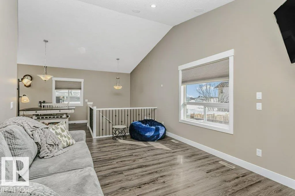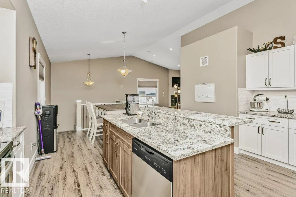 Impressive custom-built modified bi-levelâperfect for a growing family! Located in a quiet cul-de-sac, this bright, open-concept home features 3 spacious bedrooms and 2 full baths, including a large primary suite with walk-in closet and full ensuite. The soaring foyer welcomes you into a contemporary layout with large windows, hardwood floors, and a cozy corner gas fireplace. The kitchen is ideal for family living and entertaining, complete with granite countertops, working island, and stainless steel appliances, all open to the dining and family room. Step outside to a large patio and fully fenced, landscaped yardâgreat for kids and pets. Oversized attached garage adds extra convenience. Unfinished basement offers endless potential to grow and customize. Move-in ready and waiting for your family with a SUMMER Possession ! (id:27476)