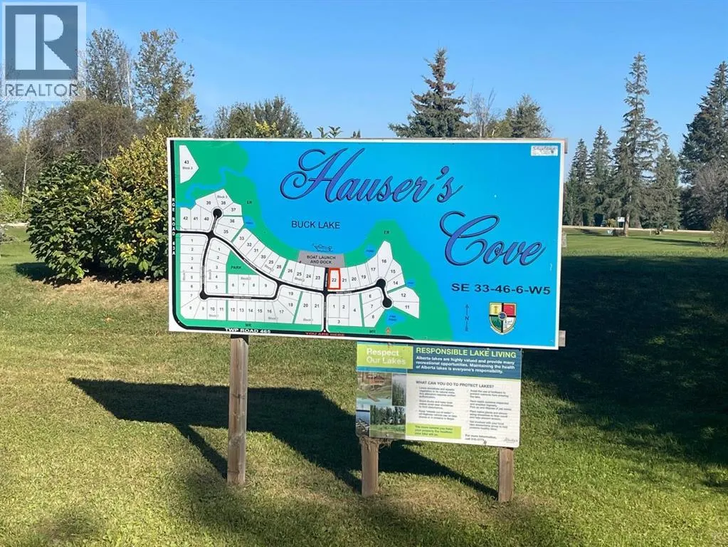 Discover this beautiful LAKEFRONT lot tucked away in the serene Hauserâs Cove on Buck Lake â the ideal location to build your dream home by the water! Set on the northwest shore, this secluded cove is surrounded by mature trees and offers direct access to nature trails, a wildlife preserve, and a floating marina. You'll also enjoy the convenience of a private boat launch exclusive to Hauserâs Cove, with this lot including its own dedicated boat slip. Located beside the boat launch, this property comes with power already available at the lot line and includes a 12âx8â shed for added storage. A designated environmental reserve lies between the property line and the shoreline, featuring a scenic walking trail that invites you to explore the natural beauty of the area. Just minutes from the hamlet of Buck Lake, there is a handful of shopping and dining options, while the surrounding lake and countryside are ideal for outdoor recreation! (id:27476)