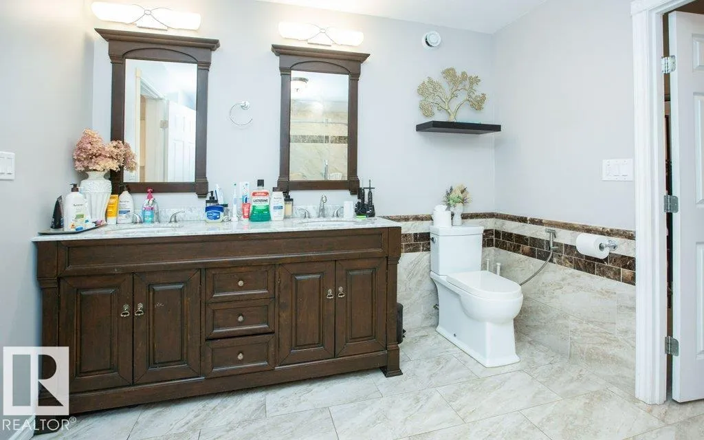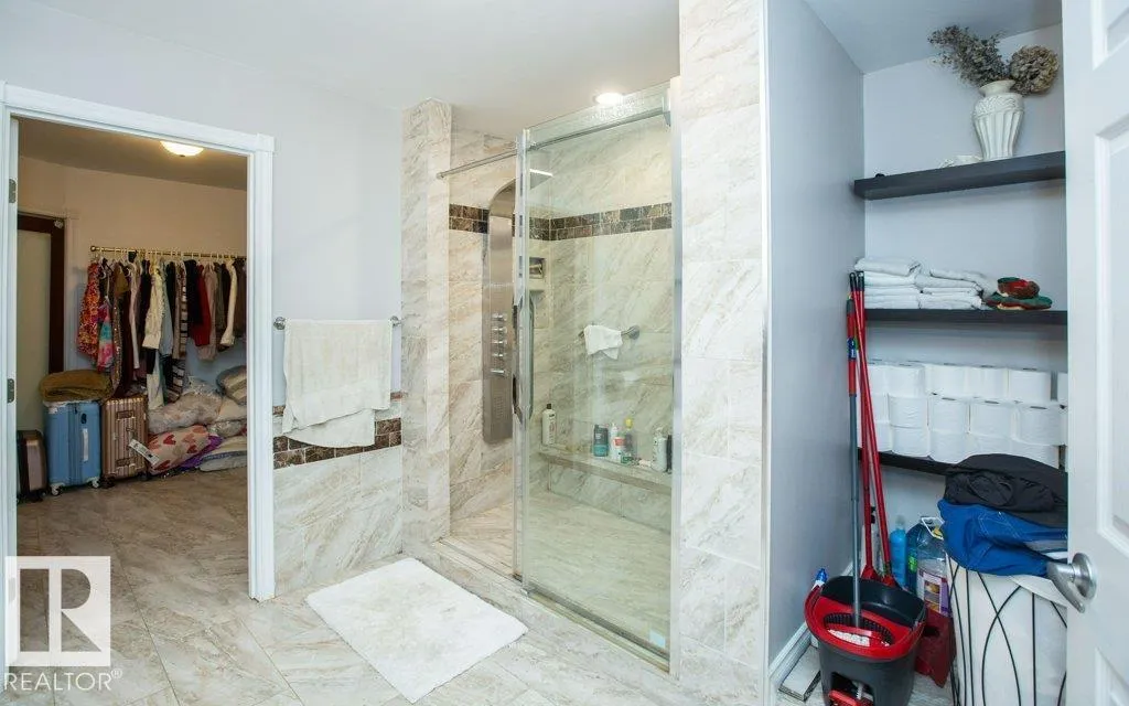 Sick of big city taxes? Here is a gem in Busby with lots of extras. 4 bedroom 4 bath bungalow with a 32x32 double attached garage with 13 foot ceilings and a storage mezzanine at the front. All set on 3 lots on the corner. Fenced yard, 2 tier deck and lots of room for the kids plus close to Busby school. The home features a huge master suite with double shower and double jacuzzi tub. Flooring on the main floor done in Versace tile with brass inlay. Open concept with huge kitchen and room to add an island if desired. There are 3 bedrooms in the basement, one features a 4 piece ensuite with jacuzzi tub. Also, a walk in climate controlled humidor room for cigar and wine storage. Also, a safe room plus the security system with 8 security cameras. This property is a must see. (id:27476)