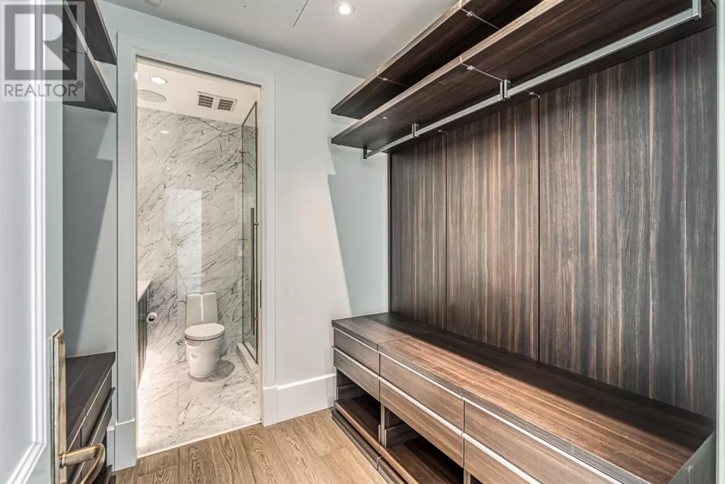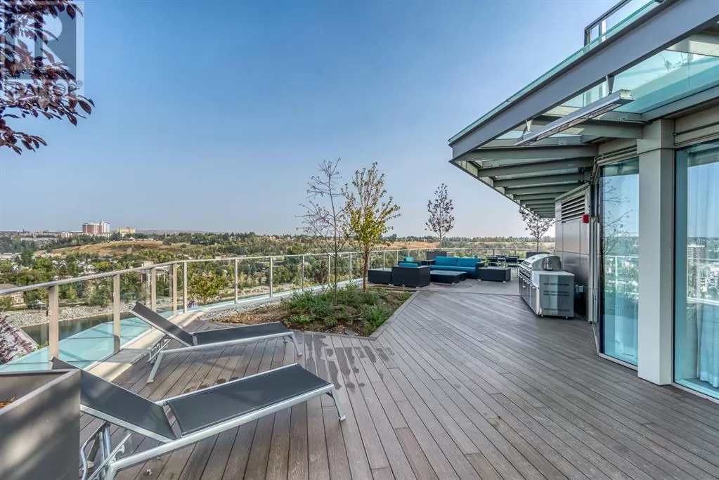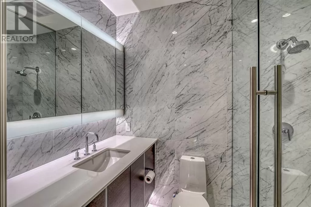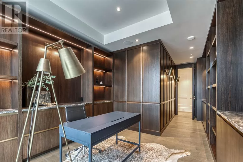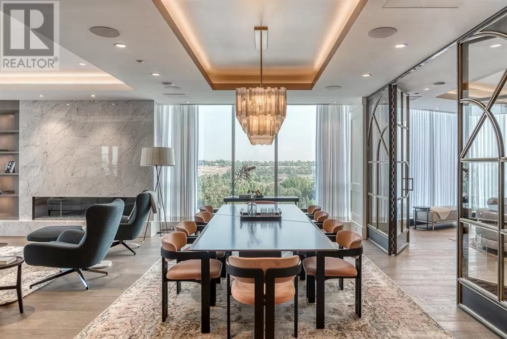 Enjoy spectacular waterfront sub-penthouse living with captivating panoramic views of the Bow River, Princeâs Island Park, downtown core, and vistas of the Rocky Mountains. Showcasing a full multi-million dollar Reno by Empire Custom Homes, this is truly the best and BIGGEST unit in The Concord and is the epitome of luxury. Not often do you find a condo unit with titled parking 4-CAR PRIVATE GARAGE with custom cabinetry and room for lifts. Best garage allocation for size and location. Grand open layout surrounded by floor-to-ceiling windows, marble throughout, and the finest finishings including new interior solid wood doors, custom hand forged iron detailing on doors, quality oak trim and wall treatments, automated blinds, and lavish fixtures. Porsche designed kitchen is sleek offering smooth carbon fibre cabinetry, marble counters, high-end Miele appliance package. Custom temperature controlled glass wine room located off the kitchen will surely impress your guests. Entertaining is a breeze with the open living and dining room allowing guests to mingle without feeling crowded. Marble full length steps up to your oversized outdoor living space featuring an outdoor BBQ kitchen and two gas lines for fire pit table hook-up. The views will leave you in awe as you relax with a glass of wine after a long day. Hand-forged iron french doors provide a chic Parisian feel opening up to your secluded media room with built-in shelving. Sophisticated master features show stopping views, access to the expansive deck, built-in feature wall, and an elegant spa-like bathroom featuring marble walls and floors, warmed by an in-floor heating system. Master closet is a true dream with custom cabinets, and built-in hampers. Second bedroom is light and airy and is equipped with its own walk-in closet and ensuite. A beautiful den showcases rich wood floor to ceiling custom panelled oak and automatic drapes. Amenities are endless and include 24hr concierge and security, summer water garden, winter skating rink, lounge, kitchen, full fitness facility and car washes. Constructed with long-lasting concrete, double glazed windows and a superior infrastructure designed for flood & emergency preparedness. Located mere steps to the Peace Bridge, Prince's Island Park, River Pathway System, and downtown. Urban luxury living at its finest! (id:27476)