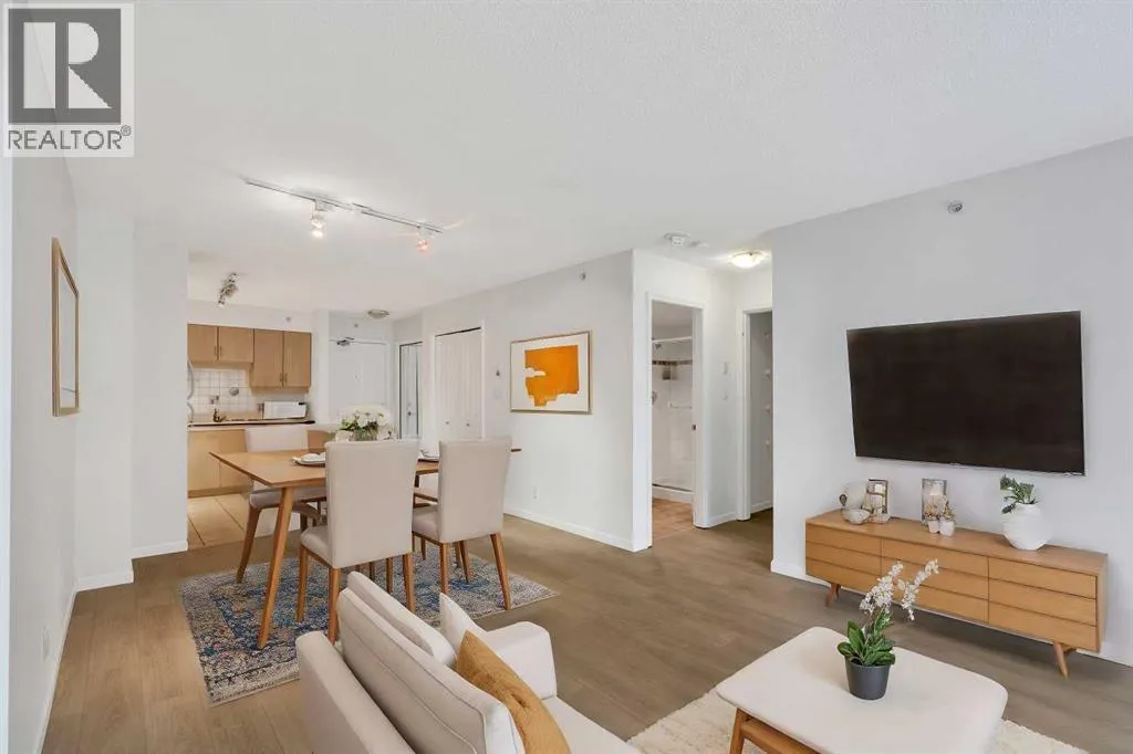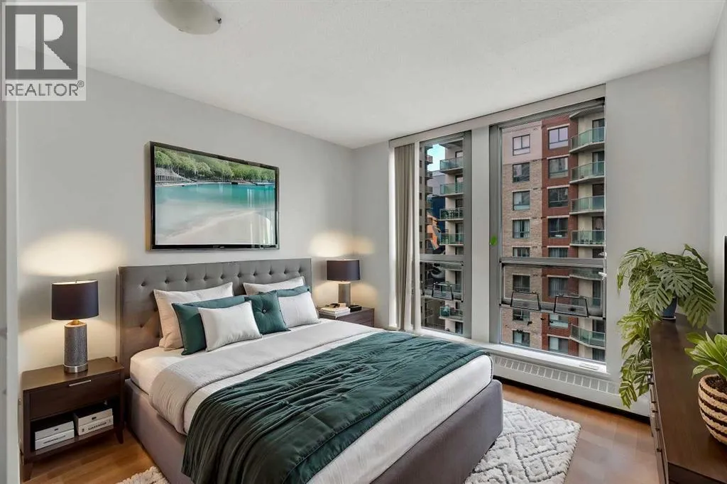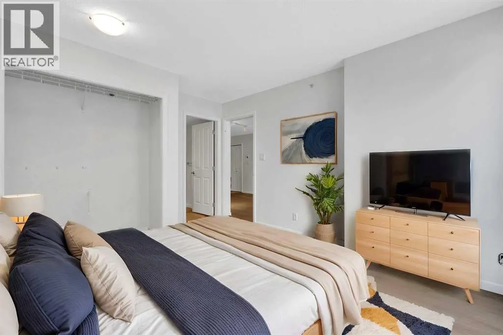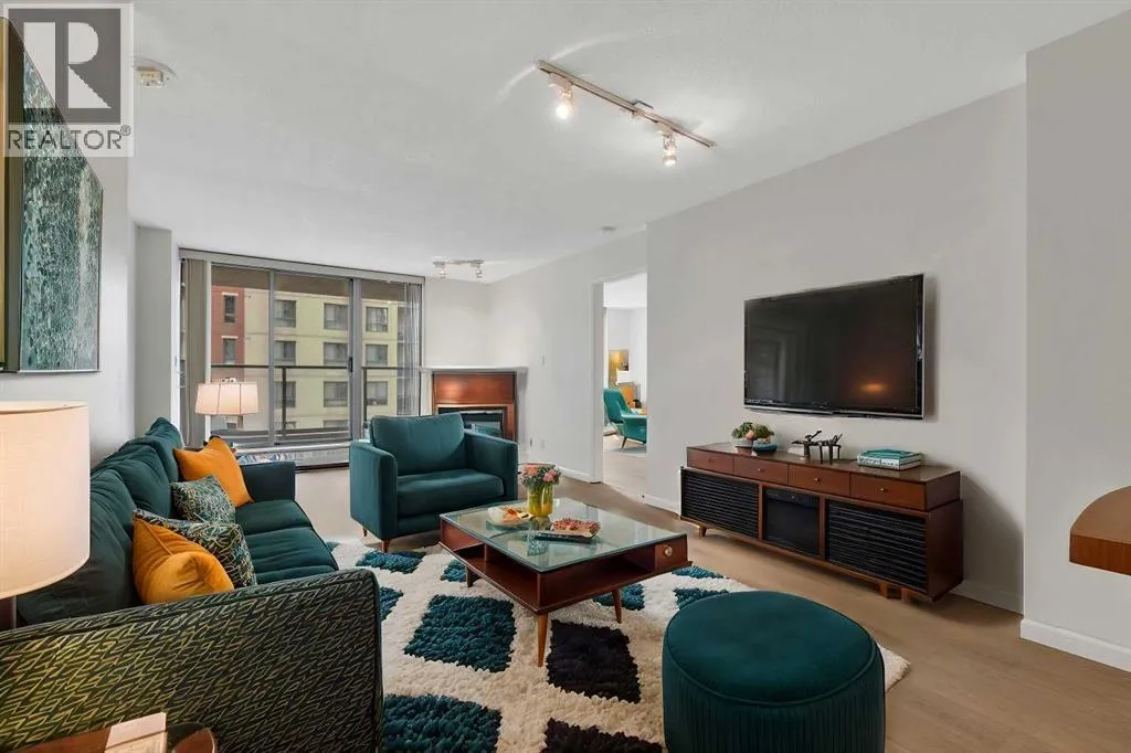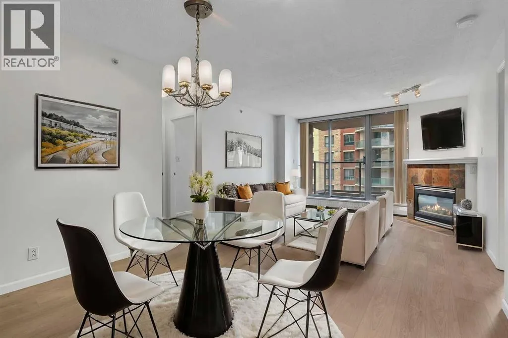 Welcome to 902, 650 10 Street SW â A Riverfront Gem in the Heart of Calgary. Discover urban living at its finest in this stunning 2-bedroom, 2-bathroom condo, perched on the 9th floor of the renowned Axxis building, offering breathtaking views of the Bow River. Perfectly located just two blocks from the scenic Bow River pathways, one block from the C-Train station, and a 10-minute walk to grocery stores and some of Calgaryâs top dining spots, including Bridgette Bar, Wayneâs Bagels, and Noble Pie. The Axxis is a well-managed, pet-friendly building that boasts an array of premium amenities, including a fully equipped fitness center, a spacious social room with a kitchen for entertaining, a serene outdoor courtyard, visitor parking, and secure bike storage. Step inside this bright and airy west-facing unit, where freshly painted neutral tones complement the open-concept living space. The spacious living room, complete with a cozy gas fireplace, flows seamlessly into the kitchen, featuring a large island with an eating barâperfect for casual dining or entertaining. Luxury vinyl plank flooring add to the home's stylish appeal, while the generous west-facing balcony invites you to enjoy sunset views. The primary bedroom offers a peaceful retreat, tucked away from the main living area, with ample closet space and a private 4-piece ensuite. The second bedroom is versatile, making it ideal for a home office or as a guest room for roommates. This unit also includes the convenience of an underground heated parking stall and additional storage, ensuring comfort and practicality in every detail. (id:27476)