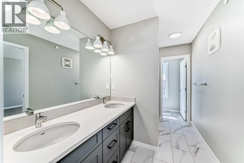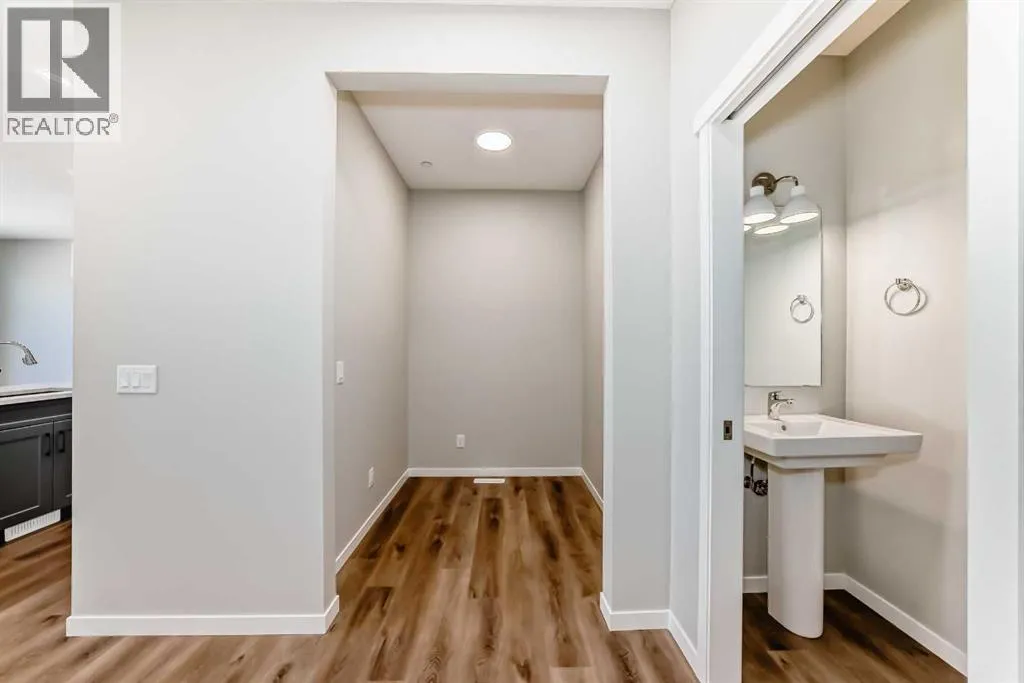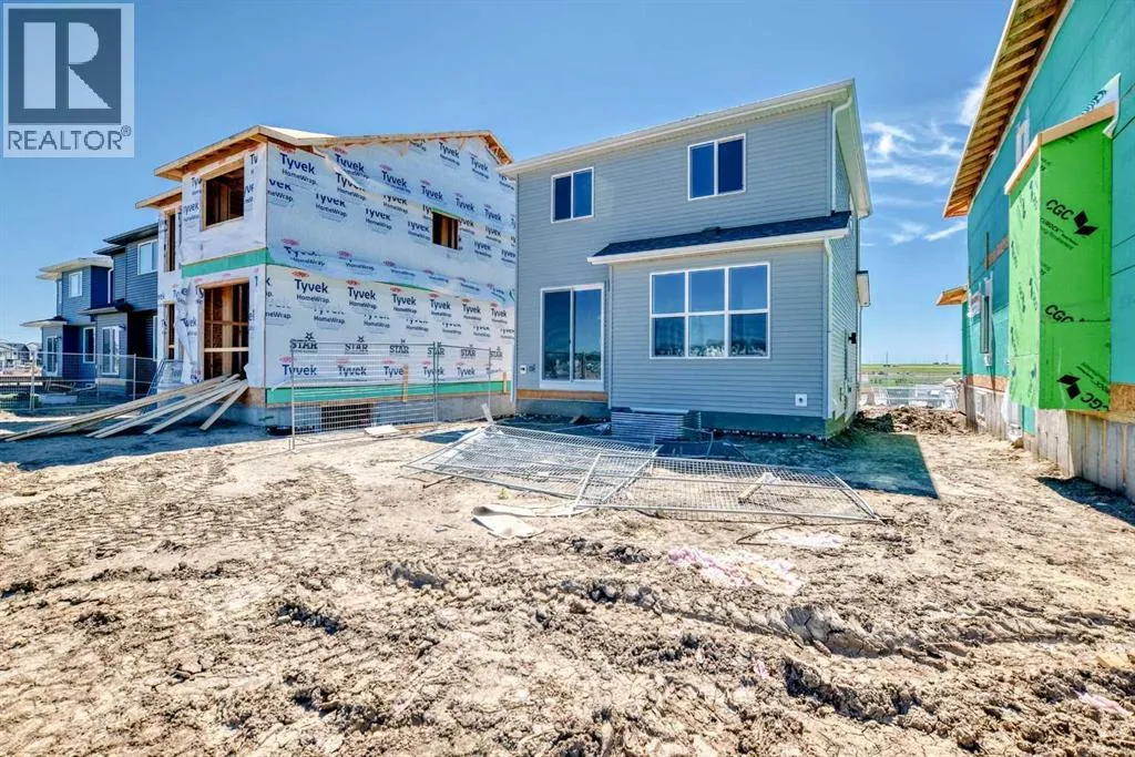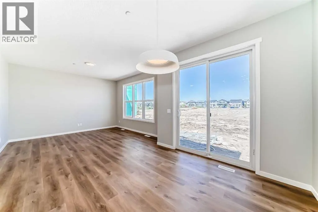 Welcome to the exquisite "Carisa" floor plan, where nearly 1,700 SqFt of thoughtfully designed space combines modern elegance with unmatched functionality. This homeâs layout is tailored for both comfort and style, creating the perfect setting for family living and entertaining. As you step inside, youâll be greeted by the warmth and durability of vinyl plank flooring that flows seamlessly throughout the main level, accentuating the modern finishes and striking architectural details. Natural light pours in through the back wall of windows, infusing the open-concept living areas with an inviting ambiance. Dual sliding patio doors extend your living space to the expansive backyard, ready for your personal touch to create the ultimate indoor-outdoor oasis. At the heart of the home, the kitchen is a chefâs dream. Featuring two-tone cabinetry, sleek quartz countertops, and a stylish tile backsplash that wraps elegantly around a chimney-style hood fan, this kitchen is as functional as it is beautiful. Stainless steel appliances and a thoughtfully positioned mudroom with direct kitchen access ensure that even grocery days are effortless. A cozy dining nook and a spacious living room, are perfectly positioned to enjoy the homeâs abundant natural light. The smartly designed pocket office offers the perfect work-from-home setup or a dedicated homework space for the kids. Upstairs, a versatile bonus room serves as the ideal family retreat, separating the serene primary suite from the secondary bedrooms. The primary suite is a tranquil haven, complete with a luxurious 4-piece ensuite featuring an oversized shower and ample space to unwind. The two additional bedrooms are generously sized, making them ideal for children or guests. With an upstairs laundry room and a stylish 4-piece bathroom, convenience is woven into every detail of this home. **This home also comes complete with full front and backyard landscaping, including sod, mulch on the side yards, and trees/shrubs in the front as per community guidelines. Located in the vibrant southeast Calgary community of Hotchkiss, this home offers more than just a beautiful living space. Residents enjoy stunning mountain views, 51 acres of park space, interconnected walking paths, and a central wetland. Designed with families in mind, Hotchkiss is a community where you can truly belong and thrive. (id:27476)