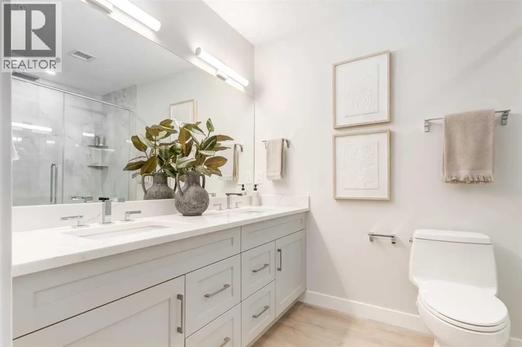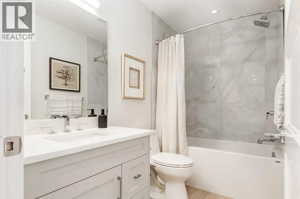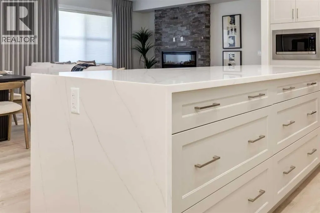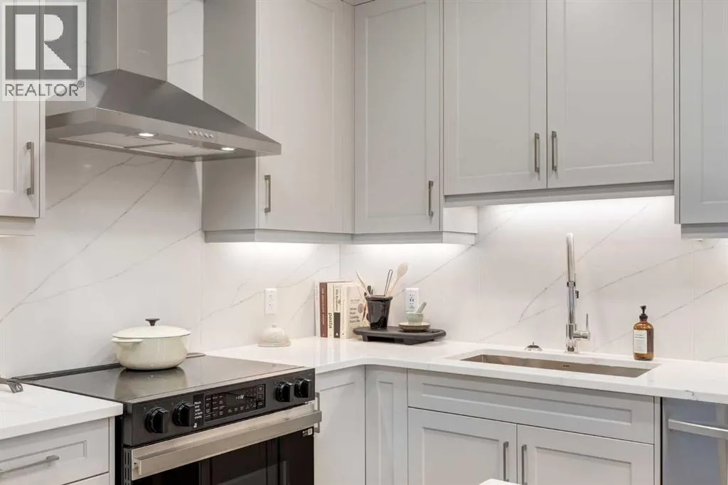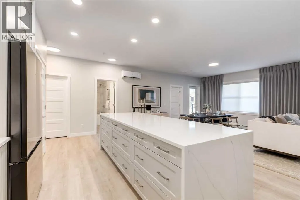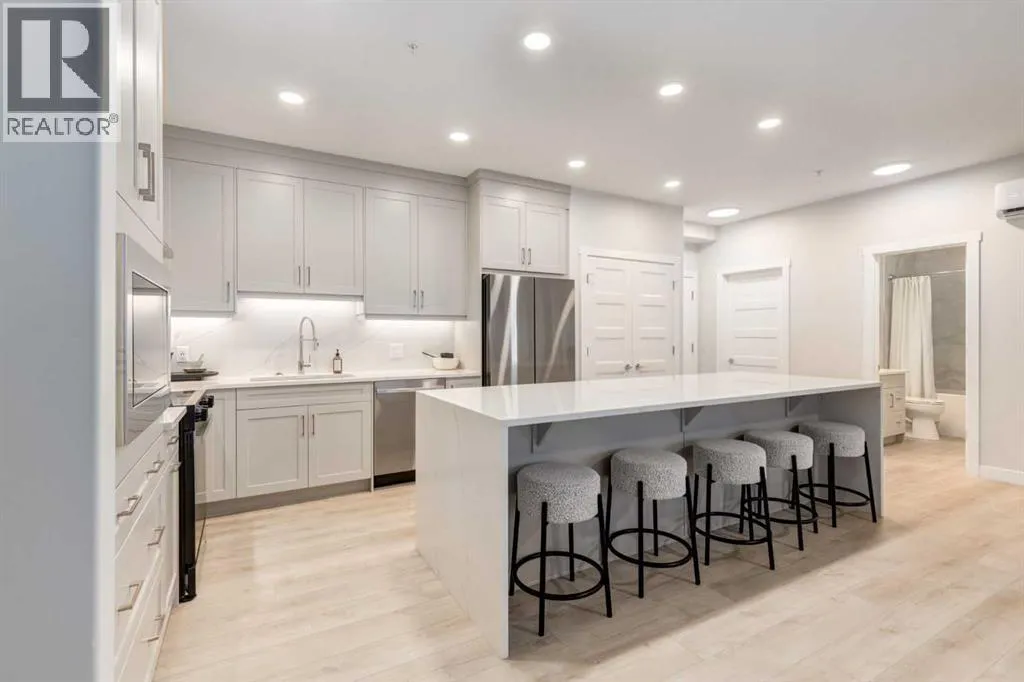 Welcome to the The BANKS, a distinguished boutique condo building nestled in the serene Wolf Willow area. Situated in one of the most sought-after locales, this impeccably designed residence offers unparalleled living. Your new home enjoys an enviable setting near the picturesque Bow River, a splendid golf course, and charming walking/biking trails. Convenience meets luxury as the Banks is just a 5-minute drive from grocery stores, shopping venues, boutique fitness facilities, and a diverse array of dining and entertainment options. This meticulously crafted GRAMERCY C Unit offers 1112 sq.ft. (RMS Measurement) and 1208 sq.ft. (Architectural Measurement) of thoughtfully designed living space and comprises 2 bedrooms, 2 full bathroom, exceptional open floor plan design with bedrooms on opposite sides of the unit, and 1 titled underground parking stall. Inside, discover exquisite details including quartz counter-tops, designer tile back-splash, custom cabinetry, stainless steel appliances, in-suite laundry, and (optional) wall-mounted air conditioning to keep you cool in the hot summer months. Additionally, the large patio beckons, providing an ideal space for entertaining guests or enjoying moments of tranquility in the open air. Developed by Cove Properties, one of Calgary's premier multifamily developers renowned for their dedication to quality construction, THE BANKS embodies excellence in every aspect. Don't miss this opportunity to elevate your lifestyle in this exceptional residence! Contact your agent today to arrange a viewing during The BANKS at Wolf Willow show suite hours. The BANKS offers a variety of unit types and price points, ranging from charming one-bedroom layouts to spacious and luxurious two-bedroom + den options.This unit is currently under construction, tentative completion is Spring/Summer 2026, taxes are not yet fully assessed, postal code has not been allocated, photos are of the BOW 360 at Wolf Willow show suite and not of the actual unit bu t represent the finishing standards of Cove Properties. (id:27476)