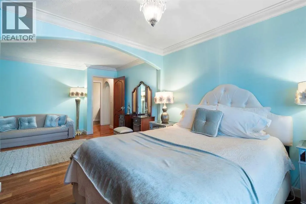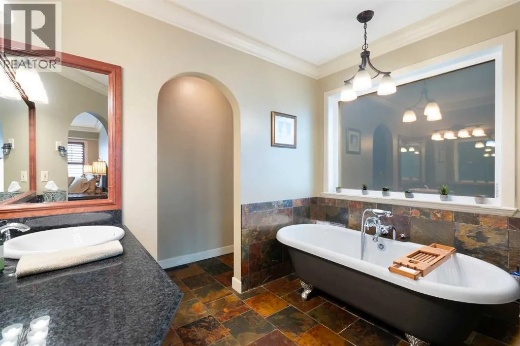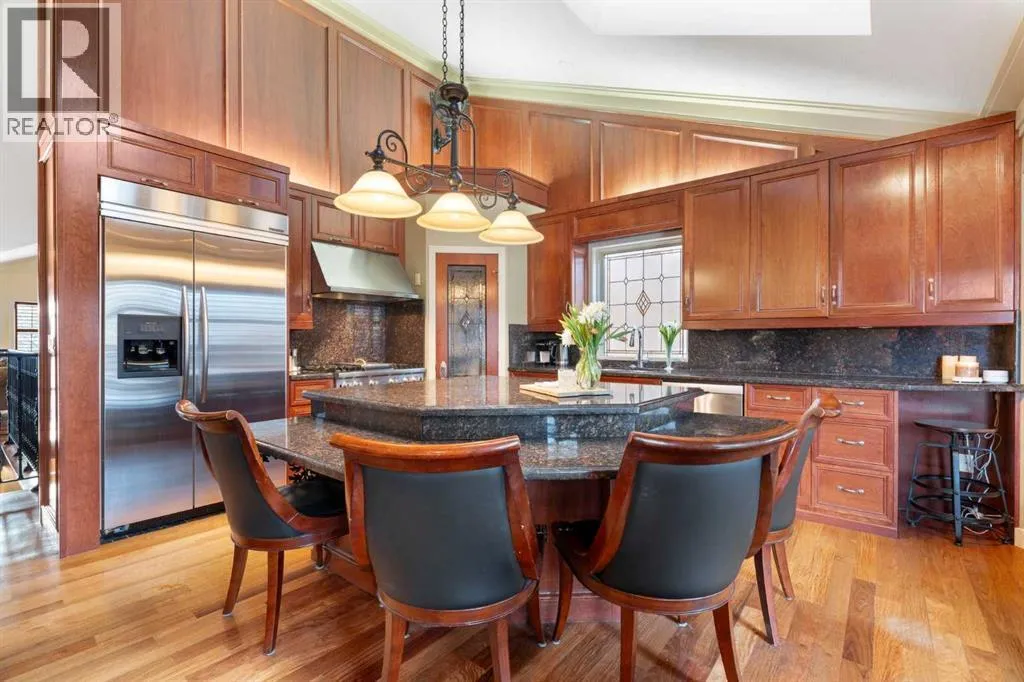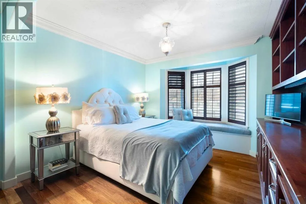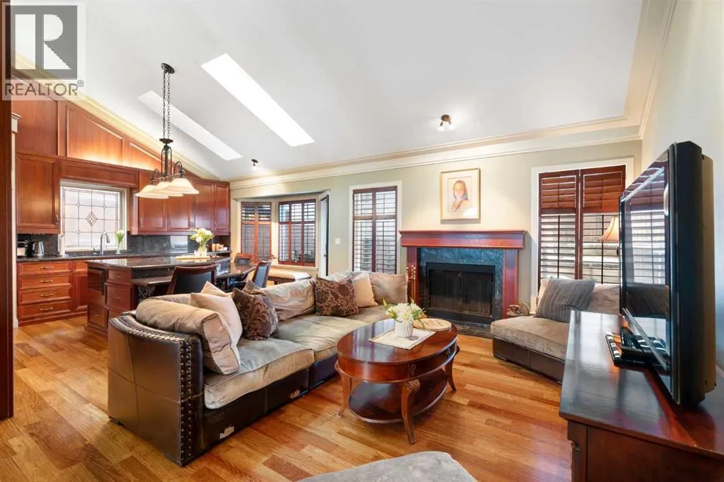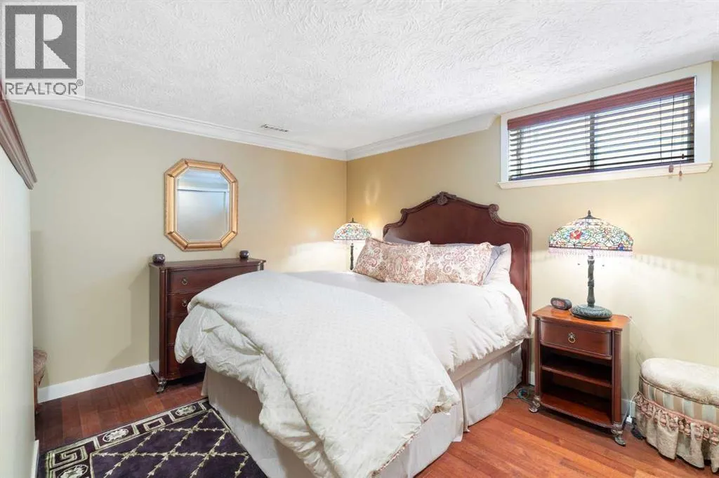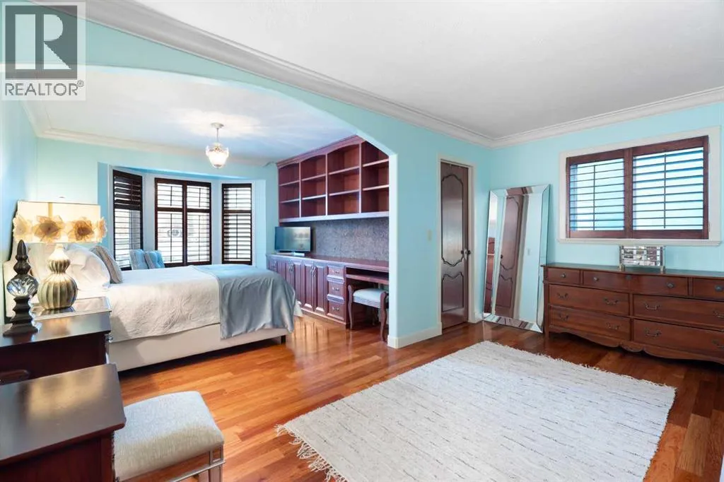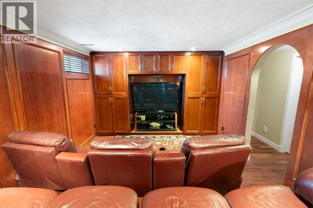 Excellent Long Term Investment! Located on one of the cityâs hidden treasures, Montalban Drive, this home is perched at the top of popular Montgomery offering sweeping valley and mountain views and situated directly across from Montalban Park. Walking distance to the Childrenâs Hospital, University District, and Market Mall. The University of Calgary and Foothills Hospital are also both a short distance away. You can instantly feel the quality when you walk into this custom built 2000+ sq. ft raised bungalow. Special features include rosewood hard wood floors, custom ceilings with crown mouldings, solid core doors, custom rod iron railings and beautiful mill work throughout. The entry is open and airy and leads you to the 18 ft vaulted living and dining rooms showcasing unobstructed views. The generous living space is perfect for entertaining and flows seamlessly into the dining room highlighted by stain glass windows and gorgeous floor-to-ceiling paneling. The kitchen features a large two tier island with seating, walk-in pantry, stainless steel appliances, cherry cabinetry, a stain glass window over the sink and double skylights. The family room is cozy and welcoming with a wood burning fireplace and custom mantle. The south facing primary bedroom offers custom built-ins and 4-piece ensuite with claw foot tub and a large walk-in closet. The oversized second bedroom (originally two bedrooms easily converted back) has a window seat, large seating area and massive walk-in closet. The main floor is complete with a 3-piece main bathroom with glass shower, laundry room and access to the storage loft (or secret room) for practical storage or a childrenâs fun play space! The basement offers heated slate floors and convenient access to the oversized heated two car garage that offers tons of storage and work area. The spacious office is south facing with double windows which allows for tons of natural light where you can sit and work quietly. The bar and secon d living room are a highlight, with granite counter tops, lots of storage and a textured tin roof. The theatre room has two-tiered seating, a wall of built-ins and completes the entertainment zone. The basement also offers a third bedroom, and 3-piece bath with a large walk-in glass shower. This home encourages entertaining and is a warm and comfortable environment to enjoy your every day. The large private back yard has a patio, gas BBQ area and pergola. The south facing front yard has a patio as well to enjoy the valley and mountain views. This meticulously cared for bungalow is a unique offering and must be seen to appreciate the magnitude of the views and proximity to all key areas in the NW. Montgomery is creating a lot of excitement with its new Bowness Road streetscape, amenities and restaurants as well as outdoor urban living with the proximity to Shouldice Athletic Park and entrance to Edworthy Park. Come and see what life can be in this premiere Northwest location! (id:27476)