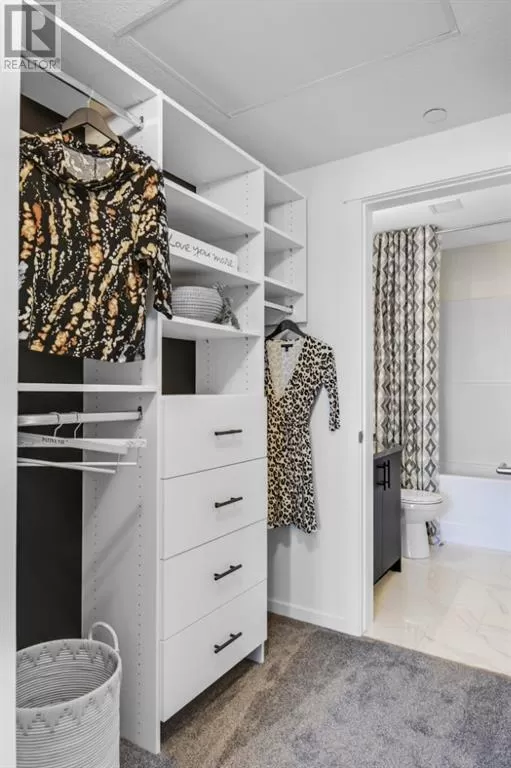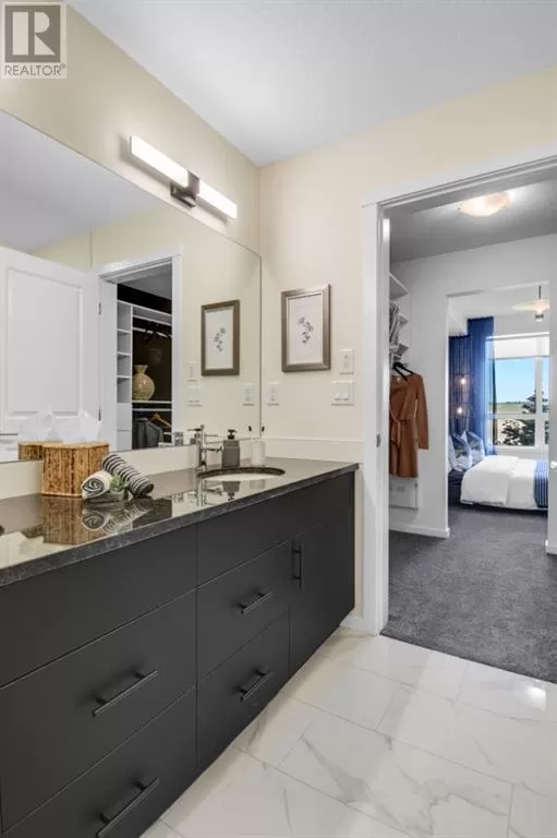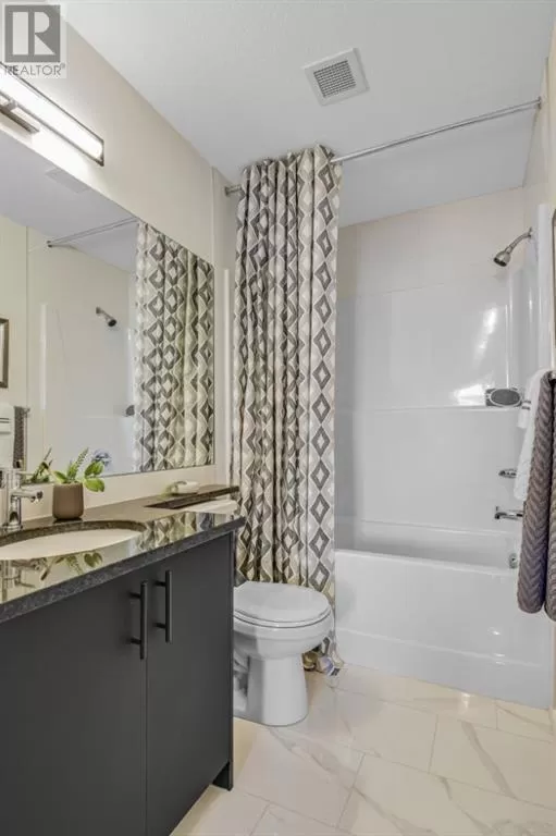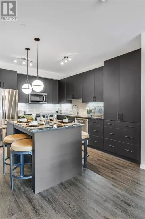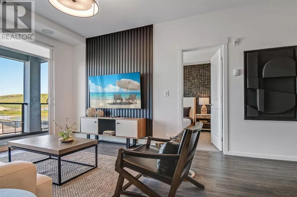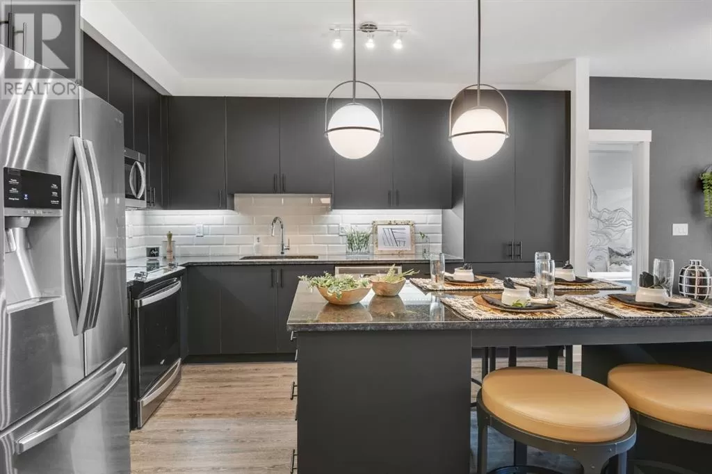 Stylish Developer Show Suite Condo in Sage Hill Park II â Charlie1 Plan by Brad Remington Homes. This 2-bedroom, 2-bathroom model in Sage Hill Park II offers a modern living space. The open-concept layout features 9-foot ceilings, hydrocork vinyl comfort plank flooring, and air conditioning for year-round comfort. The gourmet kitchen boasts granite countertops, soft-close cabinetry, and a full stainless steel appliance package, including a fridge, stove, built-in dishwasher, over-the-range microwave, and frontload washer and dryer. The primary bedroom includes a private ensuite, while both bedrooms are finished with plush carpet. Bathrooms feature tiled flooring, adding a sleek touch. Include a titled underground parking stall, an individual storage unit, window coverings, and in-suite laundry. Sage Hill Park II backs onto a beautiful environmental green space and regional bike path. Steps from shopping at Sage Hill Crossing and minutes to Beacon Hill Centre, featuring Costco and more. Enjoy nearby parks, pathways, and easy access to Stoney Trail for a quick commute. Everything you need is right at your doorstep! (id:27476)