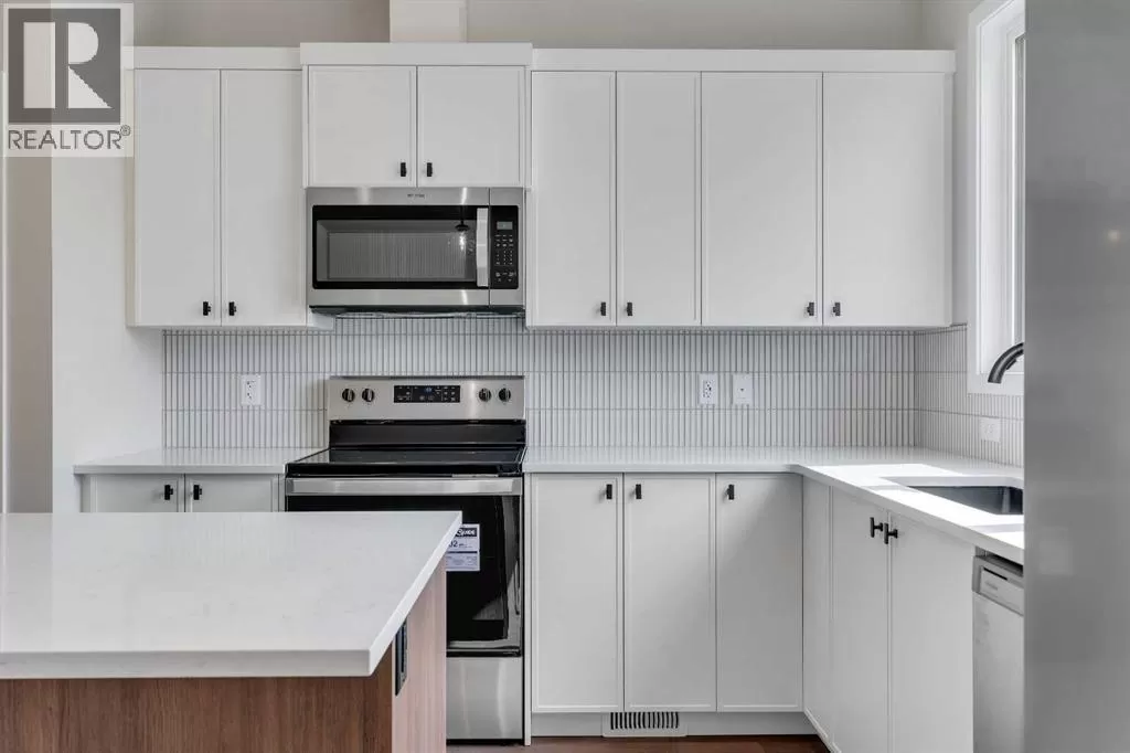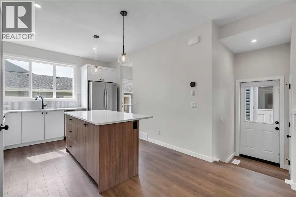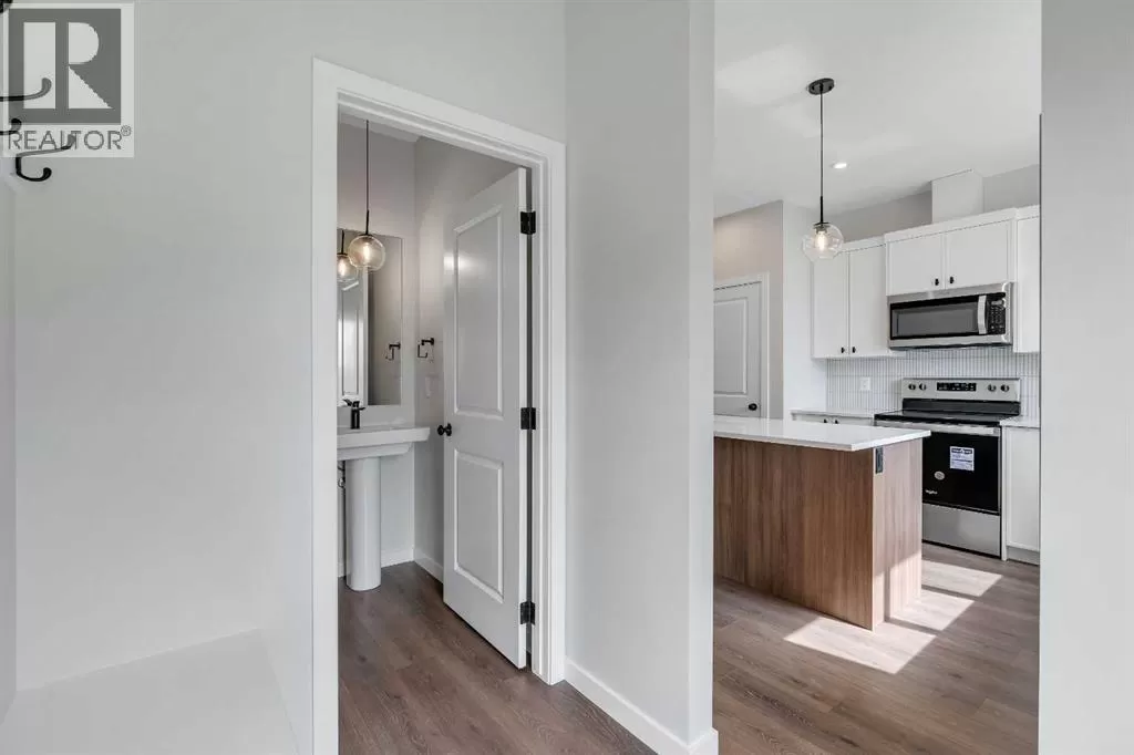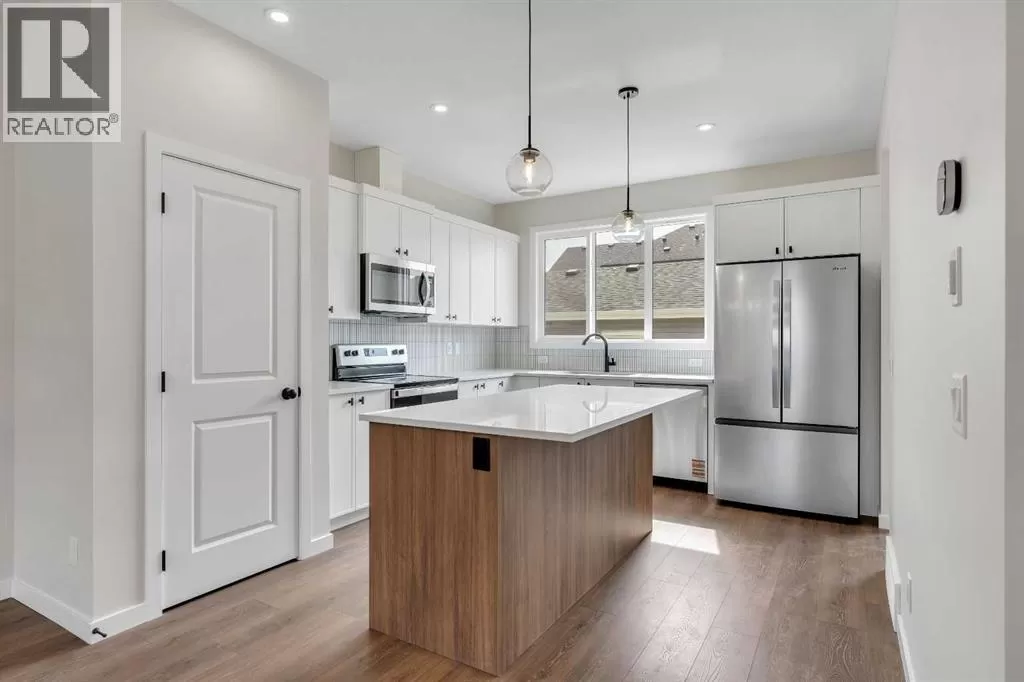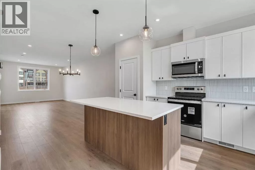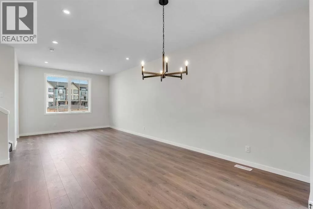 Welcome to 225 Heirloom Way SE, an exciting opportunity to purchase a brand new Heirloom Street townhome by Baywest Homes in the highly sought-after community of Rangeview. Presenting The Viola A model, this home offers a charming farmhouse-inspired exterior and an elegant interior featuring finishes handpicked by a professional interior designer. The layout is designed with the modern family in mind, offering an open concept on the main floor with 9-foot ceilings throughout. The main floor is highlighted by beautiful hardwood-inspired LVP floors, a gallery-style kitchen with quartz countertops, a sleek stainless steel appliance package, abundant cabinetry and counter space, and a spacious island with an eating bar. The living room, situated at the front of the home, is bright and airy with large, sunny windows. Just off the dining room, the mudroom and backdoor lead out to a private backyard and an oversized single detached garage. A half bath completes the main level. Upstairs, youâll find 3 bedrooms, 2 bathrooms, and convenient laundry. The generously-sized primary bedroom includes its own 3-piece ensuite with a large shower. The remaining two bedrooms are located at the back of the home and share a full bathroom. The home also features an undeveloped basement, offering ample space for future development, including additional bedrooms, a bathroom, family room, or storage. This townhome is an end unit, offering the added benefit of a side door, and boasts a private South-facing backyard. It is ideally located across from the new community greenhouse and fronts onto the future community gardens. You wonât want to miss this one, as itâs one of the final opportunities to own a property directly across from the upcoming greenhouse. Additional inclusions are the front landscaping, designer-curated palette with upgraded finishes at no extra cost. The builder also includes one side of fencing for your private backyard. Rangeview is Calgaryâs first Garden-to-Table Communi ty, thoughtfully designed to inspire food-centered living. With walkable streets, open spaces, and vibrant gardens, itâs the perfect environment for neighbors to gather and connect. Residents can enjoy walking, jogging, or cycling through the communityâs network of pathways and linear parks. Future plans include over 23 acres of reconstructed wetlands and ponds, creative playgrounds, outdoor classrooms, interpretive areas, and more. The food-producing gardens, orchards, and greenhouse will bring residents together to celebrate food and nature. The heart of Rangeview will be the Market Square, a lively space for community events, food markets, and celebrations, complete with open lawns and playgrounds. Plans for an Urban Village with restaurants, boutiques, and services will enhance the sense of community. **Photos are of the Showhome and may not exactly represent the finished product. (id:27476)