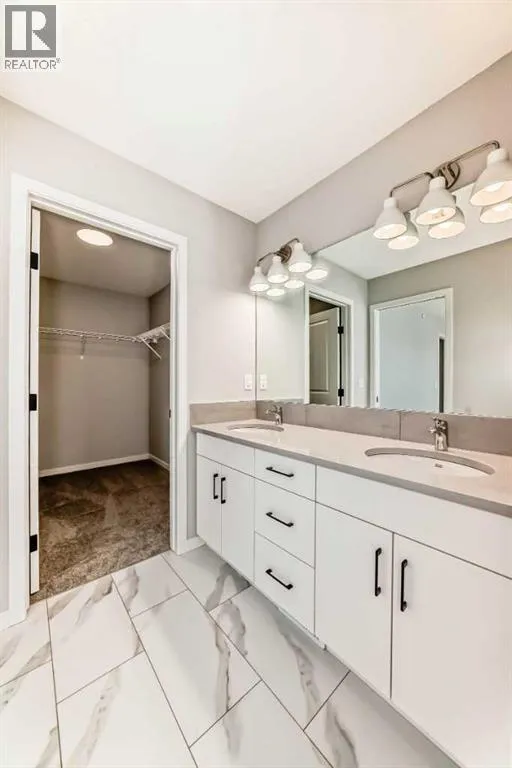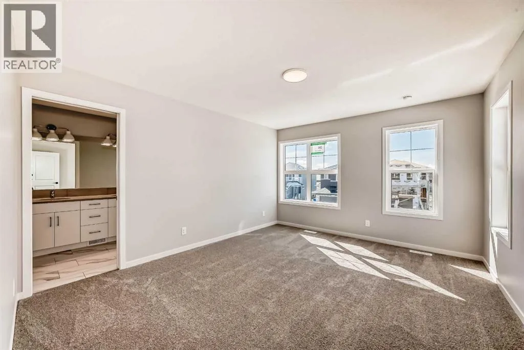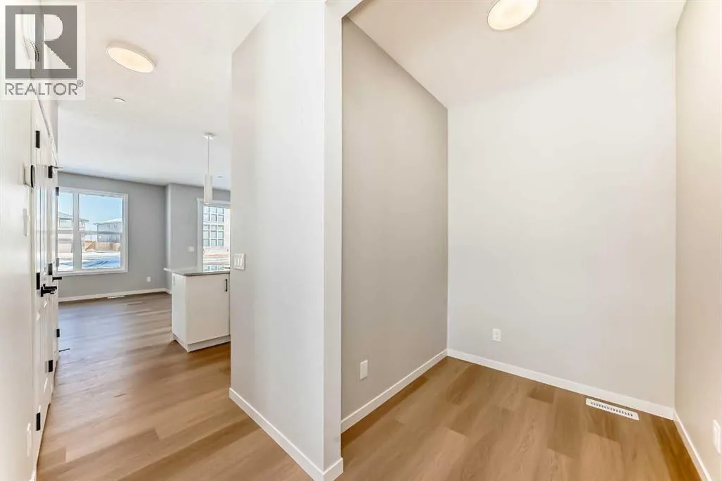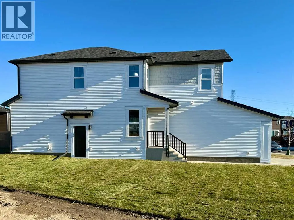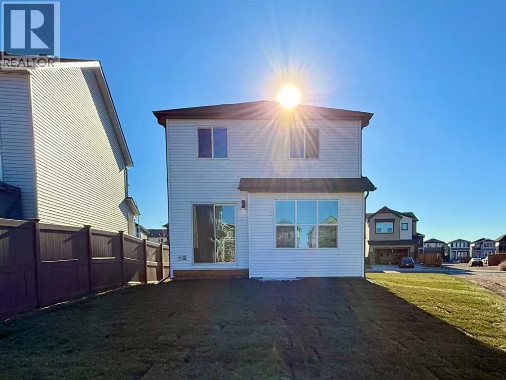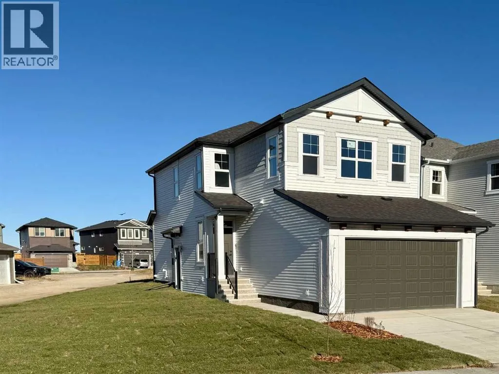 Discover the "Carisa" by Hopewell Residentialâan exceptionally designed home that blends style, comfort, and functionality, now available in the emerging southeast community of Hotchkiss. Situated on an oversized lot siding onto a lane, this property offers a generous yardâideal for family activities, gardening, or future landscaping dreams. From the moment you step inside, you'll appreciate the thoughtful layout and quality finishes that make this home perfect for modern living. The main floor features a bright and open-concept design where the kitchen, dining, and living areas flow seamlessly together. With large windows, the home is filled with natural light throughout the day, creating a warm and welcoming atmosphere. The kitchen is a standout, complete with upgraded quartz countertops and cabinetry, a built-in microwave hood fan, stainless appliances and designer-selected finishes that strike the perfect balance between style and function. Just off the front entrance is a smartly placed pocket officeâa quiet space ideal for working from home or helping the kids with homework. Upstairs, the home continues to impress with a versatile entertainment room that can serve as a cozy movie space, playroom, or additional lounge area. The upper-level laundry room is centrally located for added convenience, while the spacious primary suite offers a relaxing retreat, complete with a beautifully appointed ensuite designed with comfort in mind. Additional bedrooms are well-sized, offering flexibility for growing families or guests. The home also includes a 9-foot foundation and a secondary entrance, providing future development potential whether for additional living space or a possible secondary suite (A secondary suite would be subject to approval and permitting by the city/municipality). **This home also comes complete with full front and backyard landscaping, including sod, mulch on the side yards, and trees/shrubs in the front as per community guidelines. Located in the growing community of Hotchkiss, this home offers a unique blend of quiet residential living and convenient city access. With easy routes to Stoney Trail and 22X, getting around Calgary is a breeze. The neighbourhood is surrounded by natural wetlands, future parks, and open green spaces, making it perfect for those who enjoy an active, outdoor lifestyle. Hotchkiss is a community on the riseâoffering value, space, and the opportunity to grow with it. (id:27476)