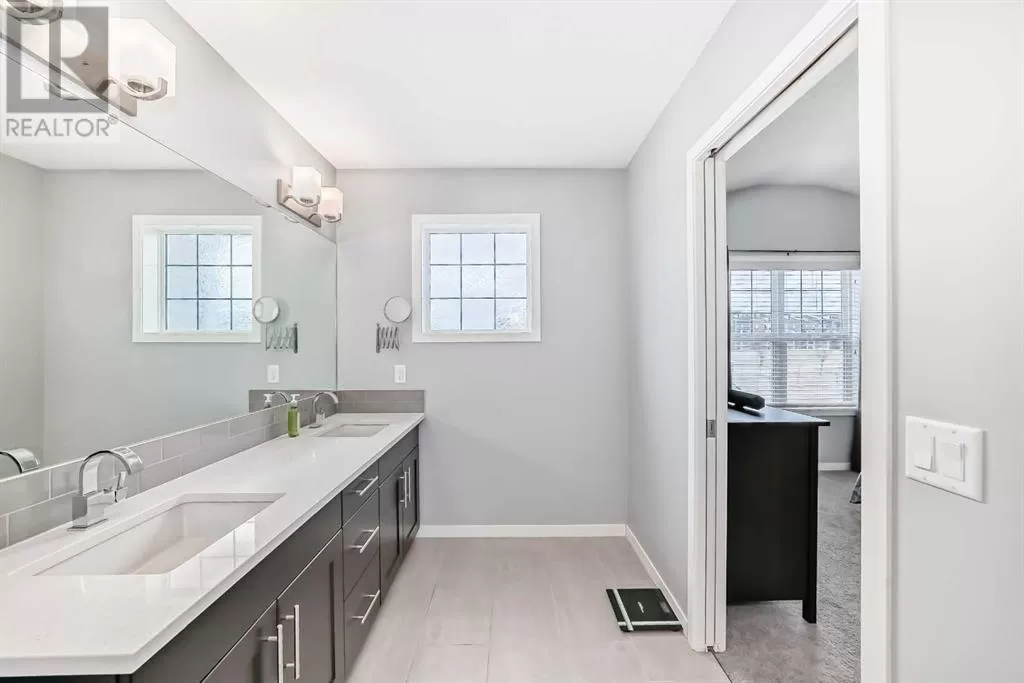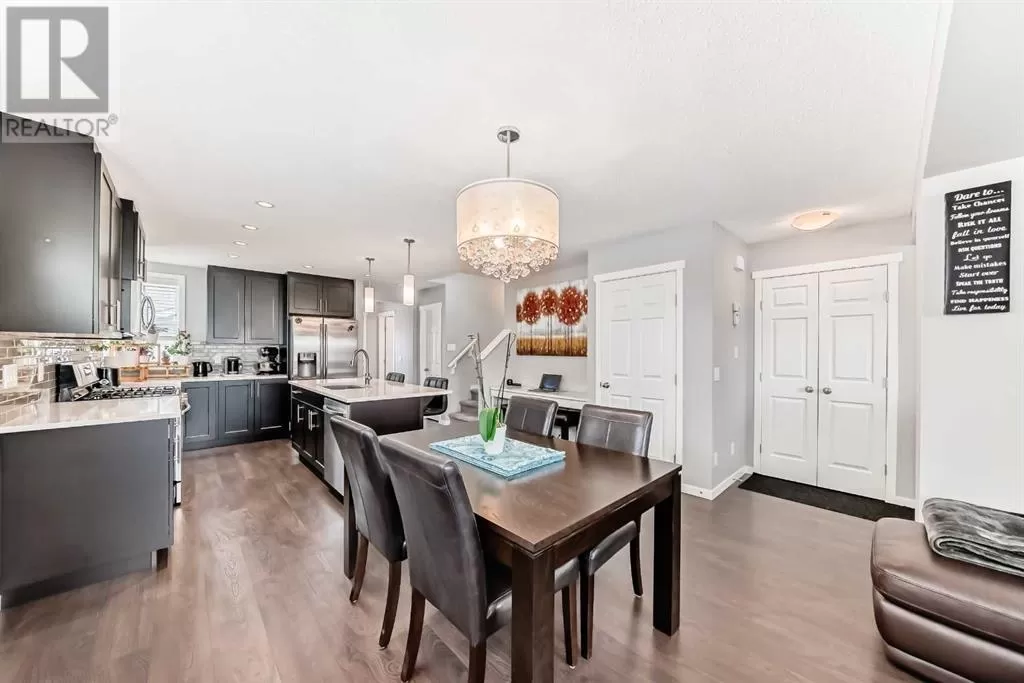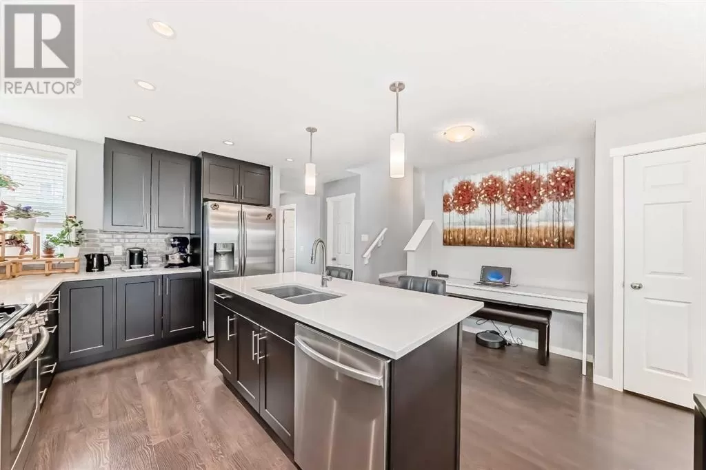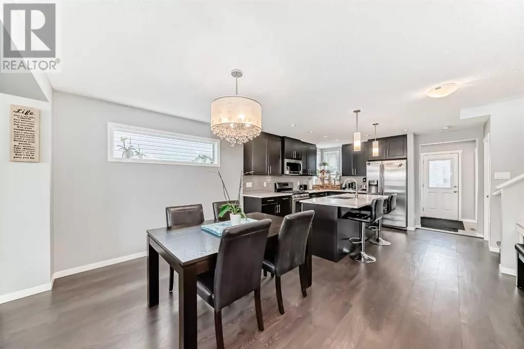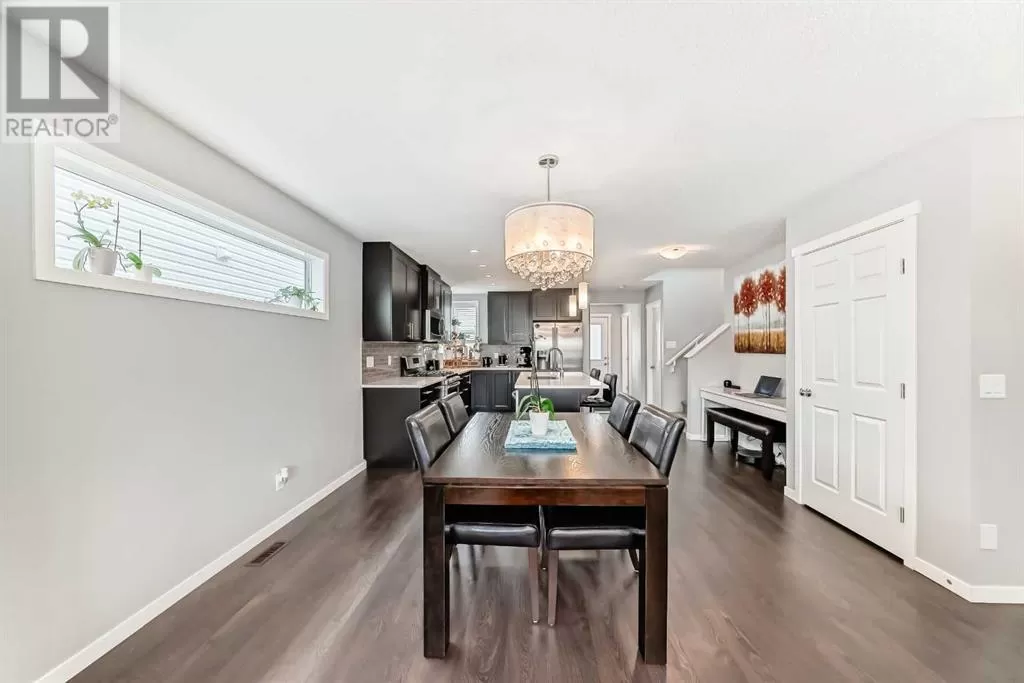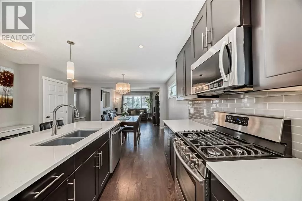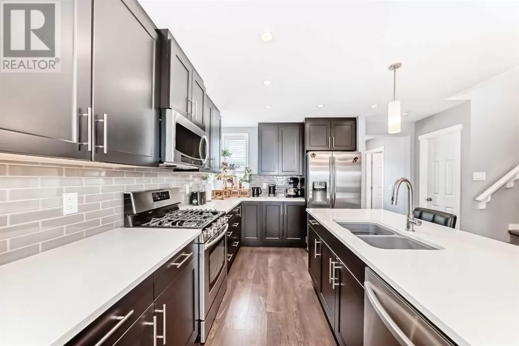 This well-maintained detached home features over 1,500 sq. ft. of living space and is located on a quiet street across from a green space, which offers style, comfort, and convenience. This beautiful 2-storey home shows pride of ownership and is sure to impress from the moment you arrive. With standout curb appeal, low-maintenance landscaping, and a welcoming front porch, this property blends comfort and convenience in one of Calgary's most family-friendly community of Copperfield. Step inside to discover a bright and inviting foyer with custom built-in bench seating and large windows. The open-concept main floor is perfect for both entertaining and everyday living. The chef-inspired kitchen features rich espresso cabinetry, quartz countertops, modern subway tile backsplash, a massive island with breakfast bar, pendant lighting, and stainless steel appliances including a gas range. The spacious dining area is enhanced by a stylish chandelier and easily accommodates a full-size table, with views that flow effortlessly into the living roomâcomplete with large windows and ample natural light. Just off the kitchen, a dedicated workstation nook makes working from home a breeze. A pantry for extra storage and a tucked away powder room complete this floor. Upstairs, the primary bedroom offers a tranquil retreat with a walk-in closet and a 4-piece ensuite that includes dual vanities and a separate shower. Two more generously sized bedrooms, an additional 4-piece bathroom, and a convenient upper-level laundry room complete the second floor. The unfinished basement includes rough-in plumbing and awaits your creative vision. Outside, enjoy summer evenings on large deck that offers BBQ gas line. Paved concrete space and double detached garage add even more function to this fantastic outdoor space. The community offers reputable schools, transit access, skating rinks, tennis courts, vibrant community center, plenty of parks, tranquil ponds, extensive connected pathways and coupl e neighborhood shopping areas. Major plazas such as South Trail Crossing and McKenzie Towne are adjacent to the community. Easy access to major road ways of Stoney trail and Deerfoot Trail. Schedule your showing today, as you don't wont to miss out on this home! (id:27476)