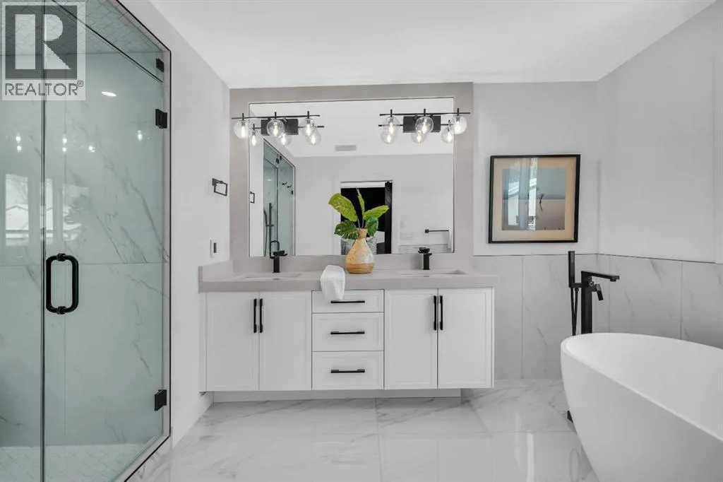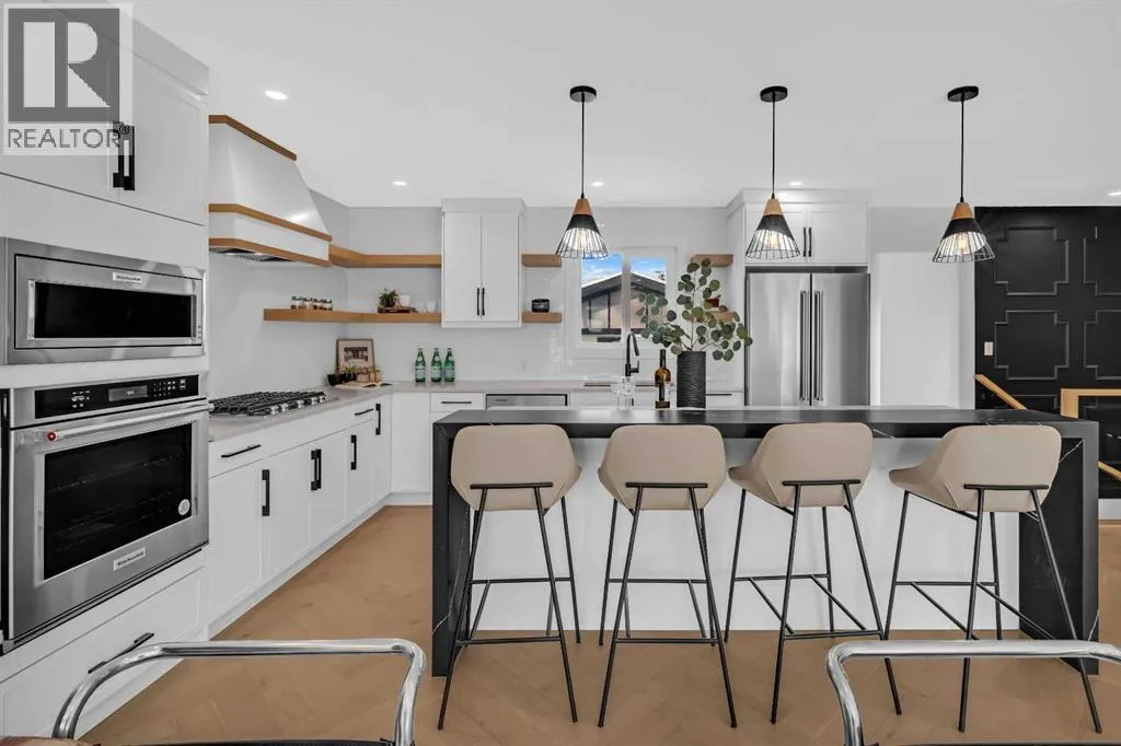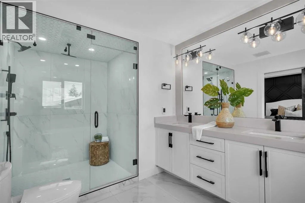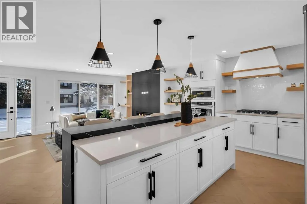 Stunning Renovated Bungalow | West Backyard | Brand New Double Oversized Garage | Double Primary Bedrooms | 5000+ Sq Ft Lot Size | Desirable Neighborhood of Lakeview | Finished Basement | Contemporary Design | Built-in Features |Imagine stepping into this beautifully renovated 4-bedroom, 3.5-bathroom bungalow, perfectly situated in the highly sought-after Lakeview neighborhood. This property features high-end finishings such as the engineered hardwood herringbone floors. As you walk through the front door, youâre immediately welcomed by the warmth of natural sunlight pouring into the spacious living room, thanks to its large vinyl windows. Picture yourself curling up by the striking natural gas fireplace, with its contrasting black accents and built-in shelving, creating a cozy and inviting atmosphere. The open-concept layout flows seamlessly into the kitchen and dining areasâideal for hosting friends or family. In the kitchen, youâll enjoy preparing meals on the gorgeous island, with high-end stainless steel appliances and built-in gas range and oven making cooking a breeze. The dining room, with its beautiful accent wall, sets the stage for dinner parties and intimate meals. The convenient mudroom offers storage for your jackets and shoes. There, a bench invites you to relax as you slip on your shoes before heading outside to the large west-facing backyard, where a new deck awaits for you to enjoy morning coffee or evening sunsets. When itâs time to unwind, retreat to one of the two main-floor primary bedrooms, each with its own ensuite, or venture downstairs to the spacious recreation room. Picture relaxing by the second fireplace or mixing drinks at the contemporary wet bar while friends enjoy the space. With two additional bedrooms, a 3-piece bathroom, and a dedicated laundry room downstairs, youâll have everything you need for comfort and convenience. The double-car garage, along with extra parking, ensures plenty of room for your vehicles. If you've got a RV, look no further as there's plenty of space to park it. Living in Lakeview means being minutes away from downtown, yet nestled in a peaceful, family-friendly community with many schools and easy access to major roads such Stoney Trail and Glenmore Trail. This home is the perfect blend of modern luxury and comfortable livingâyour dream home waiting to be enjoyed. (id:27476)