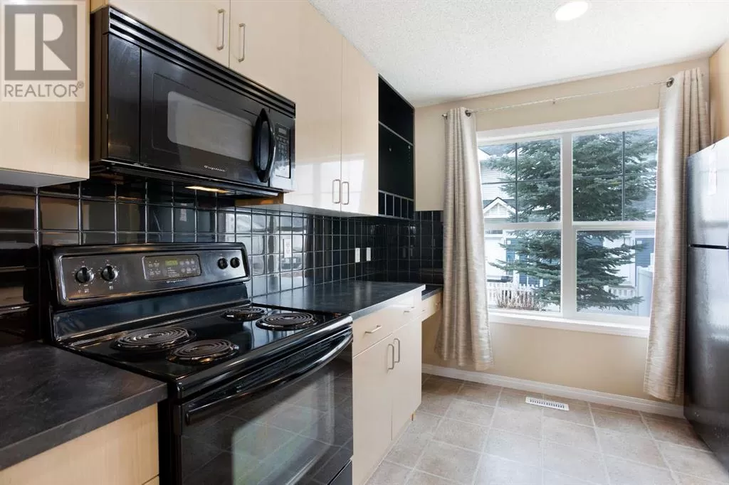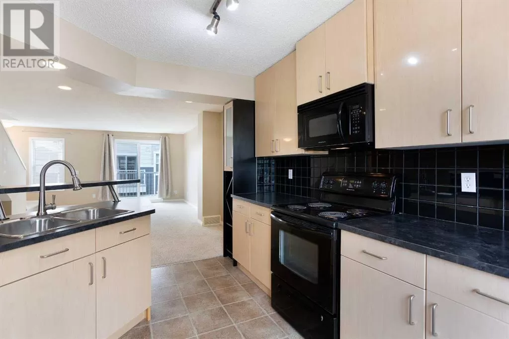 END UNIT | QUIET EXPOSURE | DOUBLE GARAGE | Located in the awesome family community of New Brighton! One of the best locations in the complex! End unit facing a private courtyard and siding onto an alleyway. Minutes from shopping, schools, restaurants, transportation & all the amenities offered at the New Brighton Club House! Welcome to this open floorplan with large windows providing tons of natural light. The large living & dining rooms are open to the maple kitchen featuring black appliances & raised breakfast bar, wine storage racks & built-in buffet cabinet. Upstairs you will find double primary bedrooms each with full ensuites (and one with a walk-in closet!) The basement offers lots of storage with built-in shelving. Alley access for the double attached garage too! Enjoy the sunny west patio overlooking the courtyard plus a BBQ balcony off the living room. Come check this one out today! (id:27476)