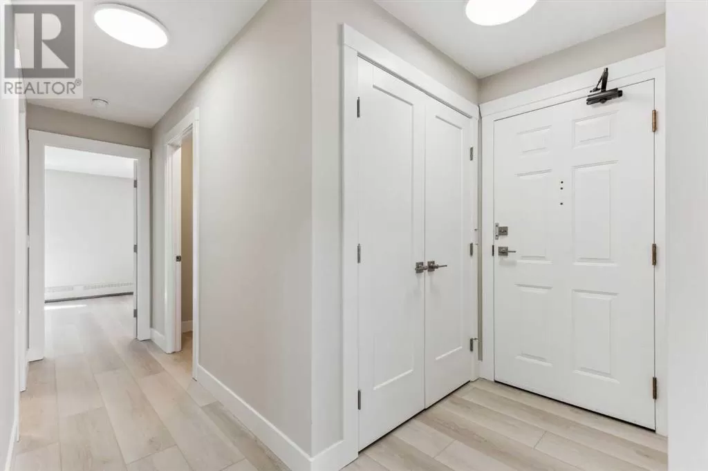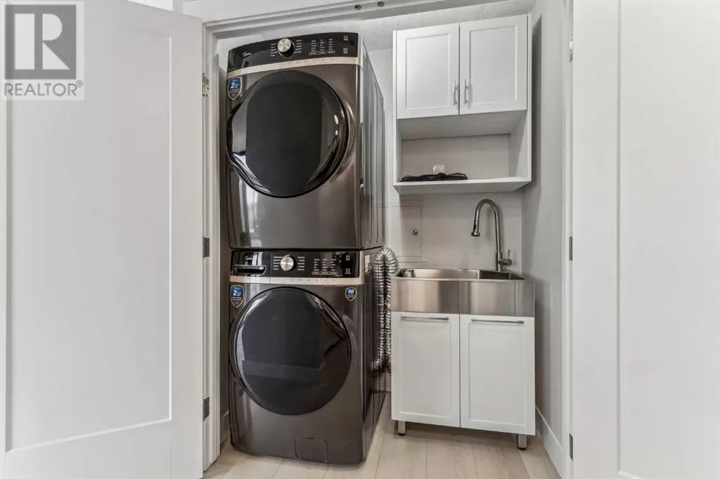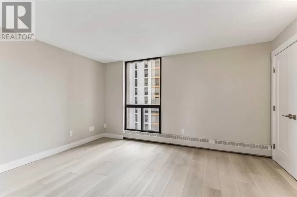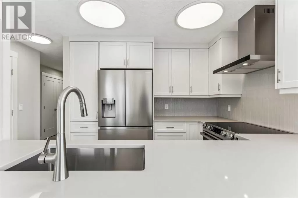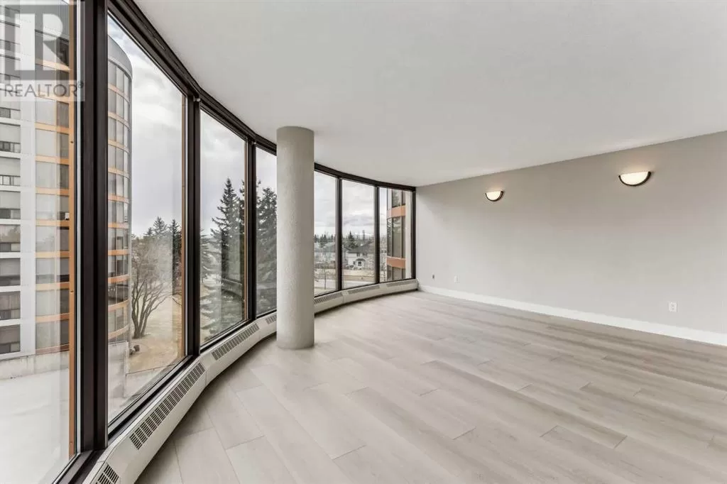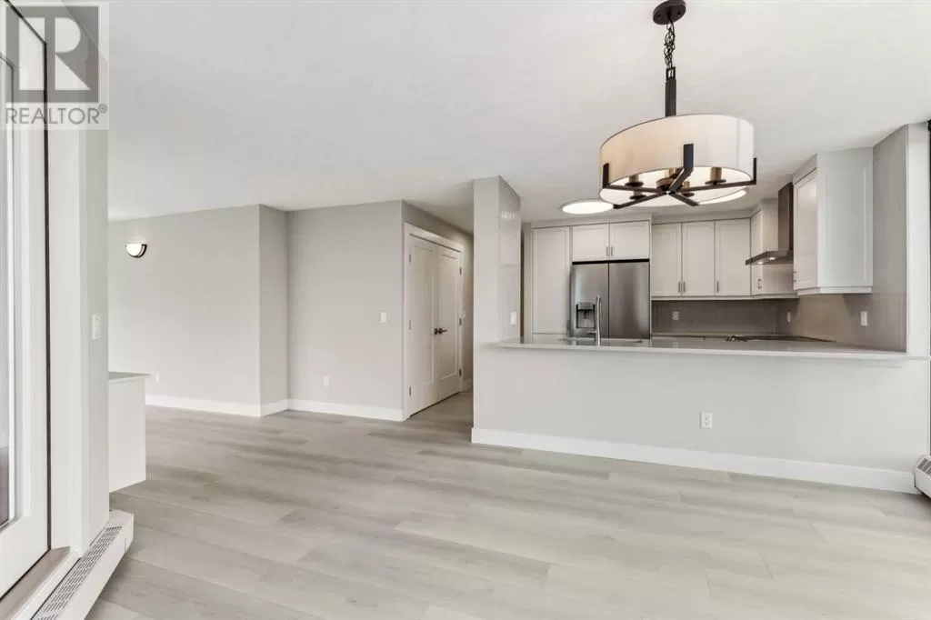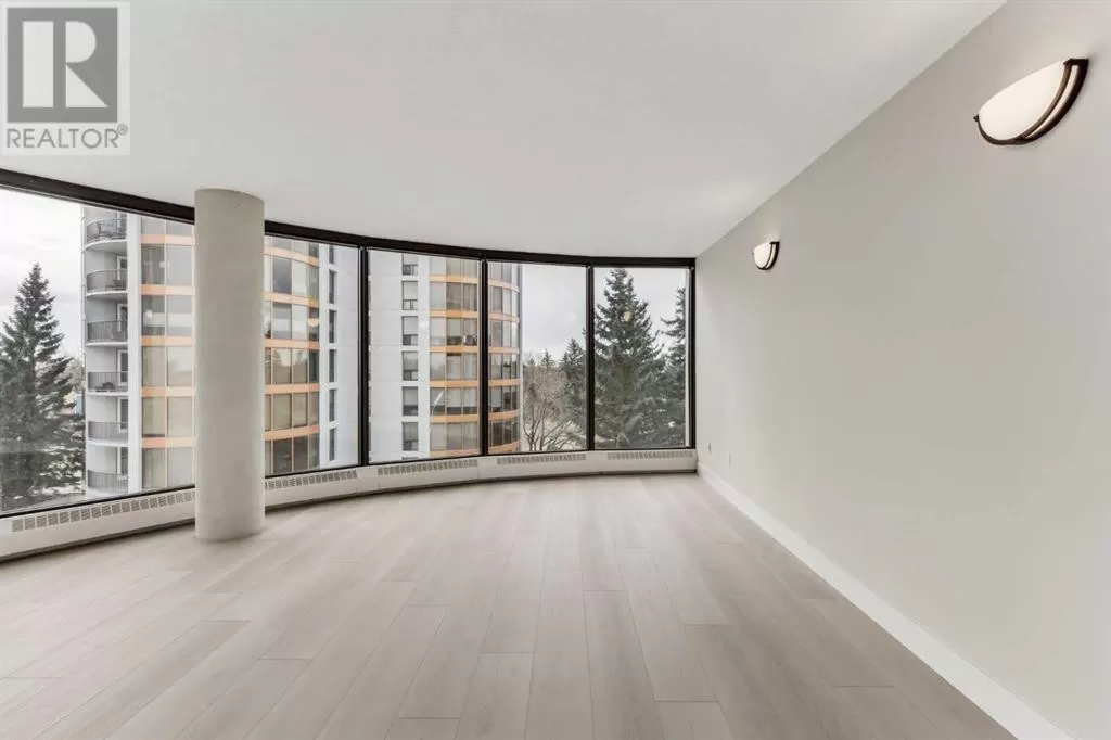 Impressive adult living 18+ COMPLETELY RENOVATED top to bottom 5th floor condo with exceptional workmanship and finishing in the exclusive Odyssey Towers of Coach Hill, with only four units per floor. Enjoy panoramic views from the floor-to-ceiling curved windows in this beautifully appointed 1178sq ft, bright and open floor plan. The condo features a CUSTOM KITCHEN, two bedrooms, an updated bathroom with a walk-in shower, in-suite laundry with a sink, a large in-suite storage room, and a generous-sized balcony. Renovations include a custom kitchen, vanities with quartz throughout, a complete stainless steel appliance package, air conditioning, a stunning feature wall with a built-in electric fireplace, new flooring throughout (luxury vinyl plank, and carpet), a new laundry sink, a wall-to-wall walk-in shower, knockdown textured ceilings throughout, upgraded plumbing and electrical, and much more. There are two parking stallsâone secured underground and a second convenient outdoor stall, as well as ample visitor parking. Amenities include a personalized building manager, a guest suite in each building for overnight guests, a sauna/steam room, a resident's club, beautifully manicured green spaces and gardens, and a very well-managed and maintained complex. Enjoy maintenance-free living in one of Calgary's premier adult living communities! Conveniently located within minutes to the bus stop/direct line to West Side LRT Station, Ambrose University, Rundle College, West Side Rec Center, parks, pathways, restaurants, and less than fifteen minutes to downtown. Quick possession and move-in ready! (id:27476)