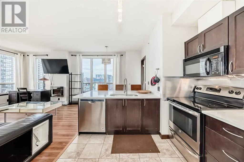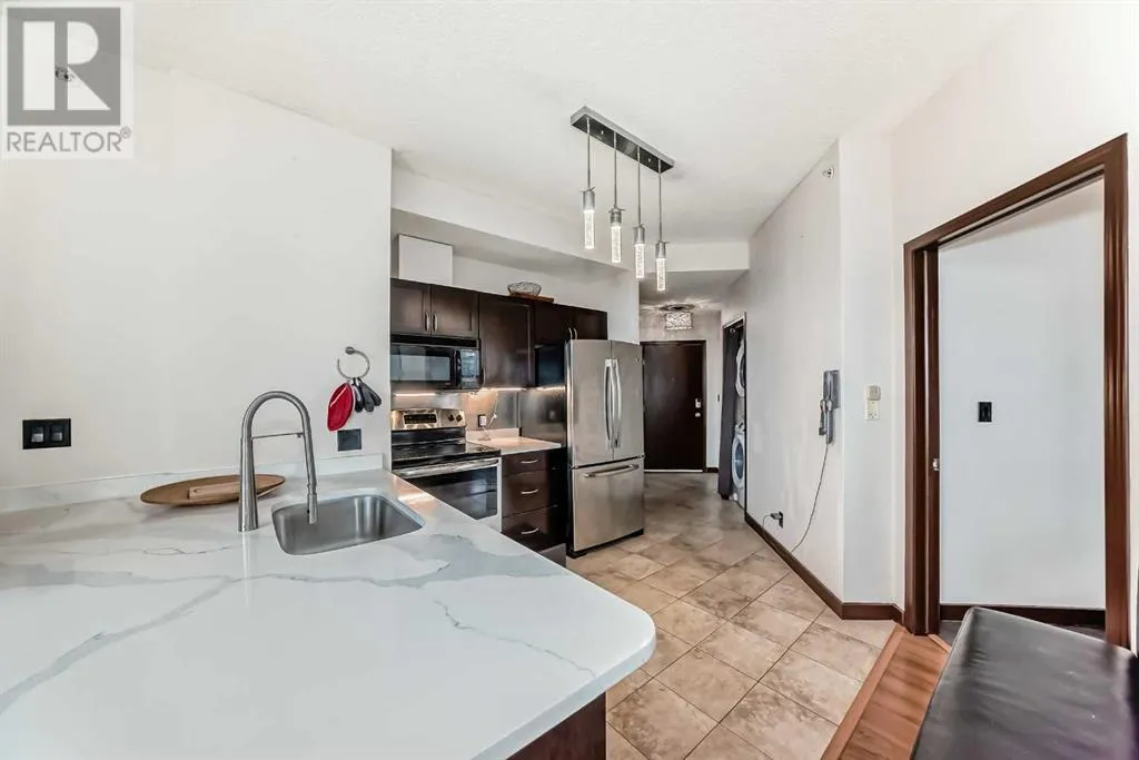 Best Priced CORNER UNIT in the Building â Fully Furnished & Move-In Ready!Welcome to Vantage Pointe â urban living at its finest! This stunning corner unit offers unbeatable value, a functional layout, and beautiful southwest views of the city skyline and mountains. Enjoy the scenery from your large private balcony, perfect for relaxing or entertaining.This 2-bedroom, 2-bathroom unit has been tastefully upgraded with:â¢Brand new luxury plank vinyl flooringâ¢Upgraded granite countertops in the kitchen & bathroomsâ¢Modern designer lighting throughoutâ¢All appliances replaced within the last 2 yearsWith 9-foot ceilings, designer paint, and RMS measurements of 801.5 Sq.Ft. (Registered Condo Plan: 816 Sq.Ft.), the space feels open and stylish.Bonus: This unit comes fully furnishedâjust bring your suitcase! Everything you see is included: TV, Dyson, bidet, all furniture, and more (full list available upon request).Conveniently located just steps from Midtown Market Co-op, a liquor store, restaurants, and transit. Building amenities include a fitness room, steam room, on-site security, and heated underground titled parking stall (#119).Whether youâre a first-time buyer, investor, or looking for a turnkey downtown lifestyleâthis is one of the best âVantage Pointesâ in the city! (id:27476)
