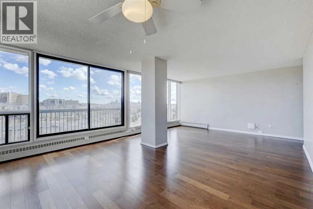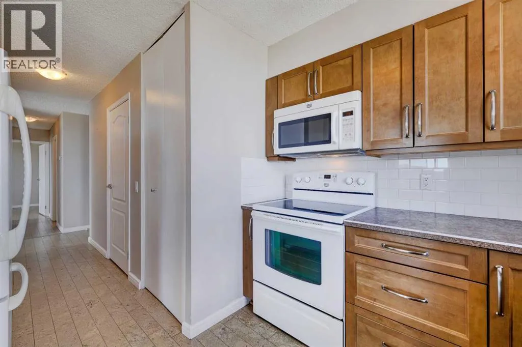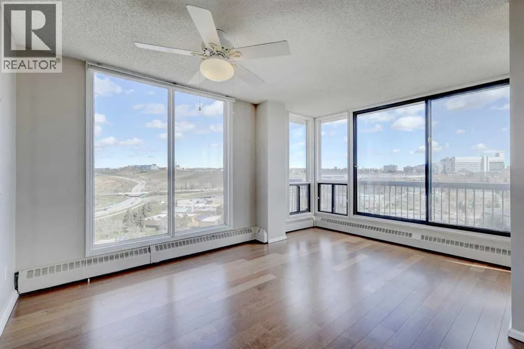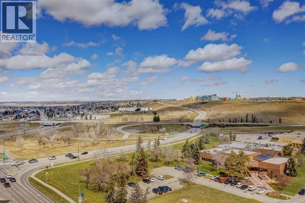 HOME SWEET HOME! Indulge in maintenance free ADULT CONDO LIVING in this updated 15th floor unit situated in the sought-after NW community of Point McKay. This desirable, quiet building offers an exquisite unit with 2 bedrooms, 1.5 bathrooms and 1,012 SQFT of beautifully maintained living space with BREATHTAKING PANORAMIC VIEWS of Downtown Calgary, the Skyline and valley views. Heading inside you will fall in love with the spacious, open concept floor plan with wall to wall windows to bask in your pristine views throughout the condo. Features include a massive living room that is flooded in natural sunlight, formal dining area perfect for hosting guests, a spacious foyer and the chefâs kitchen fully equipped with white appliances, ample cabinet and counter space and a pantry. Also featured in the unit is a generous sized bedroom, full 3 piece bathroom and the massive, master retreat with a walk-in closet and large 2 piece ensuite bathroom. Updates include new cork flooring and upgrades in the kitchen. Completing the unit is a balcony to have a coffee while enjoying your dream views, in-suite laundry, an underground parking stall and assigned storage locker perfect for all your needs. The popular Riverside Towers includes exclusive amenities such as a media room, library, 24/7 concierge, onsite security, car wash, visitor parking, preferred pricing option with the Riverside Club and Spa. This location is perfect for home buyers, investors and downsizers looking to be steps from the tranquil Bow River and its numerous pathways and close to Foothills Hospital, Childrenâs Hospital, University of Calgary, University District and quick escape to Highway 1 and the mountains. Donât miss out on this opportunity, book your private viewing today! PLEASE NOTE THAT WE ARE IN THE PROCESS OF UPDATING THE FLOORING IN THE UNIT. (id:27476)