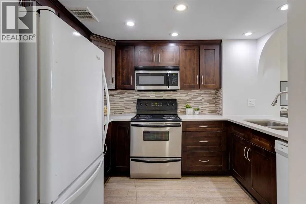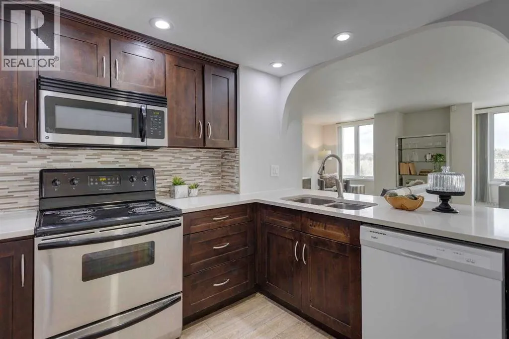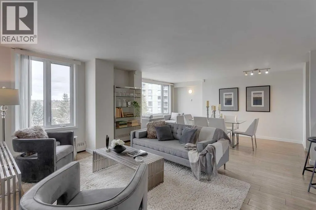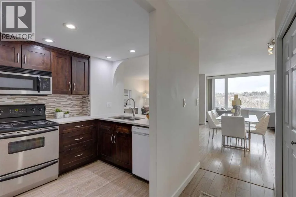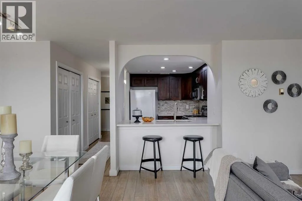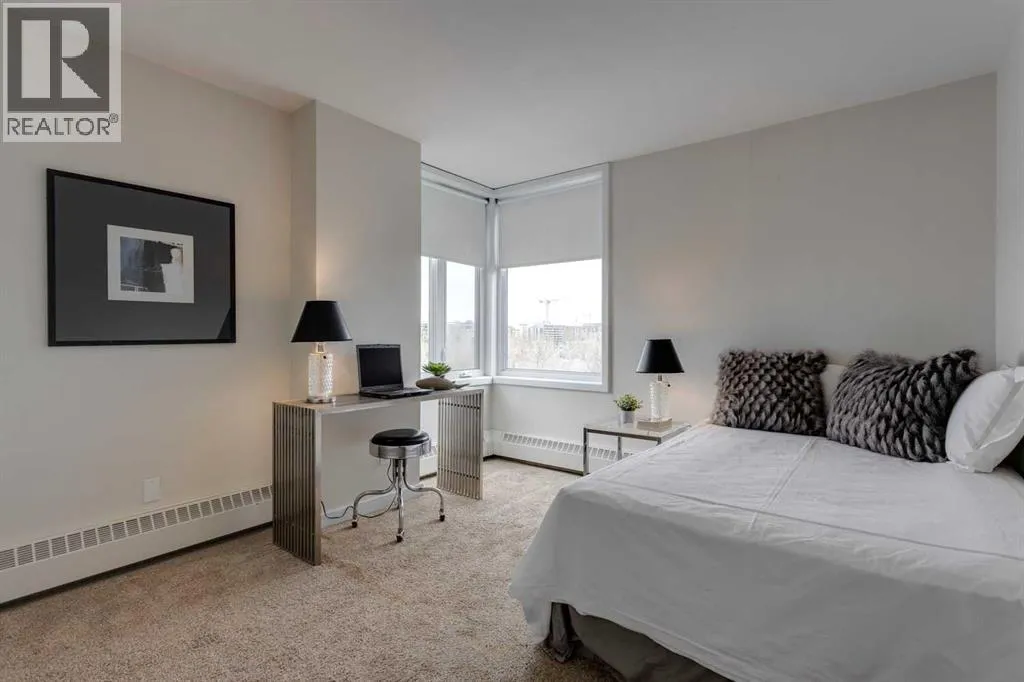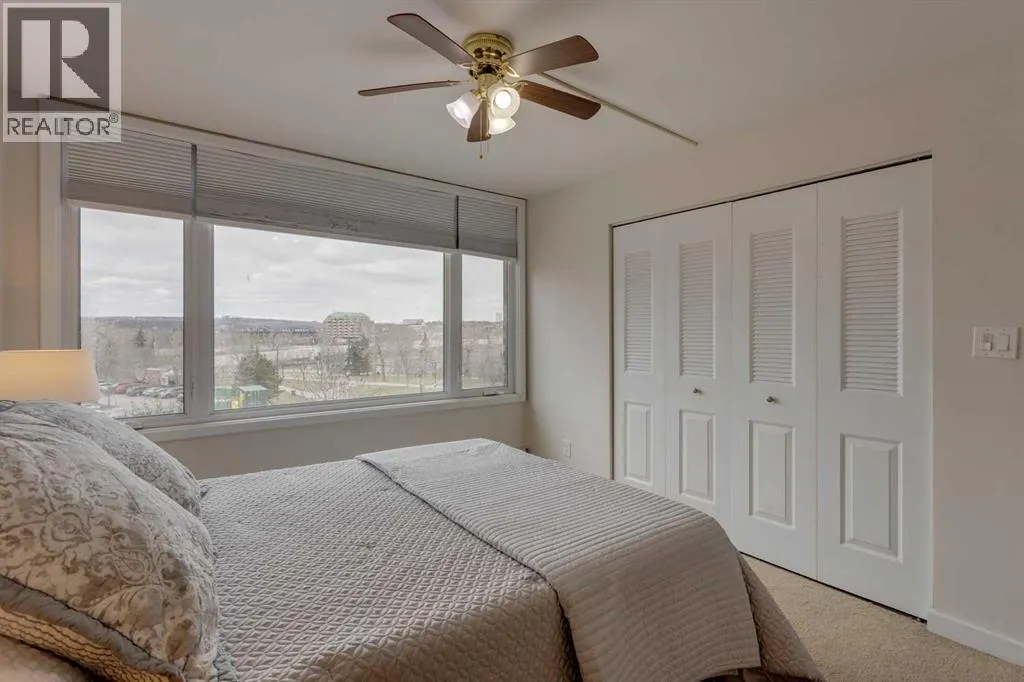 Located along the 8th Street Revitalization Project, Sonoma Place is a secure, well managed gem of a building offering prime walkability, large suites, a fitness facility, rooftop patio and 2 elevators. This 2 bedroom, 2 bathroom corner unit offers great views, open floorplan, with plenty of storage and in-suite laundry. The primary bedroom has its own full ensuite. There is another full bathroom, for the 2nd bedroom. They donât build them like this anymore. Sonoma Place is a concrete building with spacious layouts. This unit allows you to have a sizable dining area, comfortable living room and a sitting area, with river views, perfect for a home office setup. Skip over the 10th Street bridge to Kensington for some shopping and a nice meal. Stroll around the corner to Alforno Bakery. Hop on a bike and cruise the Bow River Pathway. This location is an urban dream at an affordable price. (id:27476)