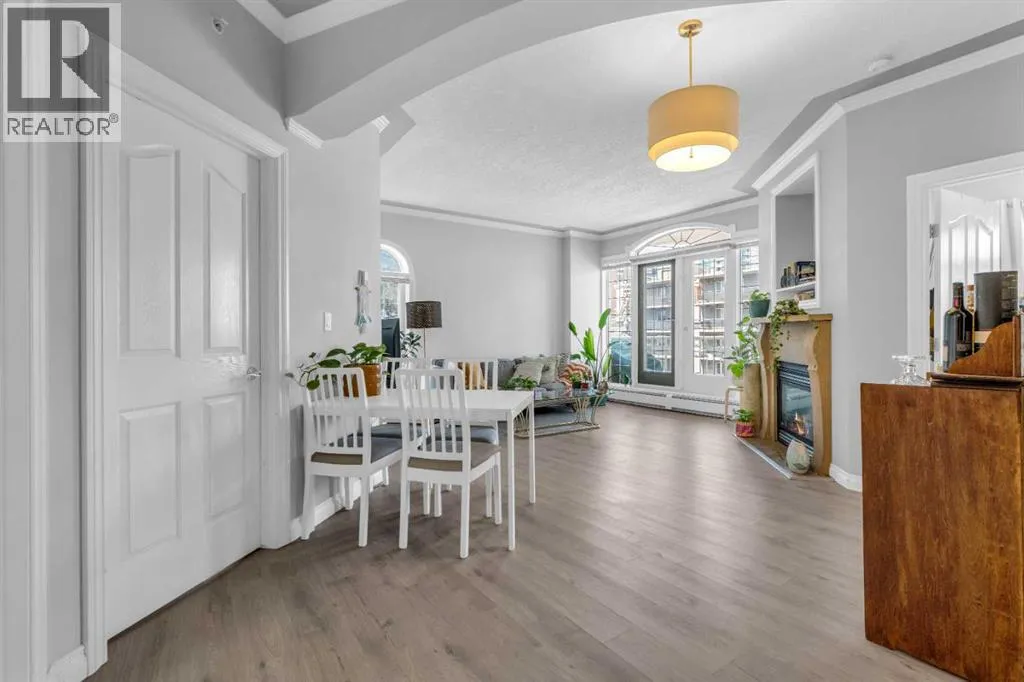 Step inside this stunning corner suite in the iconic Monaco building in Calgary's trendy Beltline district, where timeless Mediterranean-inspired architecture meets modern urban living. Designed with meticulous attention to detail, this residence features arched walls, sculpted ceilings, and grand crown moulding, creating a sense of sophistication and style throughout. Expansive arched windows invite natural light to pour into the open living space, highlighting the impressive 9 ft ceilings and enhancing the feeling of spaciousness. The architectural allure continues with French doors leading to a massive private balcony that spans the entire corner of the unit â perfect for outdoor entertaining or enjoying city views. Inside, the kitchen exudes elegance with maple cabinetry, centre island, stainless steel appliances, seamlessly connecting to the main living area, complete with a gas fireplace with a modern niche for storage. The primary suite is a serene retreat, featuring a luxurious Jacuzzi tub and custom finishes, while the second bedroom offers ample space and versatility. Building amenities include a rooftop sun deck, bike room storage, and visitor parking, all within the security of solid concrete construction. Located in the heart of the Beltline district, youâre steps away from the Bow River pathways, Sunalta and Kirby LRT stations, a few blocks to Bow River pathways17th Avenueâs eclectic shops and cafes, and the downtown core â all wrapped in architectural charm and sophisticated design. (id:27476)