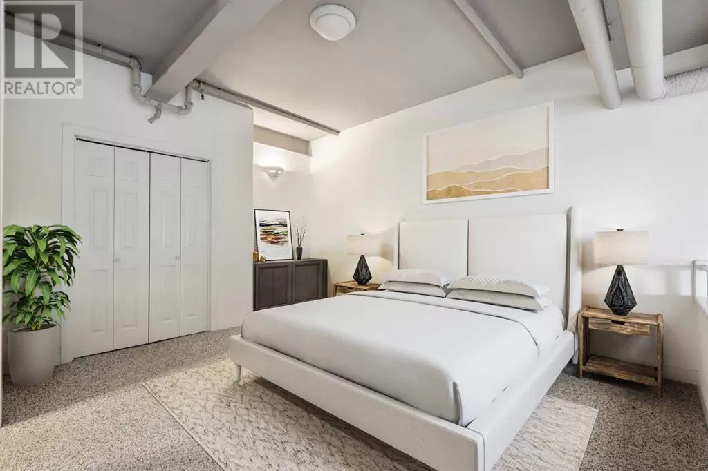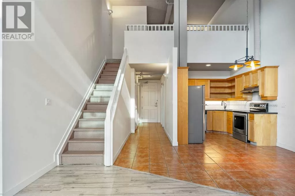 Step into this expansive Imperial Loft, where striking 19-foot concrete ceilings and a lofted primary suite with ensuite create an airy, open atmosphere perfect for contemporary living. Thoughtfully designed with a separate den, convenient half-bath, and in-suite laundry, this home blends style with everyday functionality.A dramatic wall of south-facing windows floods the main living area with natural light, highlighting the industrial-chic touches like exposed ductwork and wide-plank flooring. The efficient kitchen is appointed with warm maple cabinetry, while the freestanding gas fireplace adds a cozy focal pointâideal for Calgaryâs colder months.Upstairs, the spacious lofted bedroom offers a private retreat with a skylight and full ensuite bathroom. The main level den provides the perfect space for a home office or guest room.Enjoy exceptional building amenities including a fitness centre, party room with billiards and ping pong, and a shared rooftop patio with BBQsâperfect for entertaining. Underground heated parking and a secure storage locker add extra convenience.Unbeatable location just steps from Sunterra Market, the Downtown Core, and vibrant 17th Avenue. With solid bones and room to personalize, this loft is your chance to create the ultimate urban sanctuary.Book your private showing today and envision the lifestyle that awaits! (id:27476)
