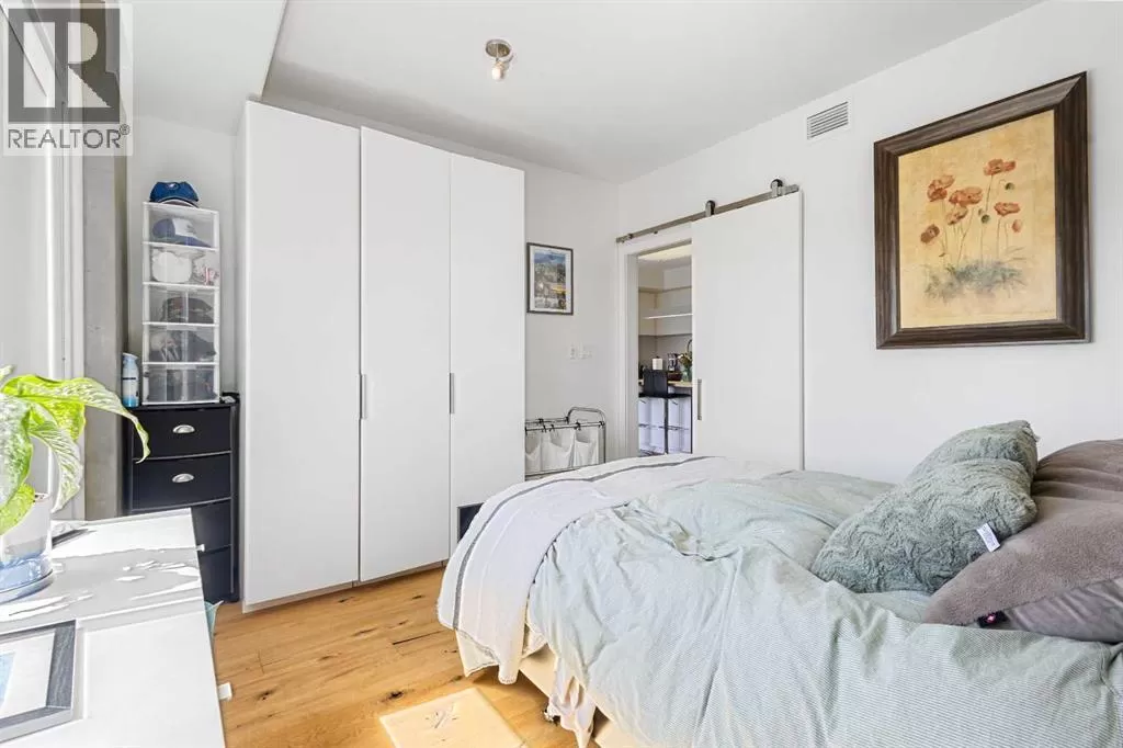 Welcome to the sought-after Sobow building, where modern urban lifestyle meets unbeatable downtown convenience. This beautifully maintained 1-bedroom plus spacious den unit offers exceptional comfort, functionality, and style.Step inside to find an upgraded kitchen featuring high-end finishes and appliances, complemented by stunning hardwood flooring that flows throughout the living space. Enjoy the privacy of a well-designed layout with serene views from both the living room and bedroom.Located just minutes from downtown Calgary, this home provides easy access to public transit, premier shopping, dining, and river pathways. With underground parking included, this is urban living at its finest. Building amenities include day-time concierge, well-equipped gym, ownersâ lounge with a billiards table, and a theater room.Don't miss your opportunity to live in one of Calgary's most desirable inner-city communities â book your private showing today! (id:27476)