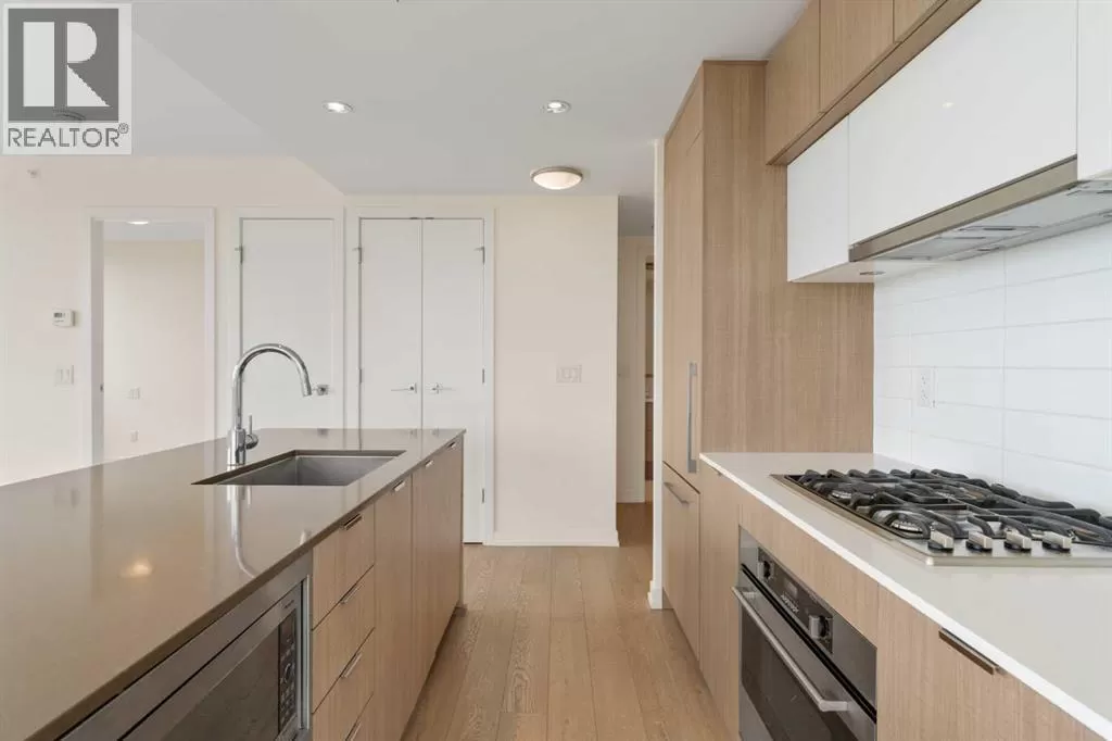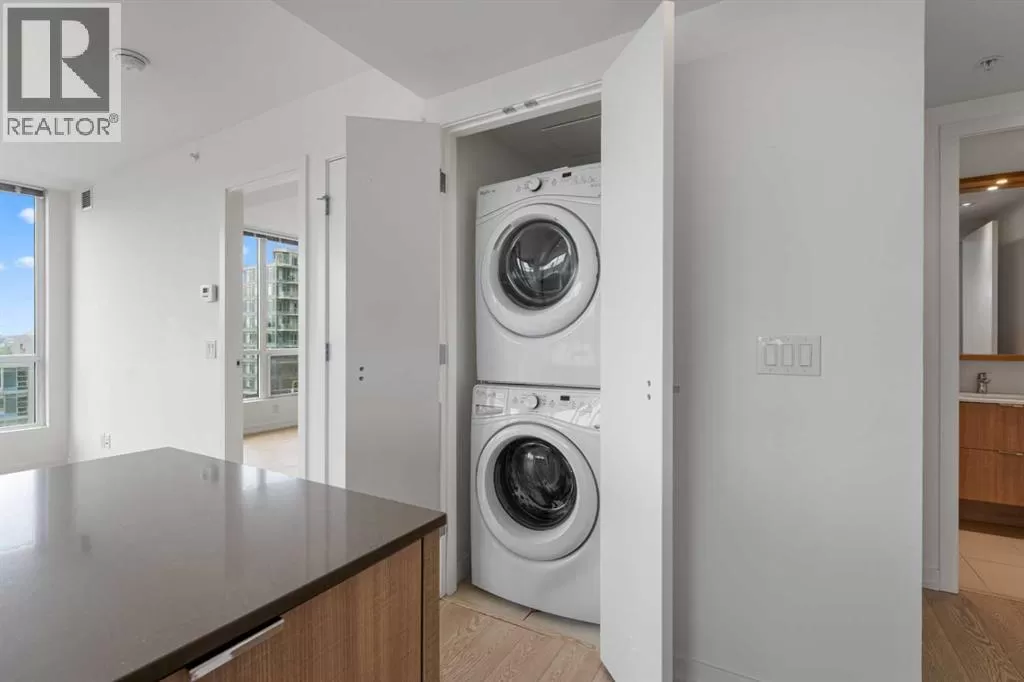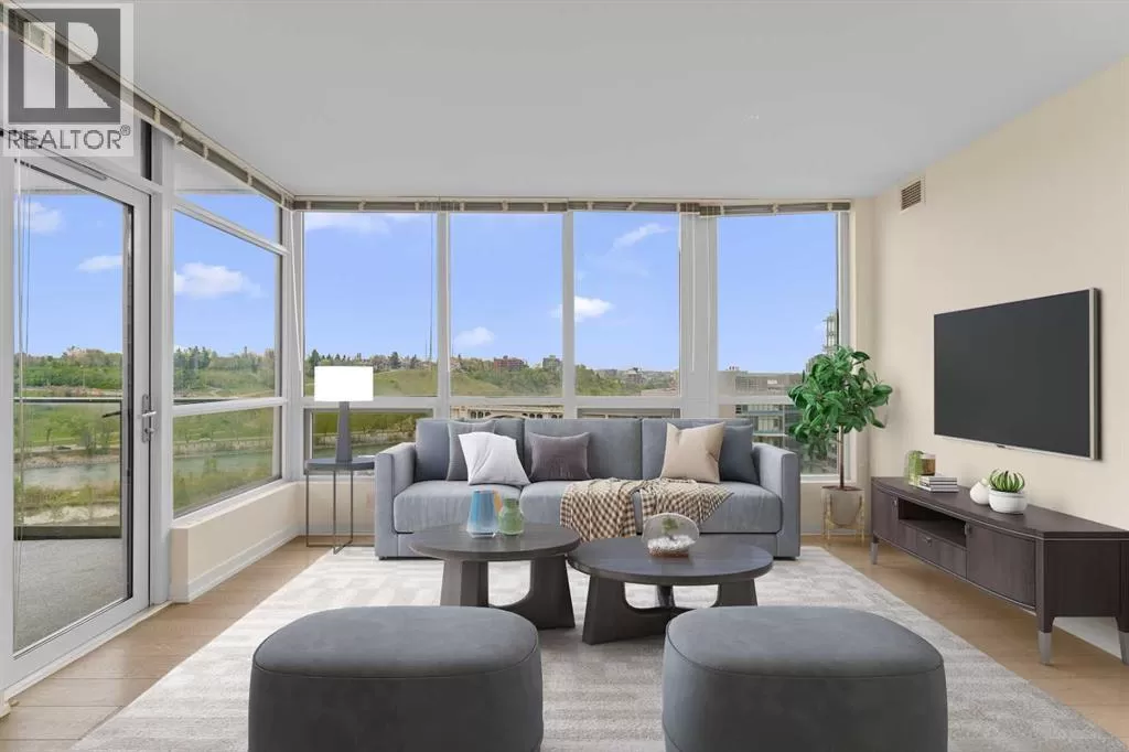 Experience elevated urban living in this stunning 2-bedroom, 2-bathroom corner unit on the 11th floor of the prestigious Outlook at Waterfront. Offering breathtaking, unobstructed views of the Bow River through expansive floor-to-ceiling windows, this is where luxury meets convenience in Calgaryâs vibrant riverside community. The sleek, modern kitchen is a chefâs dreamâfeaturing stone countertops, a gas cooktop, integrated appliances, pantry for extra storage, and elegant recessed lighting. Wide-plank laminate flooring and ceramic tile add warmth and sophistication throughout the open-concept layout. Both bedrooms offer generous closet space and privacy, ideally positioned on opposite sides of the suite. The primary bedroom is complete with a stylish 3-piece ensuite. An additional 4-piece bathroom and in-suite laundry complete the space. Enjoy the breathtaking, unobstructed views of the Bow River from your living and dining room, or step out onto your North-facing balcony and take in and the majestic mountain views stretching to the west. Other features include central A/C, ensuring year-round comfort. This home also includes TWO SIDE-BY-SIDE ASSIGNED PARKING STALLS and 1 SECURED STORAGE LOCKER (4âx6â) located CLOSE TO THE ELEVATOR. As a resident of Outlook at Waterfront, you'll have access to upscale amenities including a fully equipped fitness centre, yoga studio, hot tub and sauna, theatre room, party/rec room, guest suite, car wash bay, secure visitor parking, and an on-site concierge in the main building. Step outside to the Bow River pathways or Princeâs Island Park, just moments away. Walk to work, trendy restaurants, cozy cafés, and pubs. With nearby LRT stations and major transit routes, every corner of the city is within easy reach. This is more than a homeâitâs a lifestyle. Book your private showing today and discover the best of riverfront living. (id:27476)