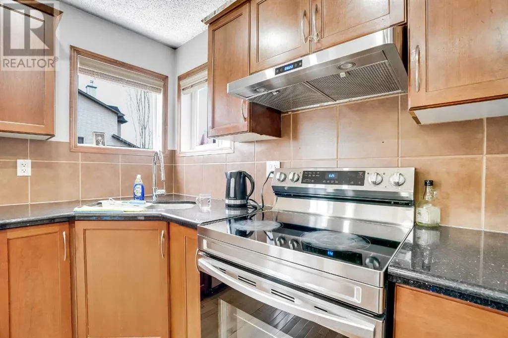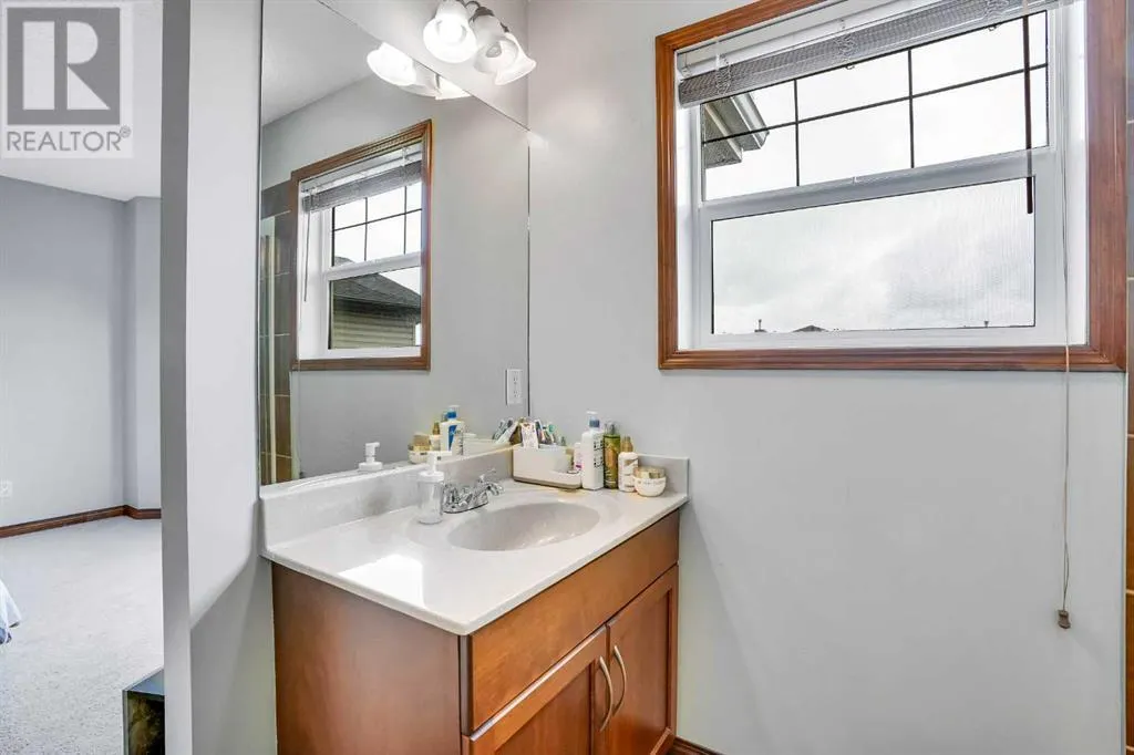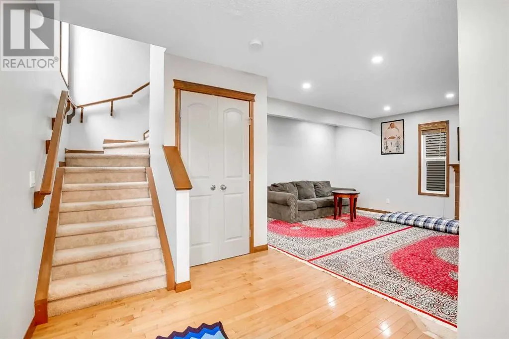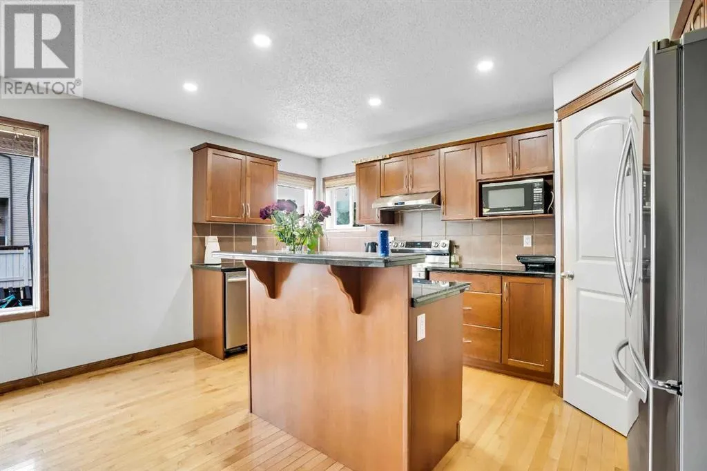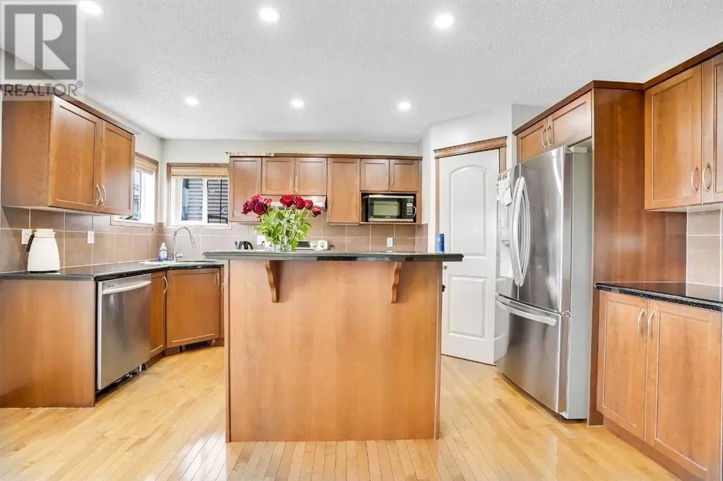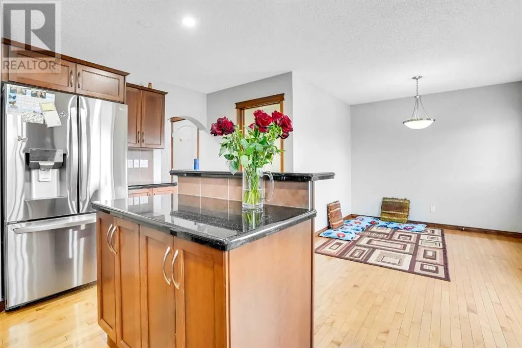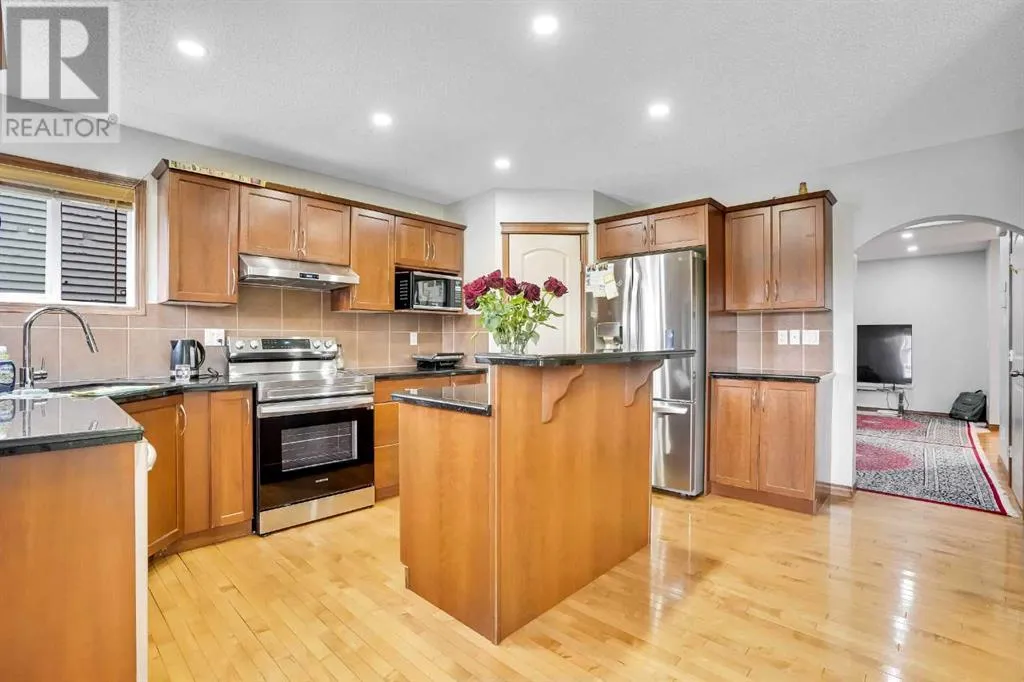 Welcome to this beautifully maintained two-storey detached home with an ATTACHED DOUBLE GARAGEStep inside to discover an open-concept main floor featuring gleaming HARDWOOD floors, a spacious and inviting family room with a cozy gas fireplace, a bright breakfast nook, and a stylish kitchen equipped with GRANITE countertops and STAINLESS STEEL APPLIANCES.Upstairs, youâll find a generous primary bedroom complete with a 4-PIECE ENSUITE that includes a JETTED TUB and a large WALK-IN CLOSET. The upper level also offers two additional well-sized bedrooms and a 4-piece main bathroom.The illegally suited basement has a SEPARATE SIDE ENTRANCE and has with egress windows. It features a MODERN kitchen with granite countertops and backsplash, a full bathroom, one bedroom, and its OWN LAUNDRY facilities.Exterior highlights include durable stucco siding, a private backyard with a FULLY FENCED and landscaped yard, and a BACK PATIO perfect for outdoor enjoyment.Located close to schools, parks, grocery stores, the Genesis Centre (with library and YMCA), as well as convenient access to Stoney Trail, Calgary International Airport, bus stops, and the train station. A wonderful place to call home in a highly accessible community! (id:27476)
