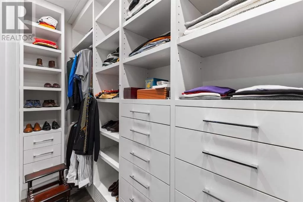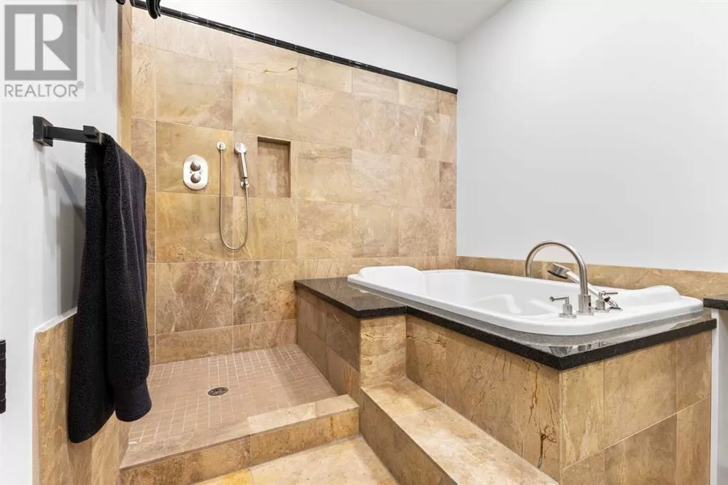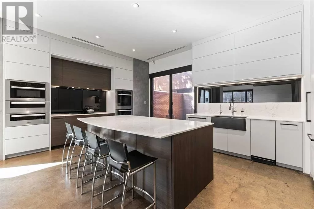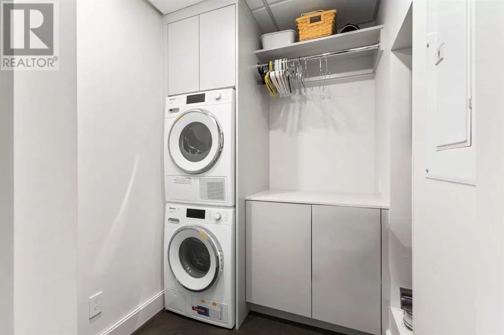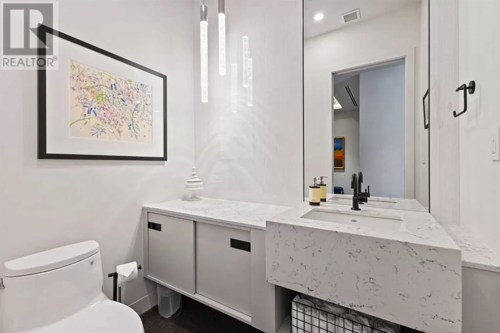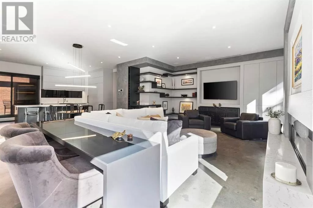 This meticulously renovated residence by Stephanie Martin Interior Design presents an unparalleled balance of contemporary elegance, and curated living. 10ft. ceilings create an immediate sense of grandeur, complementing the high design where every detail maximizes functionality, including integrated storage solutions for a streamlined aesthetic. The inviting living area, featuring a fireplace with painted glass surround, a custom-built sectional, including a bespoke desk for optimized remote workâseamlessly blends high design with productivity. The dining space is anchored by a suspended lighting fixture, large kitchen island, and a premier appliance package for a true chef's experience. This thoughtfully executed one-bedroom layout includes a custom walk-in closet for superior organization. The European spa-inspired ensuite bathroom offers a luxurious escape, featuring an Ultra bath air tub and an open-style shower. A well appointed powder room, and laundry room complete your home. Beyond the refined interiors, this main-floor unit home has two private patios, extending the living space and offering an immersive urban experience. Located within the prestigious 500 Eau Claire Estates, it provides a unique balance of tranquility and accessibility, discreetly positioned in a secluded section of the building. The details of the renovation are precisely implemented, and must be experienced to appreciate this level of exemplar design. (id:27476)