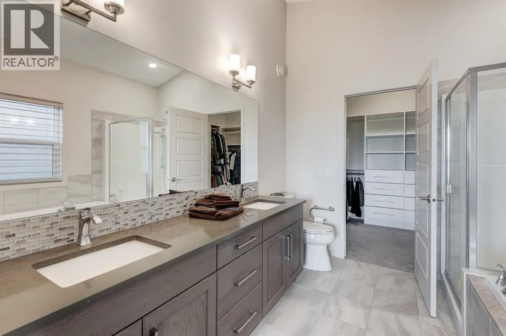 Welcome to this rare to find bungalow in legacy, backing onto a peaceful green space on a quiet cul-de-sac! Boasting over 2600sqft of fully finished living space across both levels, this upgraded 2 bedroom, 3 bathroom home could easily have a 3rd or 4th bedroom added to the spacious lower level. Step inside to bright airy living spaces enhanced by soaring vaulted ceilings, gorgeous hardwood floors and large south facing windows that flood the home with natural light creating an inviting atmosphere throughout. The gourmet kitchen is a chef dream, featuring ample cabinetry, a wall pantry, deep pot drawers and a premium Electrolux appliance package including a built-in wall oven, microwave and gas cooktop. A stunning tile backsplash pairs beautifully with sleek quartz countertops making this kitchen as functional as it is stylish, perfect for both everyday dinning and hosting dinner parties. The enormous Master Suite also showcases vaulted ceilings, large south facing windows overlooking the backyard, a luxurious 5pc en-suite, dual quartz vanity, soaker tub and a walk in closet with built inâs. Rounding off this level is the spacious foyer for welcoming guests, dinning room, living room with an oversized gas fireplace, a half bath and main floor laundry. The fully finished lower level has 9ft ceilings and offers even more living space with the addition of a massive recreation room to design as you see fit, which could accommodate more bedrooms. Down here You will find the secondary bedroom (which is huge) a 4pc bathroom and a flex room (would make a great office, bedroom or work out space) There is a ton of storage spaces throughout, including extra closets on main as well as a huge storage/laundry room. Another highlight of the home is the green space it backs onto, whether you are inside or out, this peaceful backdrop adds to the charm and appeal of the property. This home also boasts hassle free low maintenance landscaping! Overall you will find a perfect blend of comfort and modern living! Walking distance to a brand new k-9 Catholic School opening for the 2025-2026 school year plus easy access to many close by amenities, shops of Legacy, parks, playgrounds and more! (id:27476)