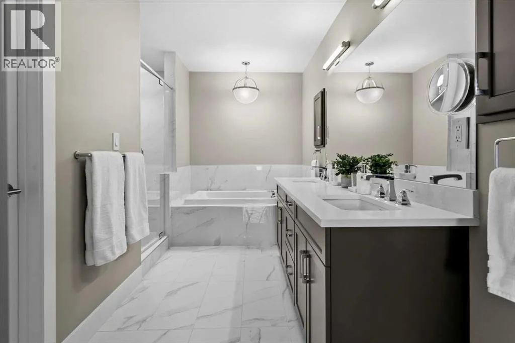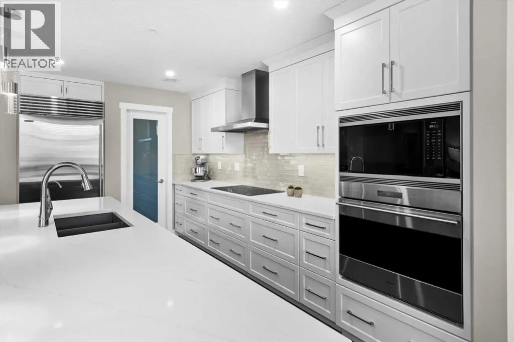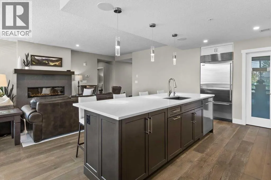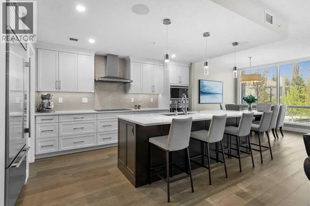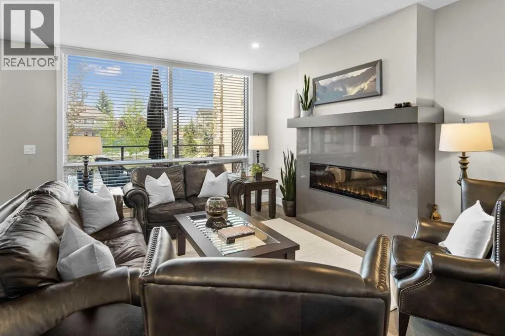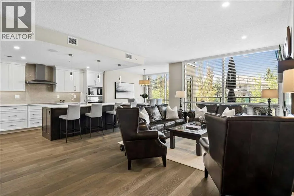 Welcome to Unit 313 at The Views, a coveted residence in one of Calgaryâs premier concrete and steel buildings, located in the cityâs prestigious west side. Thoughtfully designed and beautifully appointed, this elegant home is ideal for down sizers seeking a refined lock and leave lifestyle. The open concept layout creates a sense of space and sophistication while the South facing floor to ceiling windows bathe the space in natural light. The chef-inspired kitchen flows seamlessly into the bright and inviting living area, with focal fireplace and custom quartz surround. The large balcony, complete with BBQ gas line, extends the living space outdoors and offers the perfect spot to relax and enjoy the sunshine. The home features two generously sized bedrooms, a versatile den, two full bathrooms, and a spacious laundry room, all complemented by exceptional storage options throughout. Over $100,000 in thoughtful upgrades enhance this residence, from wide plank hardwood flooring and upgraded kitchen cabinetry with added drawers, to quartz countertops and luxurious quartz fireplace surround. The kitchen is equipped with premium appliances, including a Wolf induction cooktop and a Sub-Zero refrigerator, and is anchored by a large island with an eating bar thatâs perfect for entertaining. The walk-in pantry has been customized with MDF shelving, offering both style and practicality. The primary suite is designed for comfort and space, easily accommodating larger furniture and featuring a custom walk-in closet along with a five-piece ensuite that includes a soaker tub and oversized glass shower. A second bedroom also includes a walk-in closet, while the den provides a quiet retreat for work, reading or hobbies. Beyond the private comforts of the home, The Views offers an unmatched lifestyle with a variety of upscale amenities. Residents enjoy access to a fully equipped fitness center with infrared sauna, a golf simulator, and an elegant ownersâ lounge with a full kitch en and each floor includes beautifully styled resident conversation areas. A heated driveway and parkade, along with indoor bicycle storage and secure lockers, ensure convenience throughout the year. The outdoor terrace is a true extension of your living space, offering BBQ's, a fireplace, and lounge seating with direct access to Calgaryâs scenic pathways. The Views is known for its exceptional management and meticulous upkeep. Comprehensive condo fees cover heat, water, sewer, central air, exterior maintenance, landscaping, snow removal, and reserve fund contributions. Each unit features individually controlled heating and cooling for personalized year-round comfort. This is more than just a homeâitâs a true "lock and leave" lifestyle defined by luxury, convenience, and community. (id:27476)