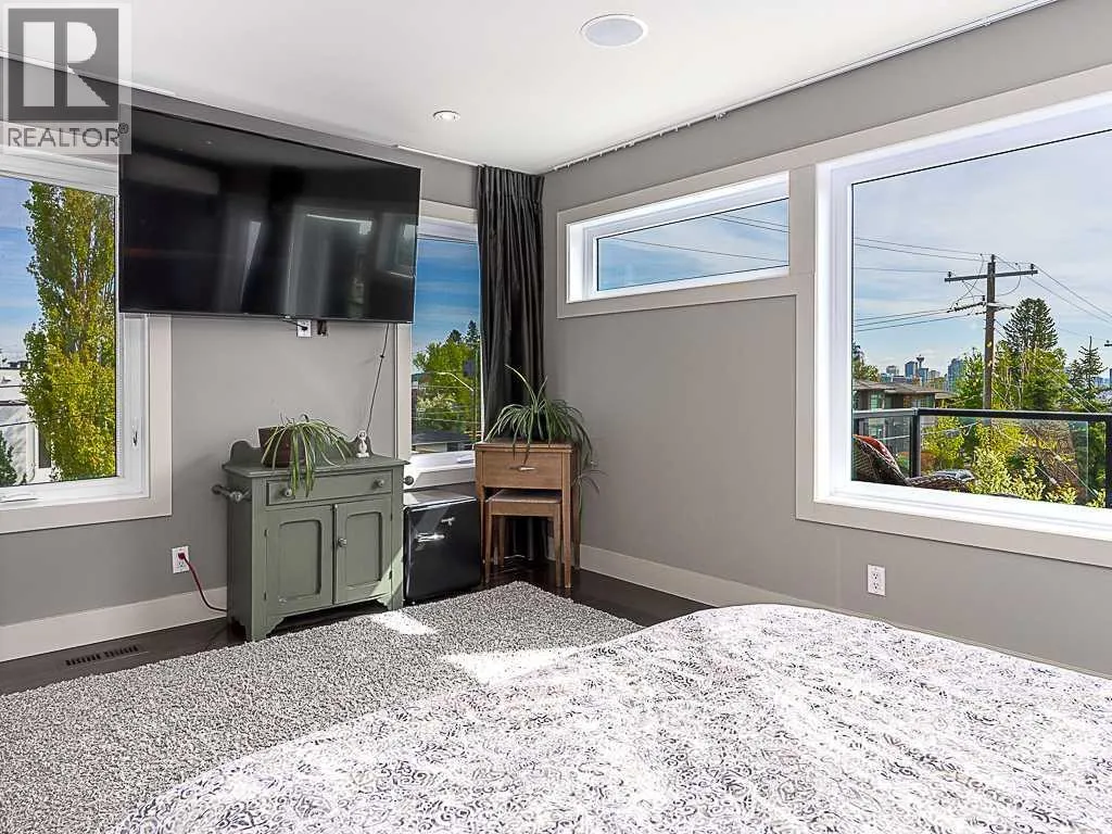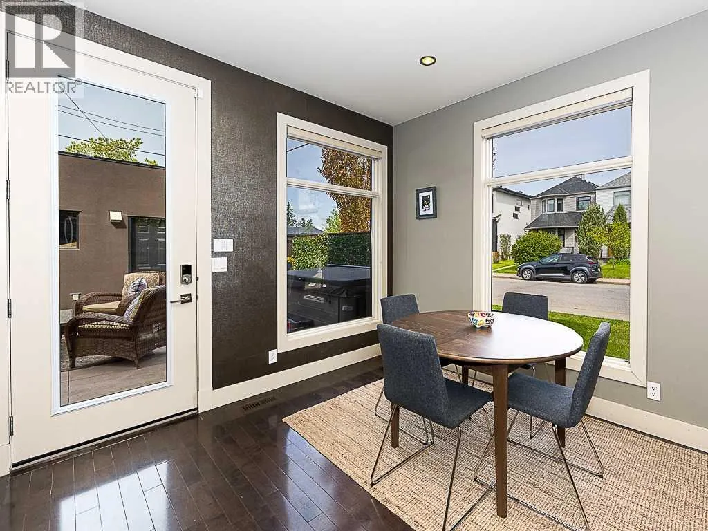 Open House! Friday Oct. 3. Welcome to this exceptional four-bedroom, three-and-a-half bathroom home, perfectly positioned on a sunny corner lot in the vibrant inner-city community of Richmond. Offering over 2500 square feet of developed space spanning three levels and a finished basement. This custom-built residence blends contemporary design, energy-efficient construction, and elevated comfort in every detail. Constructed with ICF (Insulated Concrete Form) walls, the home offers superior insulation, soundproofing, and long-term durability. Step inside to discover an open-concept main floor flooded with natural light. Stylish and functional, it features rich hardwood floors, a striking tiled finished fireplace, built-in shelving, sleek glass accents, and a seamless layout ideal for everyday living and entertaining. The chefâs kitchen is a true showpiece, complete with upgraded stainless steel appliances, stone countertops, a peninsula island with an eat-up bar, ample pantry space, and refined finishes throughout. The main floor is completed by a two-piece powder bathroom and a cleverly tucked-away âpocket officeâ with a built-in desk, which provides an ideal spot for remote work or homework. The second floor offers two additional well-appointed bedrooms, one with split unit wall AC, a four-piece bathroom, and a spacious laundry room providing ample space for family, guests, or a home office. The third-floor primary retreat is nothing short of spectacular, offering sweeping city views from your private deck or the comfort of your bed. The spa-inspired ensuite includes a steam shower, jetted tub, double vanity, heated tile floors, and sophisticated finishes. A walk-in closet and split wall AC unit complete this luxurious sanctuary. The fully developed basement adds versatility with in-floor heating, a large bedroom, a four-piece bathroom, and flexible living space ideal for a media room, home gym, or bonus living area, plus ample storage. Outside, the low-maintenance, fully fenced yard is perfect for entertaining or relaxing, with multiple gas hookups for a barbecue or fire features. The detached double garage is EV-ready and equipped with 220V power and smart outlets for charging. All of this is located just steps from dog parks, local cafes, shops, and more. This is your opportunity to experience inner-city luxury in a truly turnkey home that combines thoughtful design, modern convenience, and timeless appeal. (id:27476)