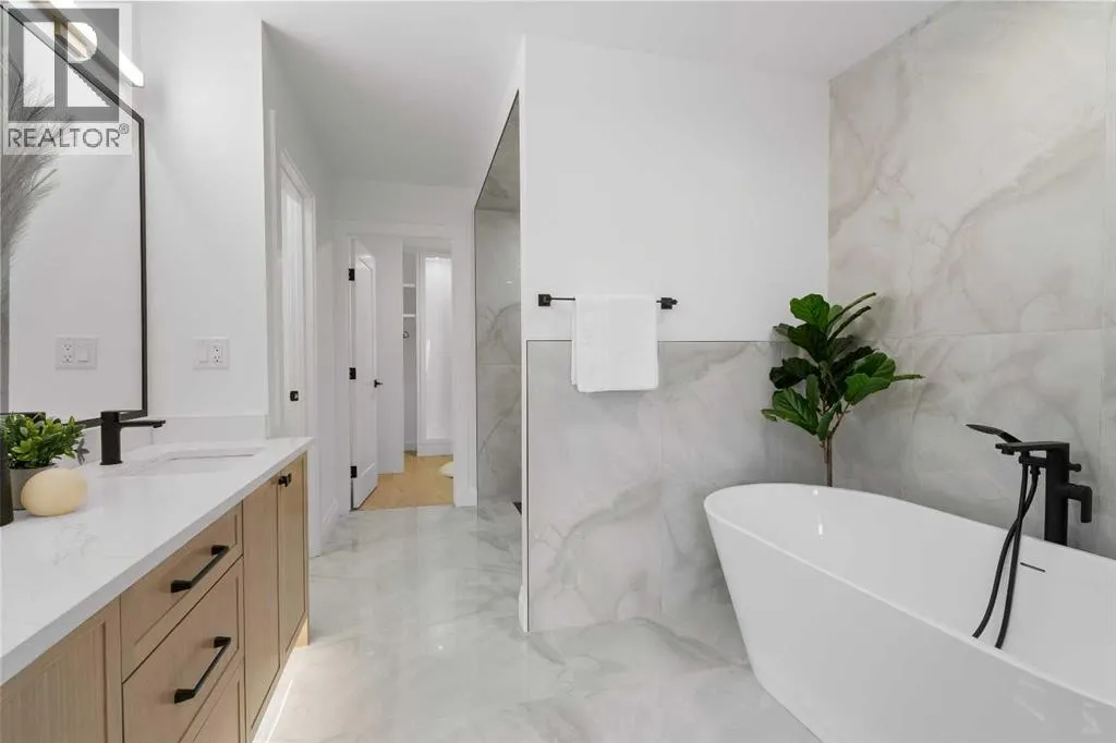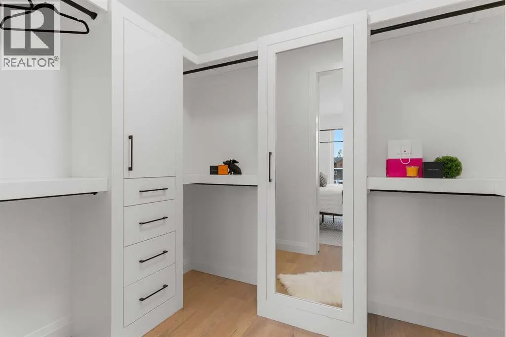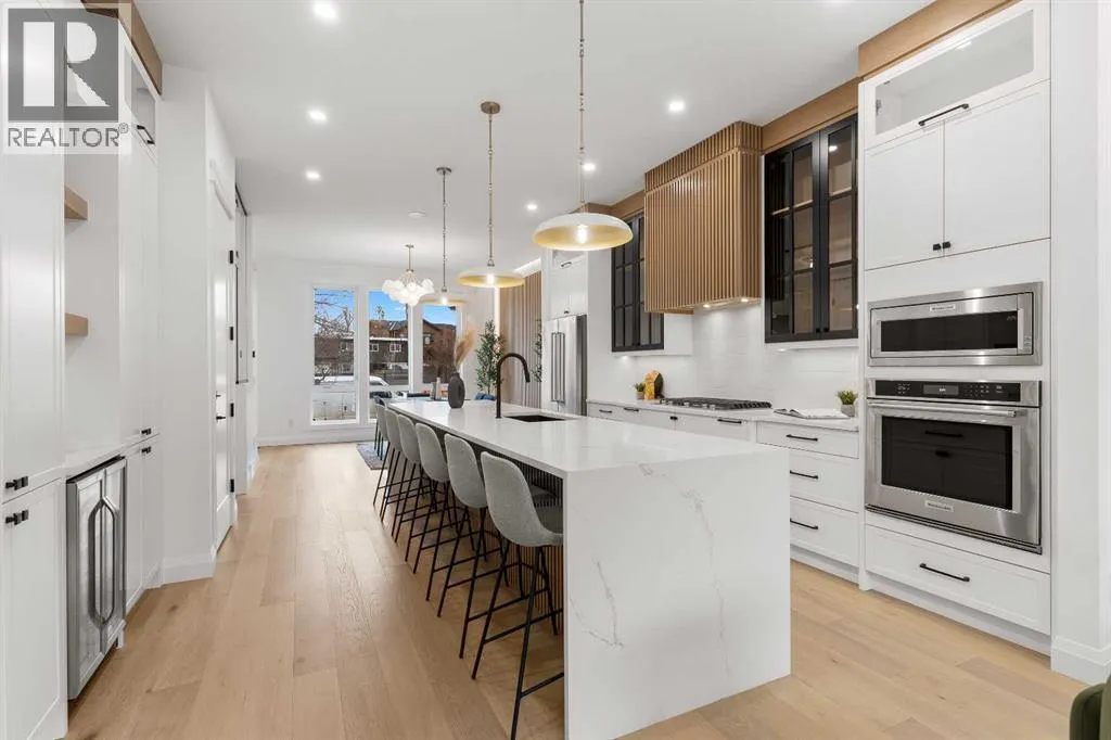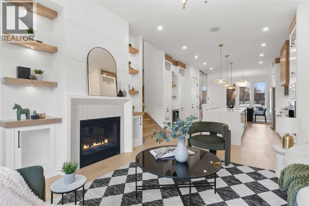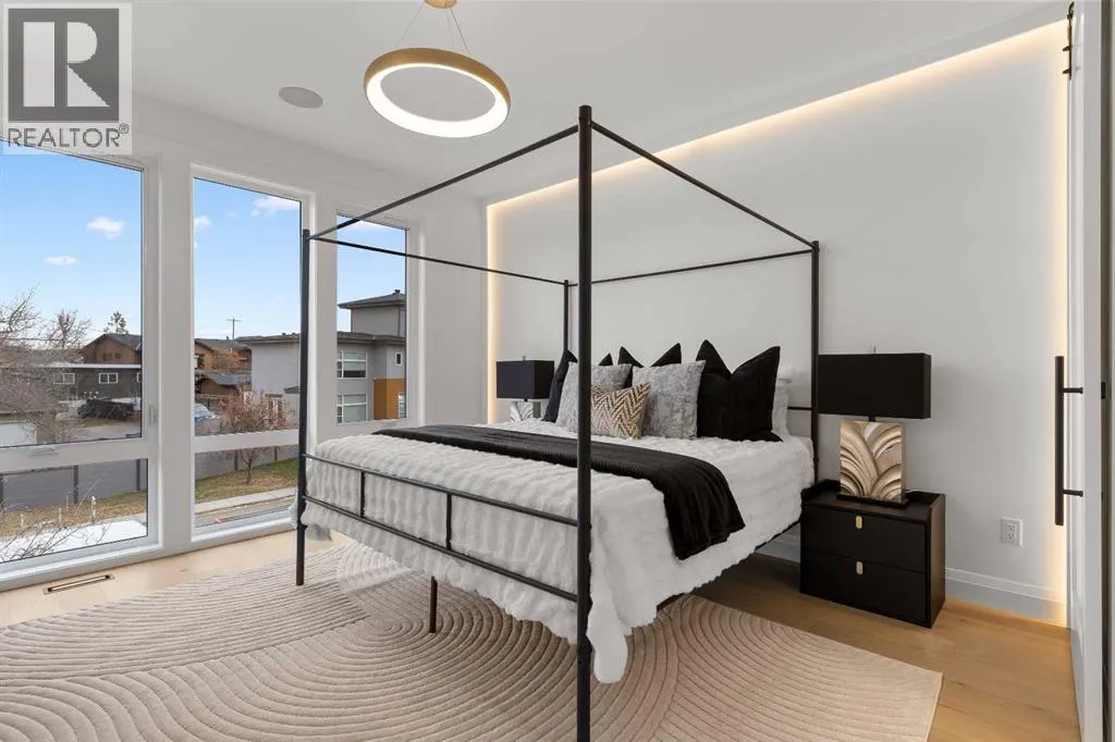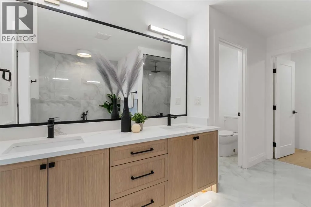 Construction Now Completed!! ~ Situated just steps from the river in Parkdale, one of Calgaryâs most desirable central communities, this striking modern residence offers 2700 sq ft of masterfully designed living space across the three upper levels, with another 891 sq ft below grade. The main floor welcomes you (under flat painted ceilings on all levels) with a spacious dining area off the entry; flowing seamlessly into a designer kitchen, featuring a showstopping 10 foot quartz island and sleek modern finishes. At the rear of the main, a bright and airy living room with a contemporary gas fireplace opens with sliders to the west facing backyard expanding onto a large vinyl deck. A mudroom, tucked away powder room, and main floor office with a glass door, complete this gorgeous space. The second floor offers a true primary retreat with a massive ensuite featuring heated floors; a steam shower, and walk-in closet, alongside two additional bedrooms ~ each with their own walk-in closet ~ a full bathroom, and a well ~ appointed laundry area. The upper loft level is a standout feature; with a second primary bedroom, full ensuite (again with heated floors) and HUGE shower, dual walk-in closets, a versatile bonus area, and both front and rear balconies, offering stunning outdoor escapes. A fully legal basement suite (pending final approval by the city) adds even more flexibility, complete with two bedrooms, shared living area, and a full kitchen~ ideal for guests, rental income, or multigenerational living. With no shortage of bedrooms or closet space, this home is as functional as it is beautiful. Additional highlights include; a roughed-in security system, roughed-in air conditioning, a roughed-in vacuum system, exposed aggregate steps and sidewalks, full landscaping, and an unbeatable location. Surrounded by nature, amenities, parks, pathways, cafes, the Bow River, and everything inner-city Calgary has to offer, this is not one to miss!! (id:27476)