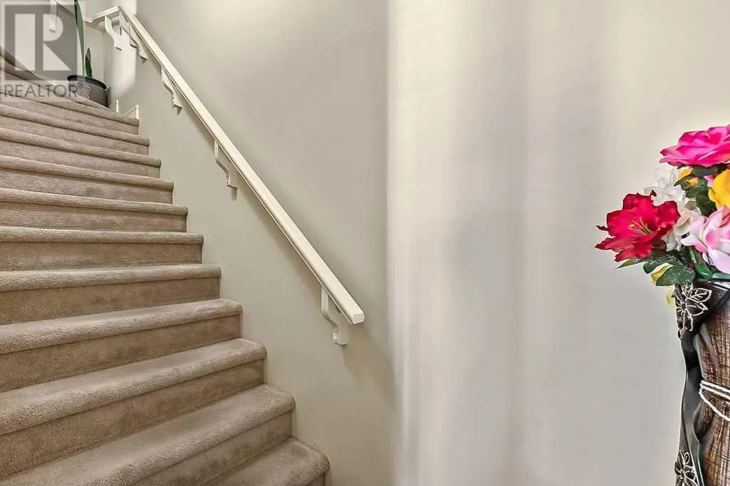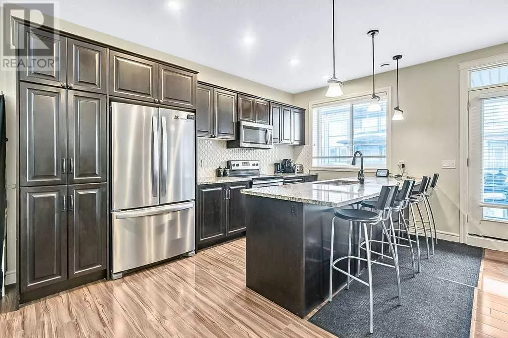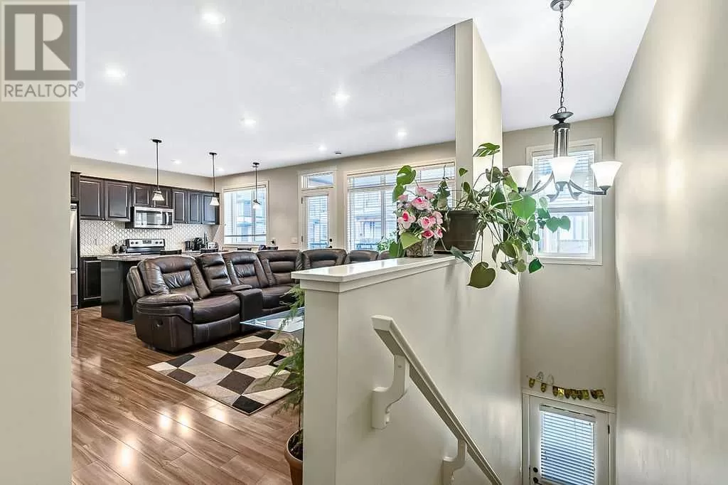 Welcome to your new home in the heart of Saddle Ridge!This stylish and spacious two-storey townhome offers the perfect blend of comfort, functionality, and modern designâideal for families or anyone looking for a vibrant community lifestyle. Featuring 3 generously sized bedrooms and 2.5 bathrooms, this open-concept layout is filled with natural light, creating a warm and inviting atmosphere throughout.The main floor is designed for effortless entertaining and everyday living, showcasing a large contemporary kitchen complete with stainless steel appliances, quartz countertops, and elegant flooring. Step out onto the private deck, perfect for summer BBQs, outdoor dining, or simply unwinding at the end of the day.Upstairs, you'll find a serene primary suite with a walk-in closet and a private ensuite bathroom. Two additional bedrooms, a modern 4-piece bath, and convenient upper-level laundry round out the upper floor.Enjoy the practicality of a single attached garage, offering both security and convenience. Located just steps from parks, schools, shopping centers, the LRT, and the YMCA, this home offers the perfect mix of suburban tranquility and urban accessibility.Donât miss your chanceâcontact your favorite Realtor to schedule a showing today! (id:27476)