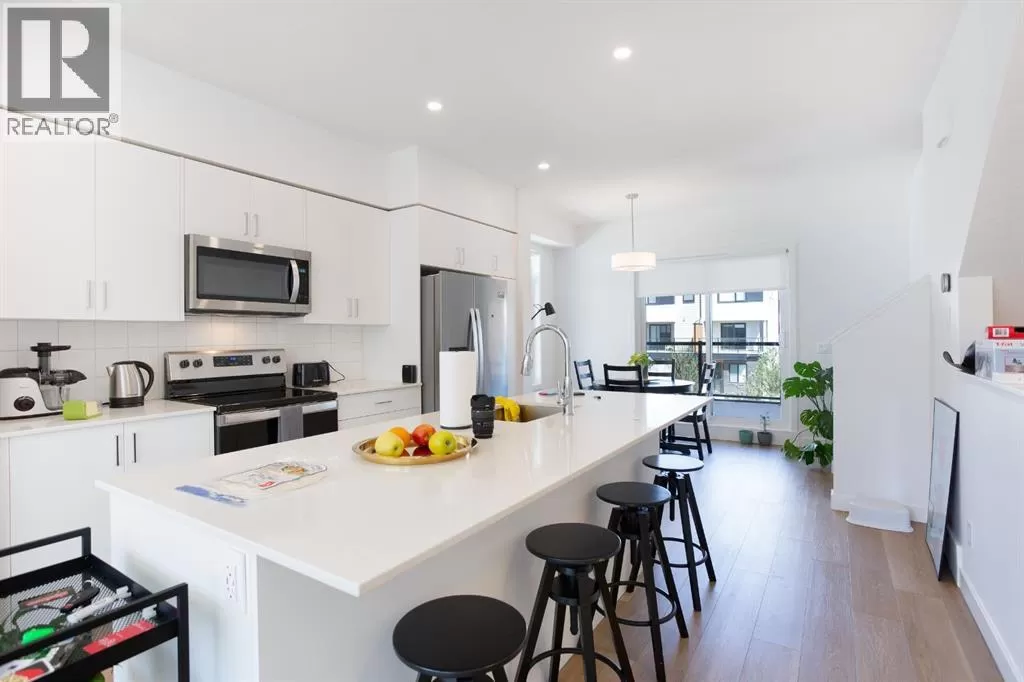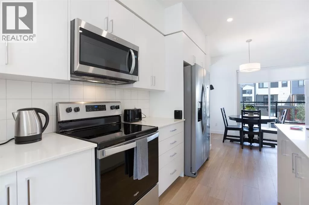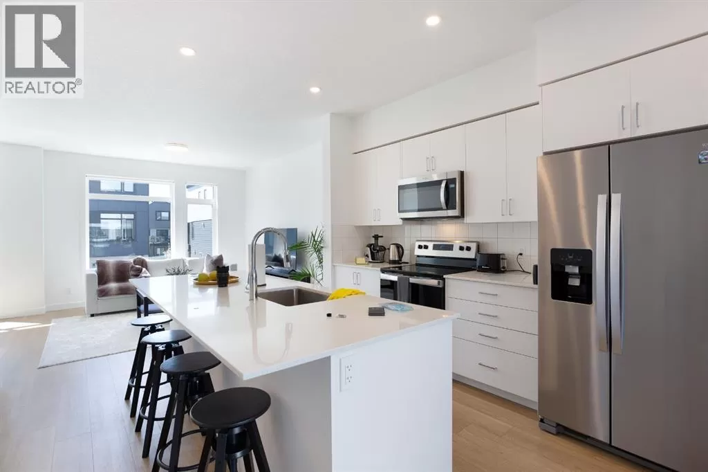 Modern 3-Bedroom Townhouse with Double Garage | 8521 19th Ave SE, CalgaryWelcome to this spacious and stylish 1,614 sq. ft. townhouse located in a quiet and convenient pocket of SE Calgary. Boasting a bright, open-concept layout and a double attached garage with a front concrete pad and air conditioning, this home offers the perfect blend of comfort and functionality.The main entrance is located on the lower level, providing a private entryway that leads upstairs to the heart of the homeâan open living space featuring a modern kitchen with a large center island, seamlessly connected to the dining and living areas. Perfect for entertaining or family time, this floor also includes access to a private balcony off the dining room, ideal for morning coffee or summer evenings.Upstairs, youâll find a convenient upper-floor laundry room, a full 4-piece main bathroom, and three generously sized bedrooms. The primary suite includes a walk-in closet and a private 3-piece ensuite, offering a quiet retreat after a long day.With modern finishes, a smart layout, and an abundance of natural light, this home checks all the boxes. Whether youâre a first-time buyer, growing family, or investor, this property is a must-see.Donât miss your chance to own this fantastic townhouse in a growing SE Calgary neighborhood. Book your showing today! (id:27476)