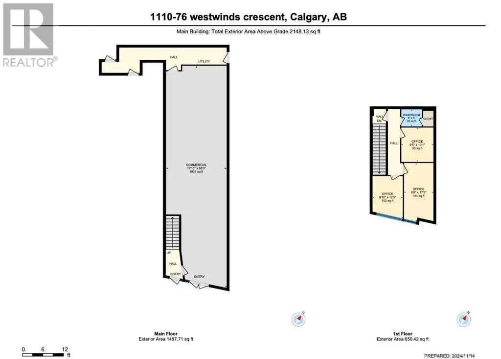 An exceptional investment opportunity in the heart of Westwinds, NE Calgary. This fully leased commercial condo bay offers over 1,880 sq ft of versatile mixed-use space, generating stable income from two reliable tenants. The main floor, approximately 1,315.45 sq ft, is secured with a 10-year lease that includes scheduled annual rent increases, ensuring long-term and growing returns. The mezzanine level, approximately 565.53 sq ft, is leased on a 3-year term to a dependable tenant who has expressed interest in extending their lease, further strengthening the investment profile. The unit features 24-ft ceilings, an overhead loading door, rooftop HVAC, rough-in plumbing, rear staff access, and ample surface parking. Located just minutes from the Westwinds C-Train station, major roadways, and surrounded by a wide range of commercial amenities, this property offers high visibility and convenience. Zoned for various uses including retail, restaurant, personal services, grocery, medical, and wellness, this is a rare chance to own a turnkey, income-producing asset in one of Calgaryâs busiest business districts. Contact your REALTOR today to arrange a private tour. (id:27476)