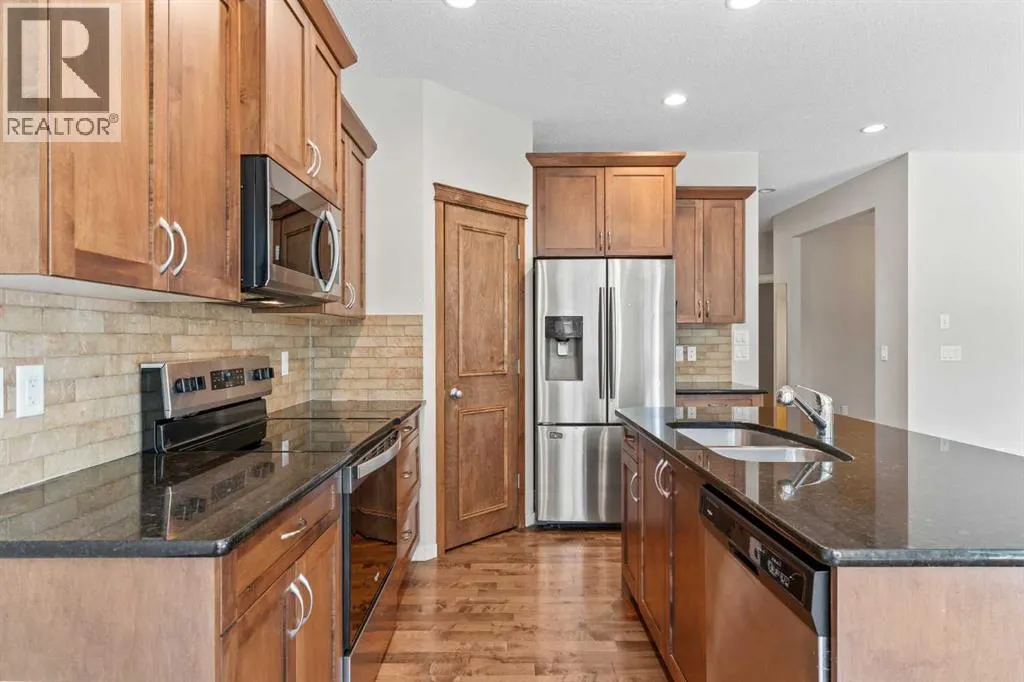 MOVE-IN READY! Beautiful 4-bedroom home in the prestige lake community of Auburn Bay with Lake Access! This stunning home has an open concept living room, kitchen and dining room. The living room has a gas fireplace with wood mantle and is an excellent place to entertain family and friends. Upstairs has a wonderful primary bedroom with walk-in closet and 4-piece bathroom that can be your oasis. Down the hall there is 2 additional bedrooms and a huge bonus room with a balcony adjacent where you can relax. The basement has a 4th bedroom, 4-piece bathroom, storage room and an undeveloped space that can be your next project. The south facing backyard has a large deck, low maintenance landscaping and mature trees. Only 2 blocks from Lake Shore School and 3 blocks from Auburn Bay School. Close to Auburn Bay Beach Club, Auburn Bay Shopping District, South Health Campus. transit, all major routes and so much more. This one will not last long, book your showing today! (id:27476)