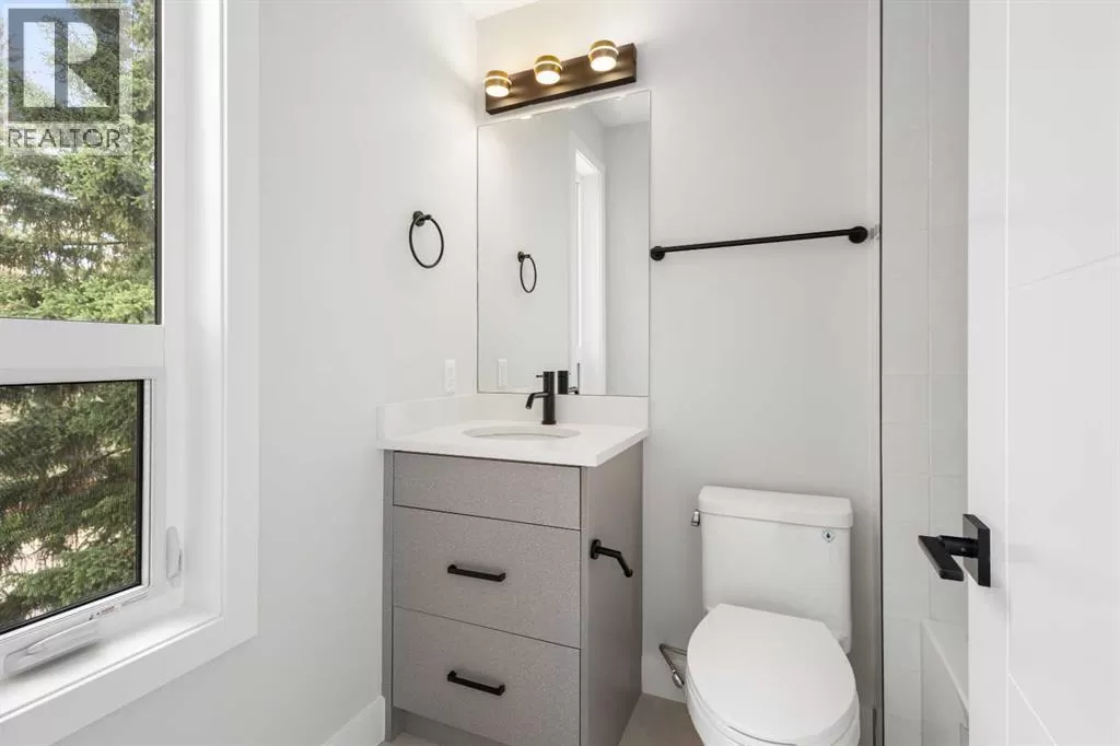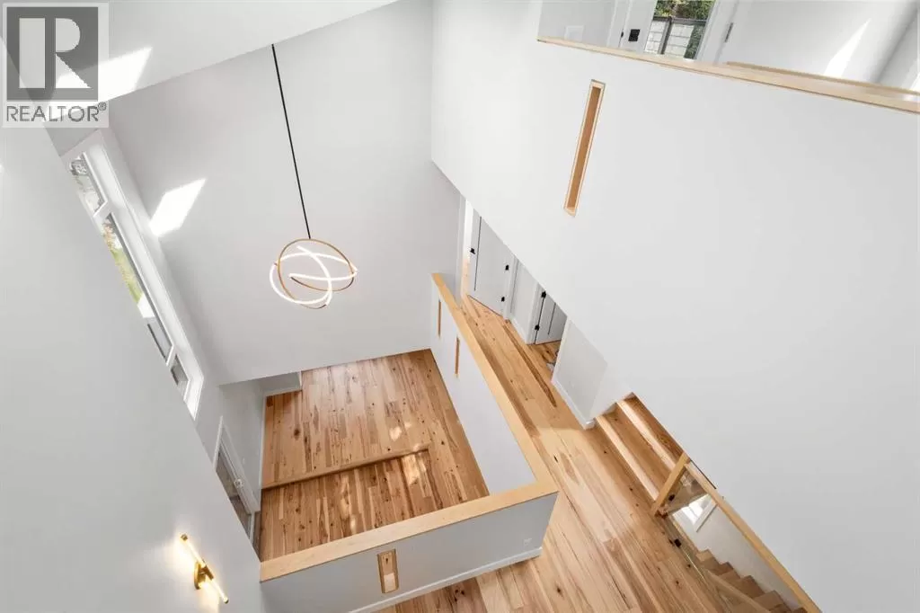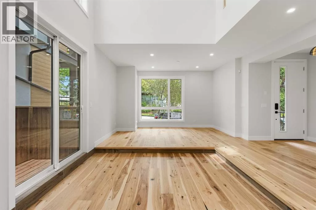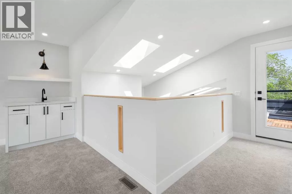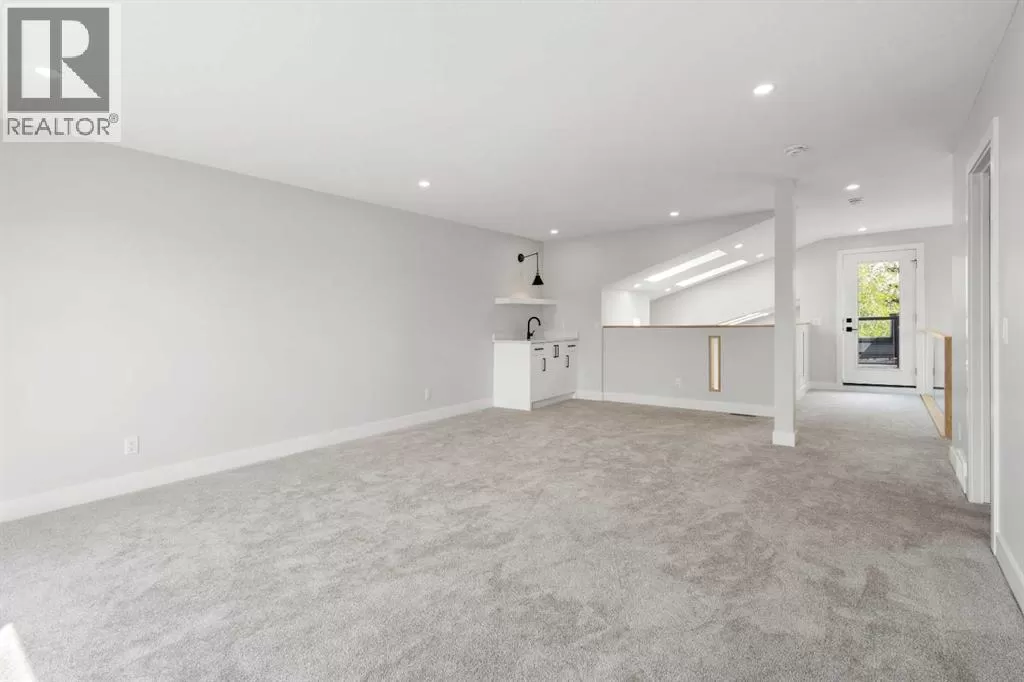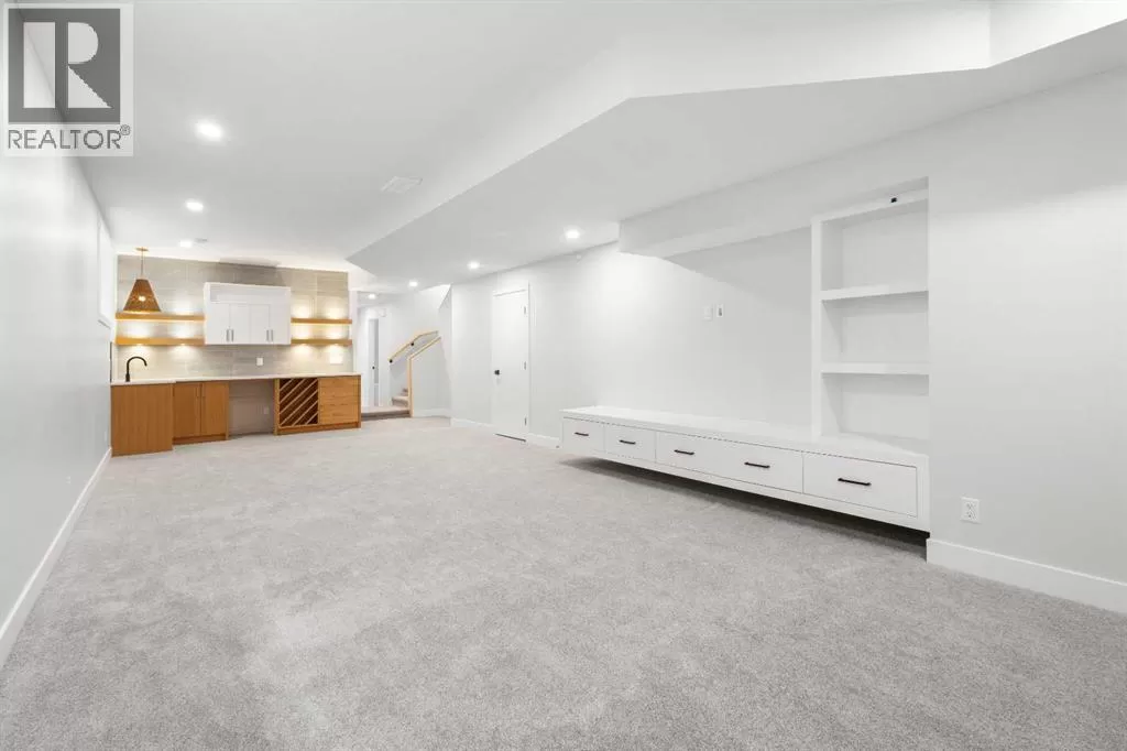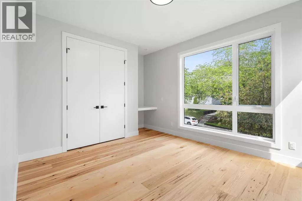 Welcome to an exceptional contemporary residence boasting over 4,000 sq ft of exquisitely designed living space, nestled on a quiet, tree-lined street in the prestigious Capitol Hill community. This architectural gem blends sophisticated style, artistic character, and practical functionalityâall just steps from top-rated elementary schools, SAIT, 16th Ave, Nose Hill Park, and a short drive to the University of Calgary, Foothills Hospital, Childrenâs Hospital, and Downtown Calgary. The one-of-a-kind luxury infill features artistic architecture with open-to-above design. Step inside and experience a warm, inviting ambiance highlighted by rich hardwood flooring throughout. The gourmet kitchen is a showpieceâfeaturing a curved center island, custom cabinetry, and fully integrated JennAir appliances, including a hidden fridge and dishwasher. This seamless flow continues into the open-concept dining and living areas, where a striking modern gas fireplace is framed with designer tile. Enjoy indoor-outdoor living with sliding patio doors that lead to a sun-soaked south-facing deck, complete with a natural gas lineâperfect for summer BBQs. A versatile flex room offers space for a home office or reading lounge, while a contemporary powder room, and a well-organized mudroom with lockers round off the thoughtfully designed main floor. Upstairs, a cozy family lounge and a large laundry room with a sink provide everyday convenience. Each of the three bedrooms on this level comes with its own private ensuite, ensuring comfort and privacy for family or guests. The master bedroom ensuite is a luxurious retreat featuring in-floor heating, dual vanities, a deep soaker tub, and a spa-style glass walk-in shower with multiple showerheads. All bedrooms are equipped with Vanair doors, providing both soundproofing and enhanced air circulation. The top floor features a stunning bonus flex room with a wet bar, full bathroom, and access to two rooftop patiosâa south-facing terrace offering pan oramic city skyline views, and a spacious north-facing deck ready for your personal touch. This level is perfect for entertaining or could easily convert into a fourth bedroom or office. The fully developed basement with in-floor heating offers even more flexibility with an expansive recreation room, a second wet bar, a fifth bedroom, and another full bathroom. Donât miss your chance to make this extraordinary property your own. Book your private showing today. (id:27476)