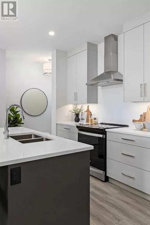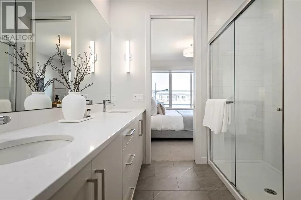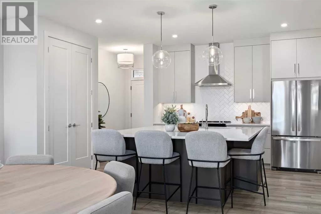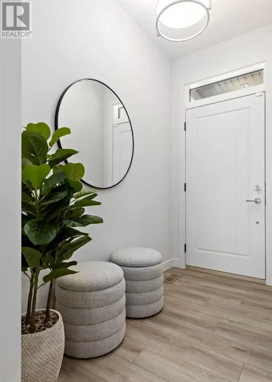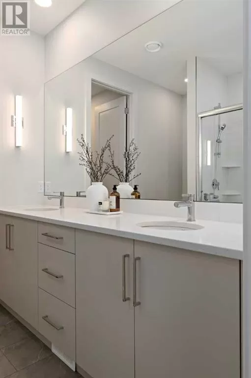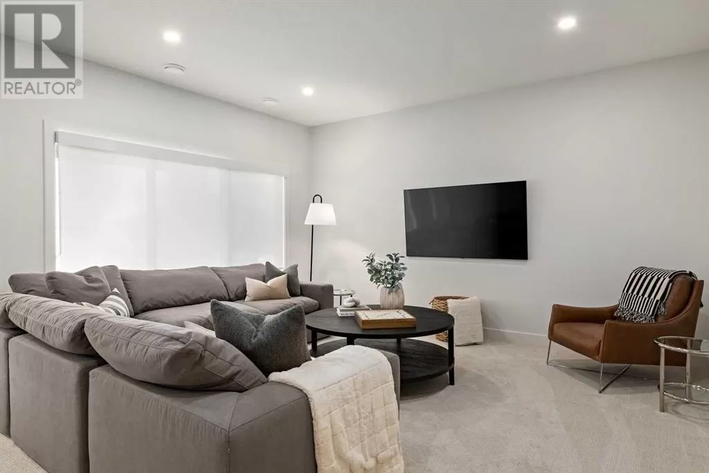 SHOW HOME now available - The Grove at Sage Meadows. This villa is part of an exclusive collection of just 27 homes nestled along the tranquil WEST NOSE CREEK. Combining natural beauty with everyday convenience, The Grove offers immediate access to Stoney Trail and nearby amenities. This show home includes a FINISHED DOUBLE GARAGE, CENTRAL AIR CONDITIONING, CUSTOM WINDOW COVERINGS, a HERRINGBONE TILE BACKSPLASH, and a WOOD MANTLE above the fireplace. Built by Lupi Luxury Homes, this home features luxury vinyl plank flooring, quartz countertops, sleek Zonavita cabinetry, whirlpool stainless steel appliances, designer lighting, custom closet systems, triple-pane windows, and a high-efficiency furnace. The 1,212 SQ. FT. main level offers a well-planned layout with a generous kitchen island with seating for four, an open dining area, a bright great room, and a private primary suite with a double vanity ensuite and walk-in closet. The 995 SQ. FT. WALK-OUT BASEMENT includes two bedrooms, a full bathroom, and a flexible recreation space that opens onto a covered patio. Please note: all RMS measurements are based on builder blueprints. Furniture is not included in the list price but may be purchased at an additional cost. (id:27476)