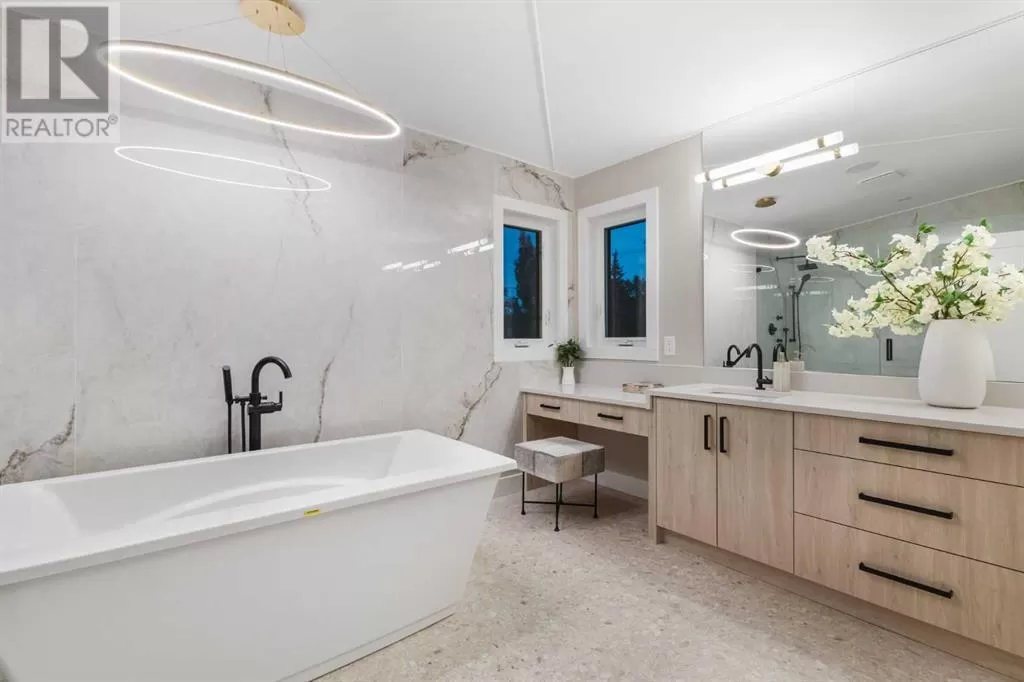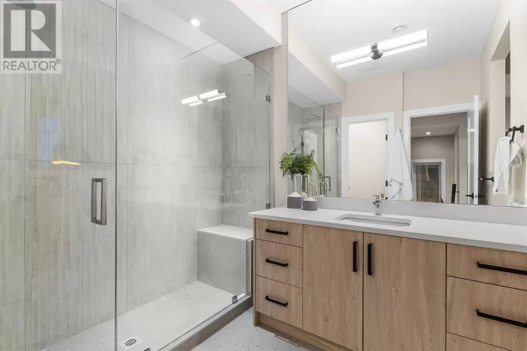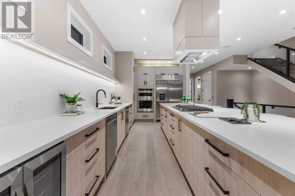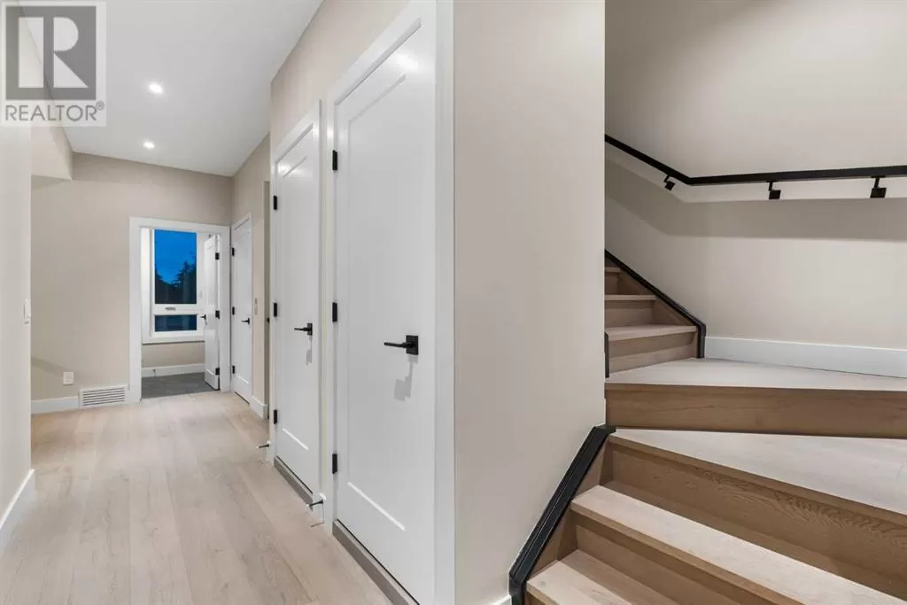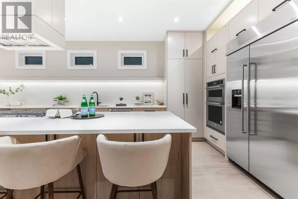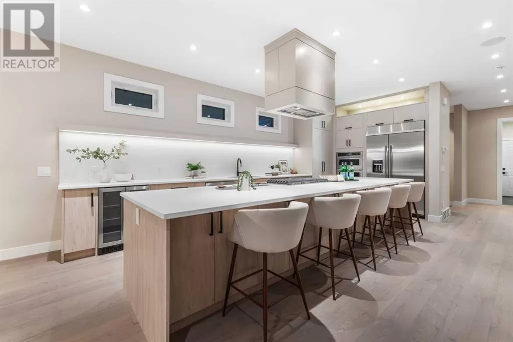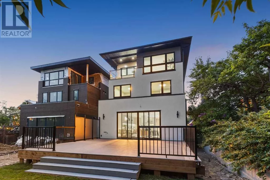 This is more than a home. It is a lifestyle on the edge of the Bow River. Welcome to 66A New Street SE, a stunning 3-storey luxury infill in the heart of historic Inglewood, masterfully built by Standcore Group in collaboration with Designers Edge Interior Design. With over 4,000 square feet of thoughtfully designed living space, this river-facing residence sets a new benchmark for urban luxury in Calgary. Positioned on the only lot in the city that truly sits on the Bow River, the views are as rare as they are remarkable. The exterior showcases acrylic stucco paired with custom metal accents, triple-pane full-height LUX windows, and a 20x20 composite rear deck that offers a front-row seat to nature in the middle of the city. This home is engineered with future-forward living in mind. It is roughed in for full smart home automation including speakers, surveillance, and security. The basement has in-floor heat rough-ins and the garage structure is legal suite-ready with completed foundation, joists, plumbing, electrical, and sanitary connections in place.Inside, you are greeted with 10-foot ceilings, wide plank white oak hardwood on all three upper levels, and a floorplan that balances clean lines with warmth and functionality. The main level features a formal dining area, a custom mudroom with built-ins, and a stylish two-piece powder room. The living room is centered around a stunning Dekton-slab fireplace with custom white oak millwork. Dual sliding glass doors lead to the spacious deck, making entertaining seamless indoors and out. The kitchen is both beautiful and highly functional. Outfitted with Caesarstone countertops, custom cabinetry, and a full array of high-end appliances including a gas range, steam wall oven, microwave, and a 48-inch fridge and freezer, it is truly a chefâs dream.On the second floor, you will find two generously sized junior suites with walk-in closets. One features a private three-piece ensuite, while the other is supported by a fu ll four-piece bathroom. The third floor is reserved for the primary retreat. This sanctuary features a coffee bar, expansive walk-in closets, and a spa-inspired ensuite with a freestanding tub, large tiled shower with bench, dual vanities, a makeup desk, and heated tile floors. The fully developed basement offers even more space with a large recreation area, a wet bar with temperature-controlled wine fridge, a dedicated gym or home office, a fourth bedroom, and a modern three-piece bathroom. Mechanically, the home is equipped with two high-efficiency furnaces, HRV units, and a high-efficiency combi boiler for domestic hot water and in-floor heating.Enjoy life just steps from local favourites like Spolumboâs, Dean House, and the Night Markets. Start your mornings at Gravity and stay active at The Realm. With every amenity nearby, this home offers a truly connected lifestyle. Built with care, backed by a new home warranty, and designed for those who appreciate modern comfort. Book your showing today! (id:27476)