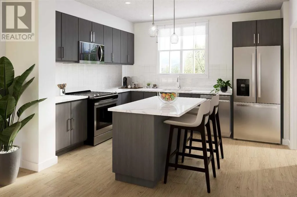 Welcome to 64 Creekside Drive SWâa thoughtfully designed 3-bedroom, 2.5-bathroom townhouse offering over 1,400 sq. ft. of beautifully upgraded living space in the heart of one of Calgaryâs most desirable new communities. With refined finishes, an attached double garage, and access to incredible amenities, this home strikes the perfect balance between comfort, functionality, and elevated style.Step inside and immediately appreciate the airy feel of 9' ceilings on the main floor and 8' ceilings upstairs, paired with a well-planned open-concept layout ideal for both day-to-day living and effortless entertaining. The main floor is finished in durable, low-maintenance luxury vinyl plank, while warm grey carpet with plush 8lb underlay adds softness and comfort underfoot upstairs and on the staircase.The kitchen is a true showpiece, featuring sleek slab-style cabinetry with extended 42â uppers, soft-close drawers and doors, a designer tile backsplash, and polished quartz countertops that offer both durability and elegance. A spacious island and separate dining area provide ample space to gather and enjoy. The contemporary lighting package and knockdown ceilings add a modern, cohesive aesthetic throughout the home.Retreat upstairs to three generously sized bedrooms, including a bright and spacious primary suite. The ensuite bathroom is finished with quartz counters, a tiled backsplash, chrome fixtures, and a high-efficiency toilet. Two additional bedrooms, a full main bathroom, and upper-level laundry offer convenience for growing families, professionals, or guests.A private balcony off the main living area offers the perfect outdoor escapeâideal for morning coffee or an evening wind-down. You'll also appreciate the comfort of the double attached garage, providing secure parking and additional storage space.Beyond your front door, Sirocco is a community designed for connection and convenience. Enjoy endless opportunities for recreation with nearby parks, playground s, scenic pathways, and a community pond, perfect for walking, biking, or family outings. Golf enthusiasts will love the proximity to semi-private golf courses, while nearby shopping and dining in Shawnessy and Legacy make errands and evenings out effortless. With quick access to McLeod Trail, commuting is a breeze.Whether you're a first-time buyer, downsizing, or simply looking for a low-maintenance lifestyle with high-end touches, this townhome delivers. Welcome to a home where thoughtful design meets everyday easeâwelcome to 64 Creekside Drive SW. (id:27476)