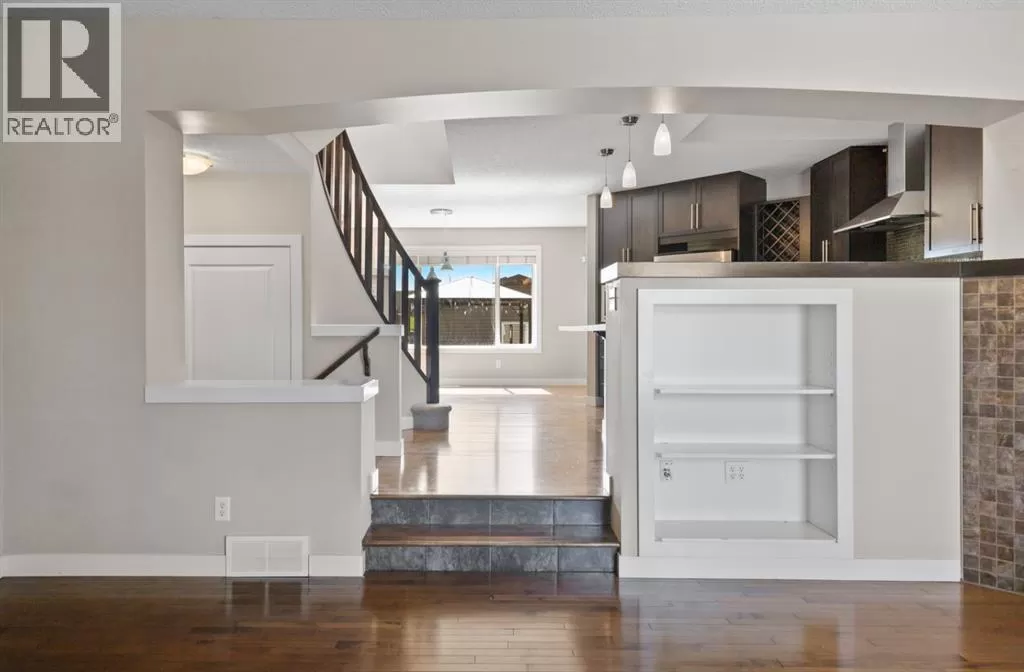 Welcome to one of Calgaryâs most sought-after communities, Auburn Bay â where lake living meets everyday convenience. This beautifully maintained 4-bedroom, 3.5-bathroom detached home offers over 2,190 sq ft of developed space, perfect for families looking to blend comfort with a vibrant, amenity-rich lifestyle.Imagine spending weekends at the private community lake, swimming, paddleboarding, or relaxing at the beach â all just a short walk from your front door. Located in the heart of Auburn Bay, this home puts you minutes from Calgaryâs largest YMCA, South Health Campus, Seton Urban District, top schools, parks, and a growing list of shops, restaurants, and recreation options. Whether it's movie nights at the VIP Cineplex or walks along the lake, every day here feels like a staycation.Inside, youâll find a spacious and functional layout. The main level features rich hardwood flooring, a bright open-concept kitchen with stainless steel appliances, a slide-in range, built-in microwave, and plenty of counter space to cook, gather, and entertain. The adjoining dining room and living area â complete with a cozy corner gas fireplace â create a warm and inviting atmosphere for family and friends.Upstairs, a dramatic skylight fills the hallway with natural light. The primary bedroom features mirrored closets and a private ensuite, while two additional bedrooms offer sweeping mountain views. A fully finished basement adds even more flexibility with a rec room, guest bedroom, and full bathroom â ideal for play, work, or visiting family.Outside, enjoy a two-level deck and low-maintenance landscaping perfect for summer barbecues or quiet evenings under the stars. The detached garage offers year-round convenience â no more scraping windshields in winter.Whether you're upsizing, relocating, or looking for a home in a community where connection and lifestyle matter, this property delivers on all fronts.Come see what lake living is all about. Book your private tour to day. (id:27476)
