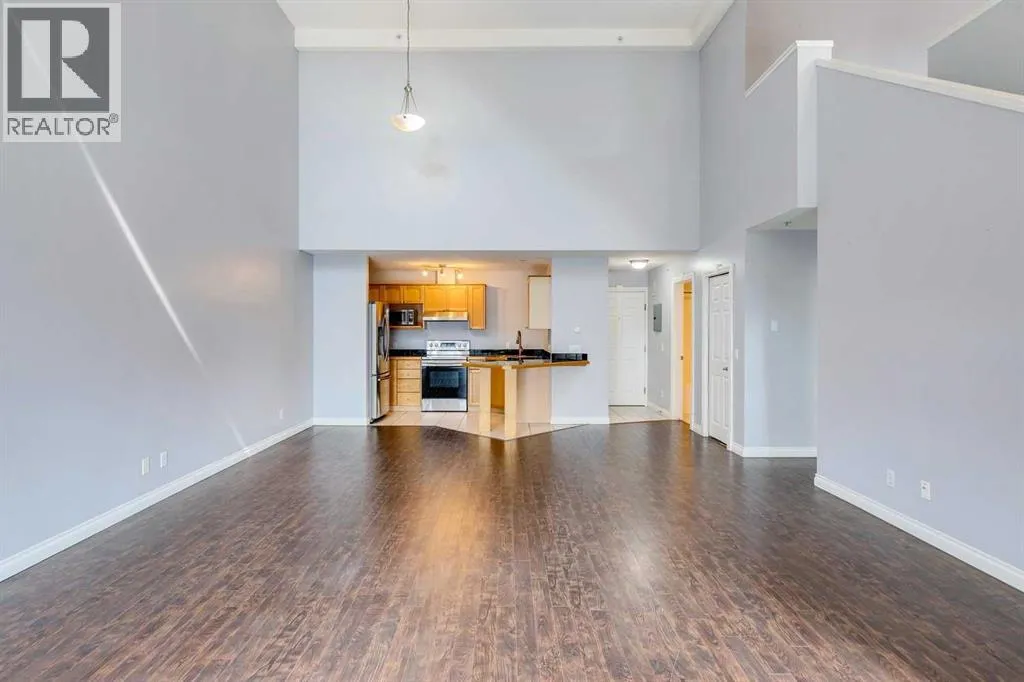OPEN HOUSES SAT, NOV 8 & SUN, NOV 9 at 1-3PM! Welcome to this stunning 1,136 sqft TOP FLOOR 2-storey condo in the heart of vibrant Marda Loop, offering 1 spacious bedroom, 2 full bathrooms, a versatile loft, and a long private balcony! Soaring 2-storey ceilings - peaking at an impressive 25 feet - and expansive windows flood the space with natural light, creating an open, airy feel throughout. Step inside to discover thoughtful updates, including fresh paint completed in 2024, new window shades installed in November 2024, and luxurious in-floor heating throughout the entire unit. The sleek kitchen features stainless steel appliances -including a fridge that is 3 years old and a stove that is 5 years old - and opens to a huge living room with a beautiful gas fireplace and a designated dining area, perfect for entertaining. Laminate flooring, updated approximately 7 years ago, adds warmth and durability to the space. The private primary suite is tucked away with direct access to the balcony and a large ensuite bath with a corner soaker tub and a brand-new light fixture. A second full bathroom near the front entry (rare for a one-bedroom home) offers a tub/shower combo for added flexibility, and in-unit laundry (with a washer and dryer just 3 years old) is also included. Upstairs, the bright and spacious loft provides endless possibilities for a guest room, home office, gym, or play area. Enjoy summer evenings on your south-facing private balcony with a gas BBQ hook-up, and take advantage of the titled underground parking stall, secure storage locker, and convenient bike storage. Located just steps from boutique shops, trendy cafés, and some of Calgaryâs best restaurants, plus minutes from 17th Avenue, downtown, and fantastic recreational amenities like an outdoor pool, tennis courts, skating rink, ball diamond, and public library - just a few short blocks away! This move-in-ready home is a rare find - book your showing today! (id:27476)