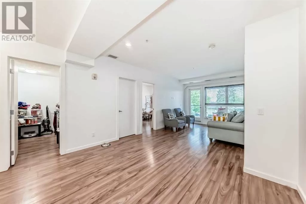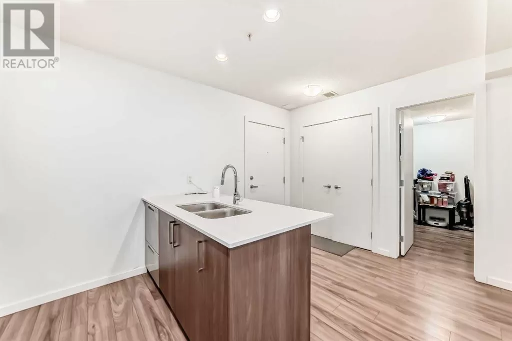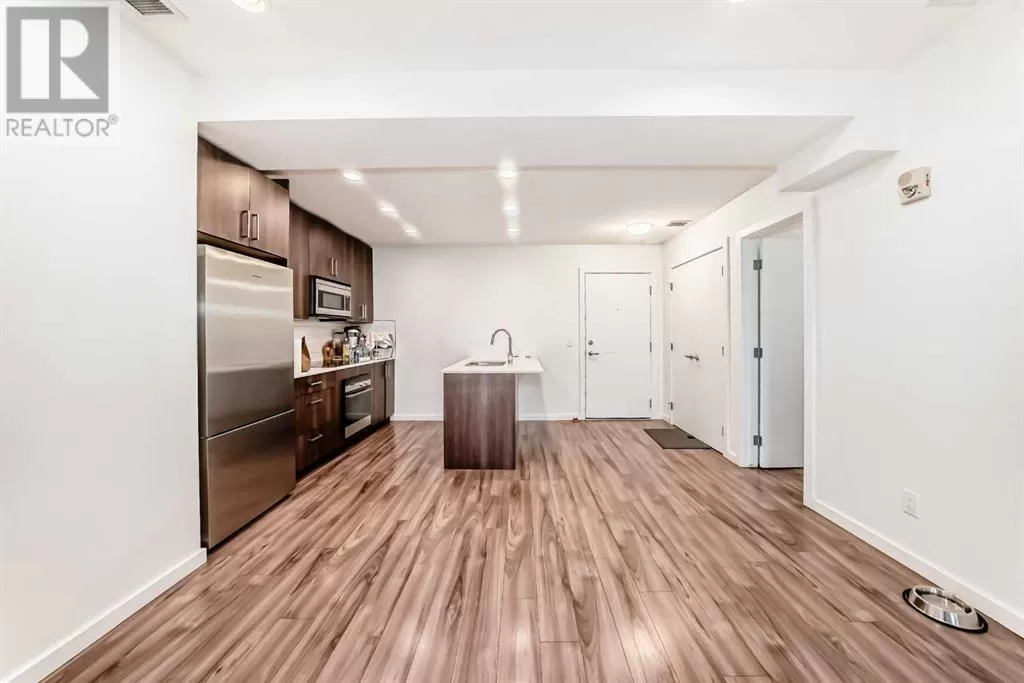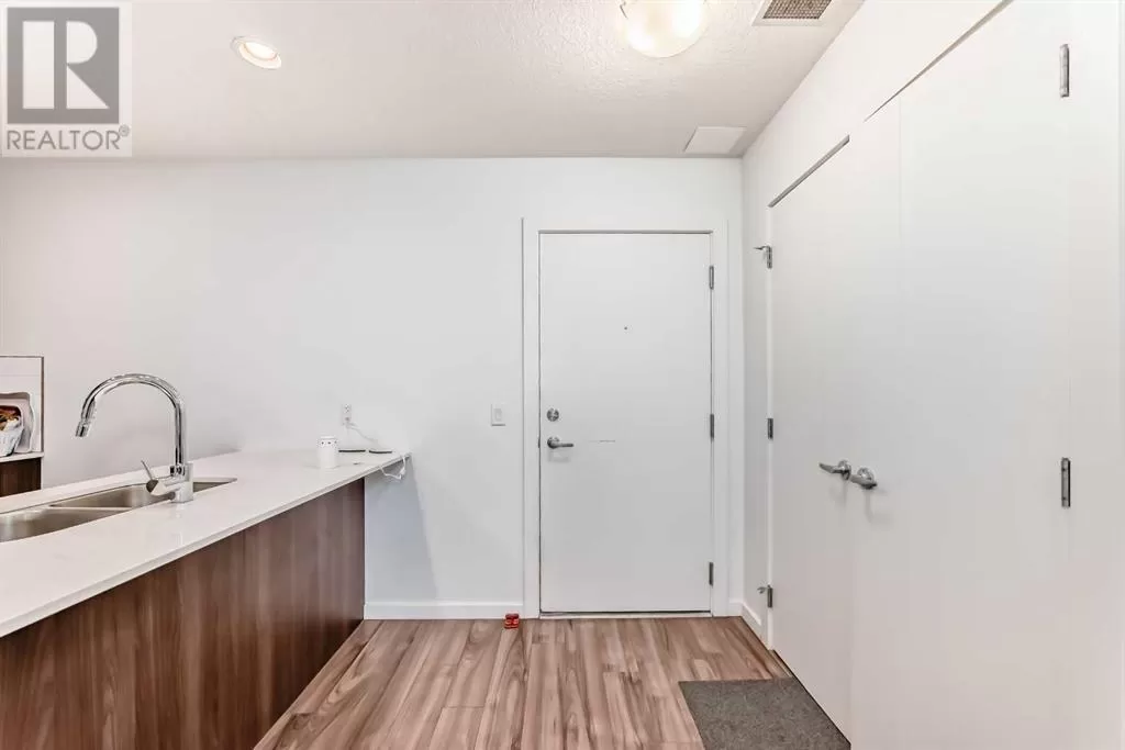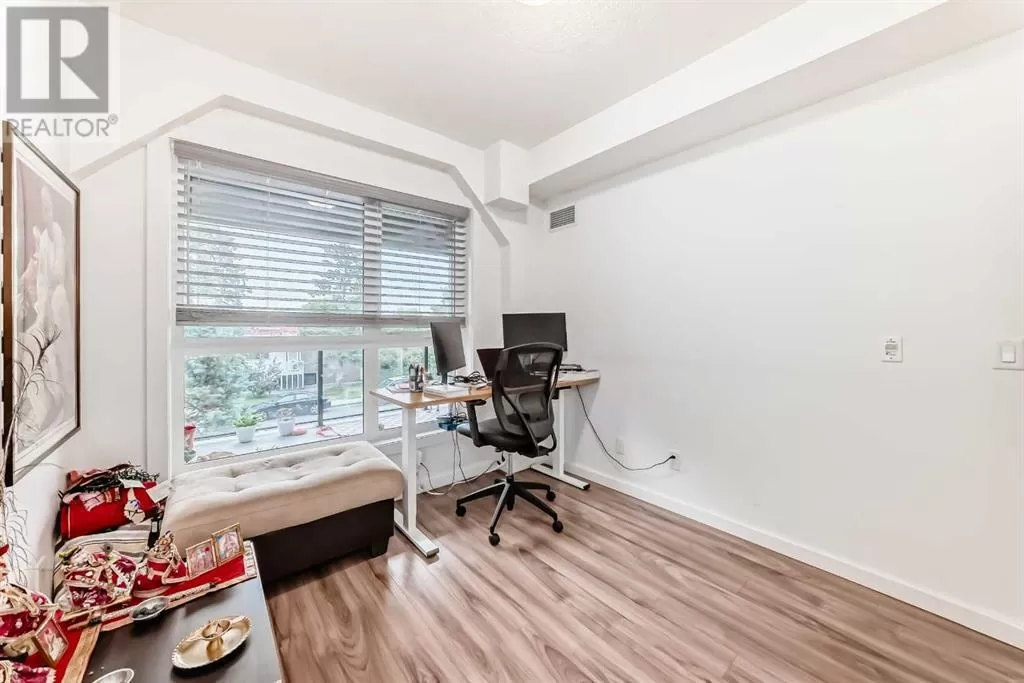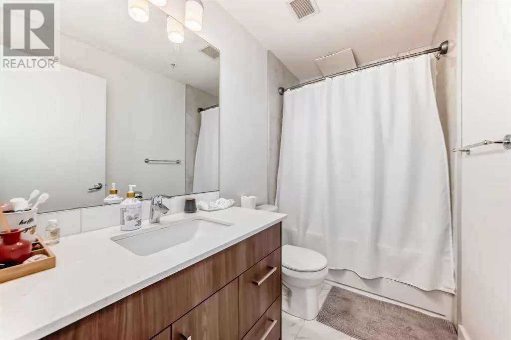 CONCRETE AND STEEL FRAME CONSTRUCTION offering superior noise reduction, reduced insurance costs, and exceptional durability. The building features high-efficiency boilers and HRV systems, with geothermal heating and cooling throughout. Equipped with Cat 5(e) wiring for advanced data and phone connectivity. This spacious 2-bedroom, 2-bathroom unit includes a den, in-suite laundry, and a titled underground parking stall. Designed with modern finishes, the interior boasts wide plank laminate flooring, bright polished white quartz countertops, and premium European-designed Fisher & Paykel appliances, including a dishwasher, induction cooktop, and convection microwave/hood fan combo. Stackable Whirlpool laundry machines are included, and the refrigerator is equipped with a microprocessor that monitors usage to extend food freshness. The primary suite features a walk-in closet and a full ensuite. Ideally located just steps from the C-Train station, shopping, and minutes from Westhills and downtown. Currently tenant occupied on a month-to-month basisâ24 hours' notice required for showings. (id:27476)